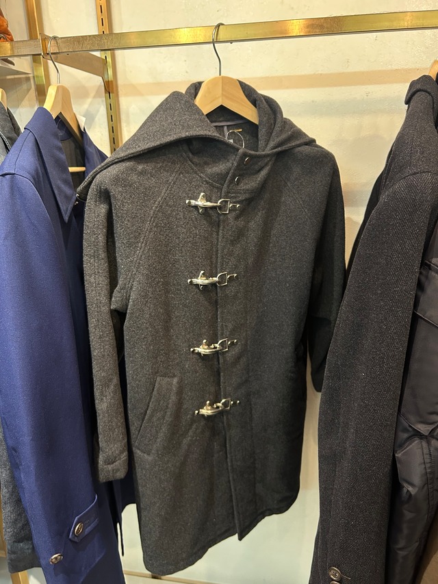 “DOUBLE SHOCK” Grey wool/nylon design fireman hooded coat