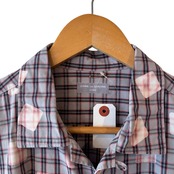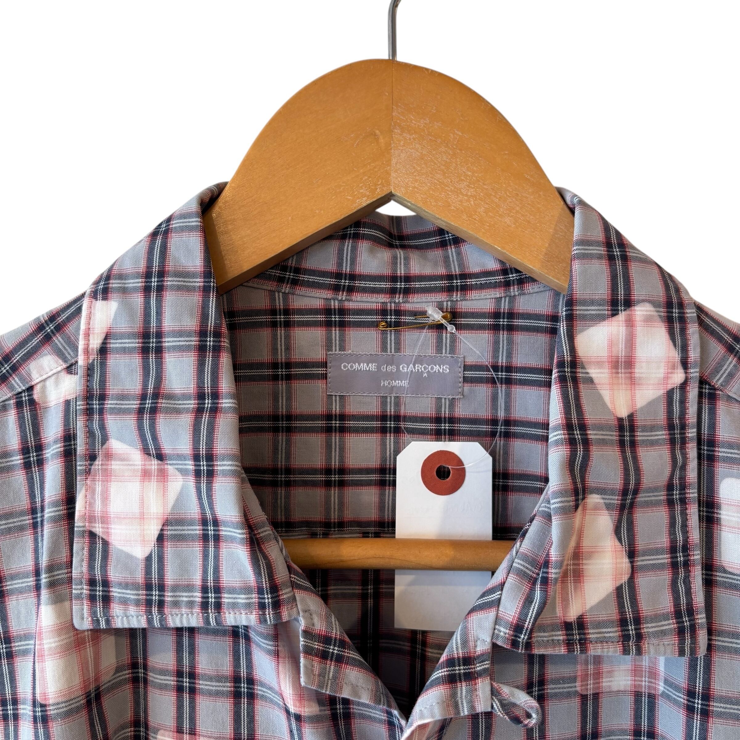 “GARÇONS HOMME" Check cotton design L/S front bleach open collar shirt