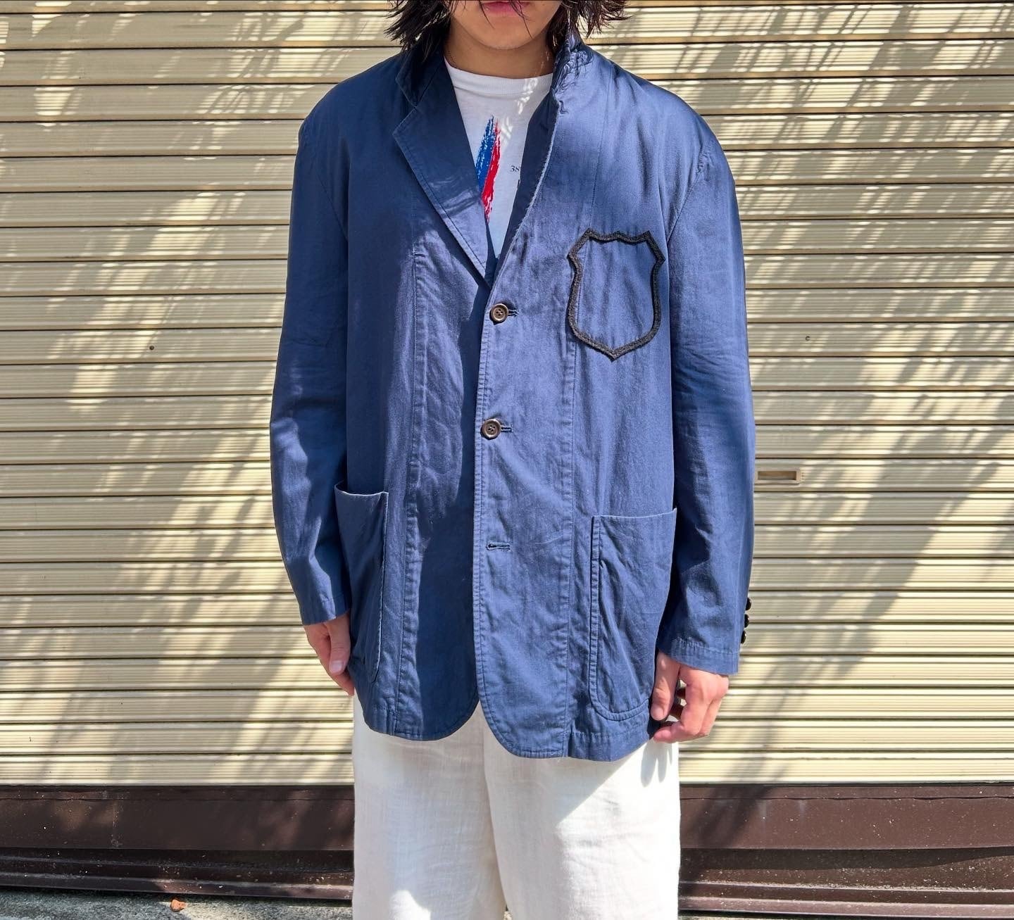 “GARÇONS HOMME” Navy cotton emblem tailored jacket