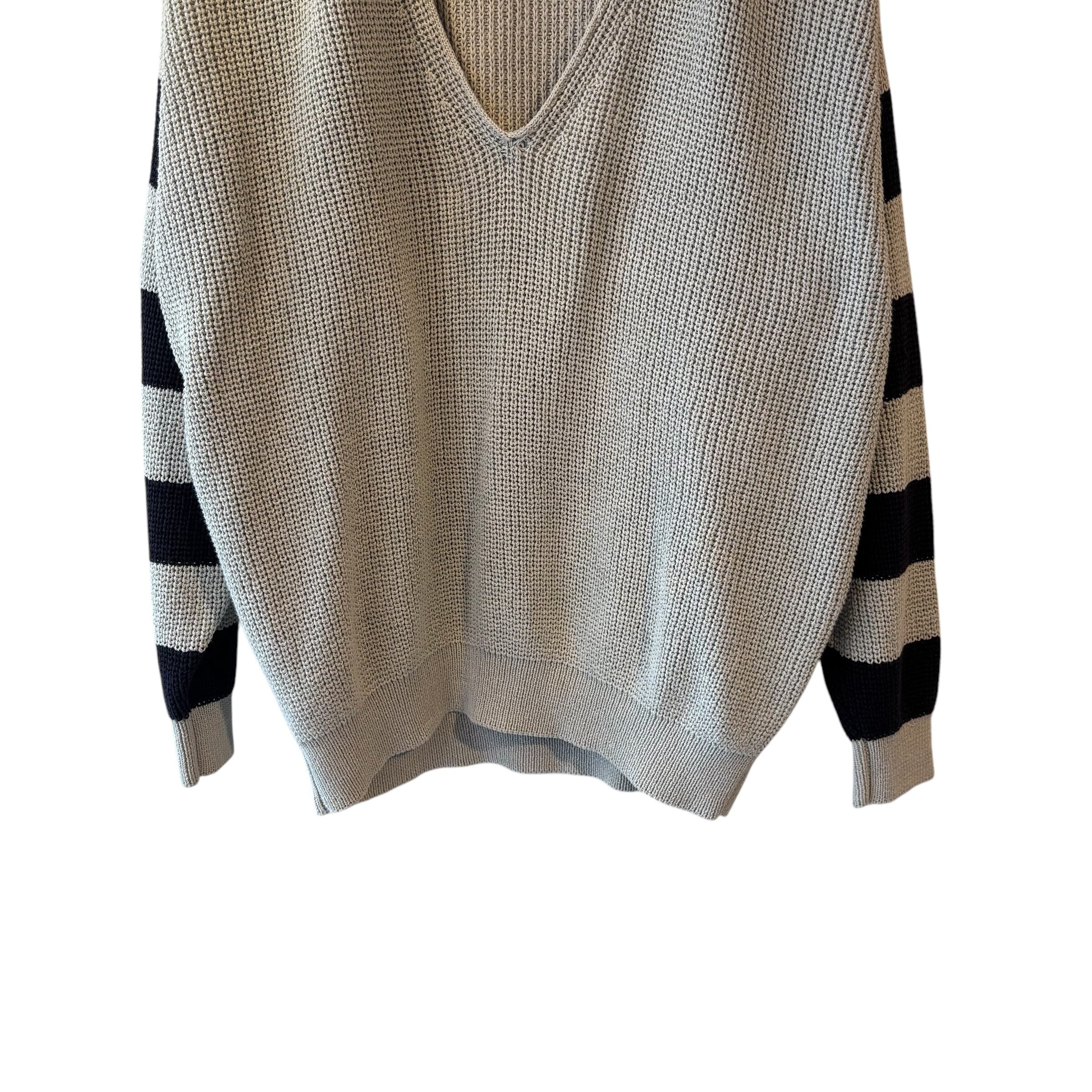 “ISSEY MIYAKE MEN” Sleeve border design Vneck cotton knit