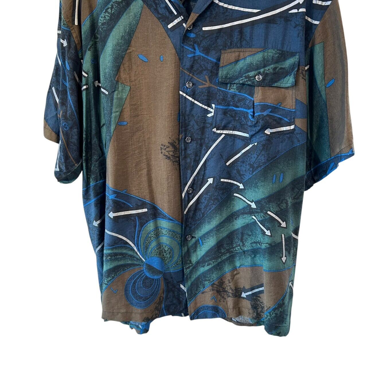 "arrston volaju” Unique pattern rayon/nylon design S/S open collar shirt