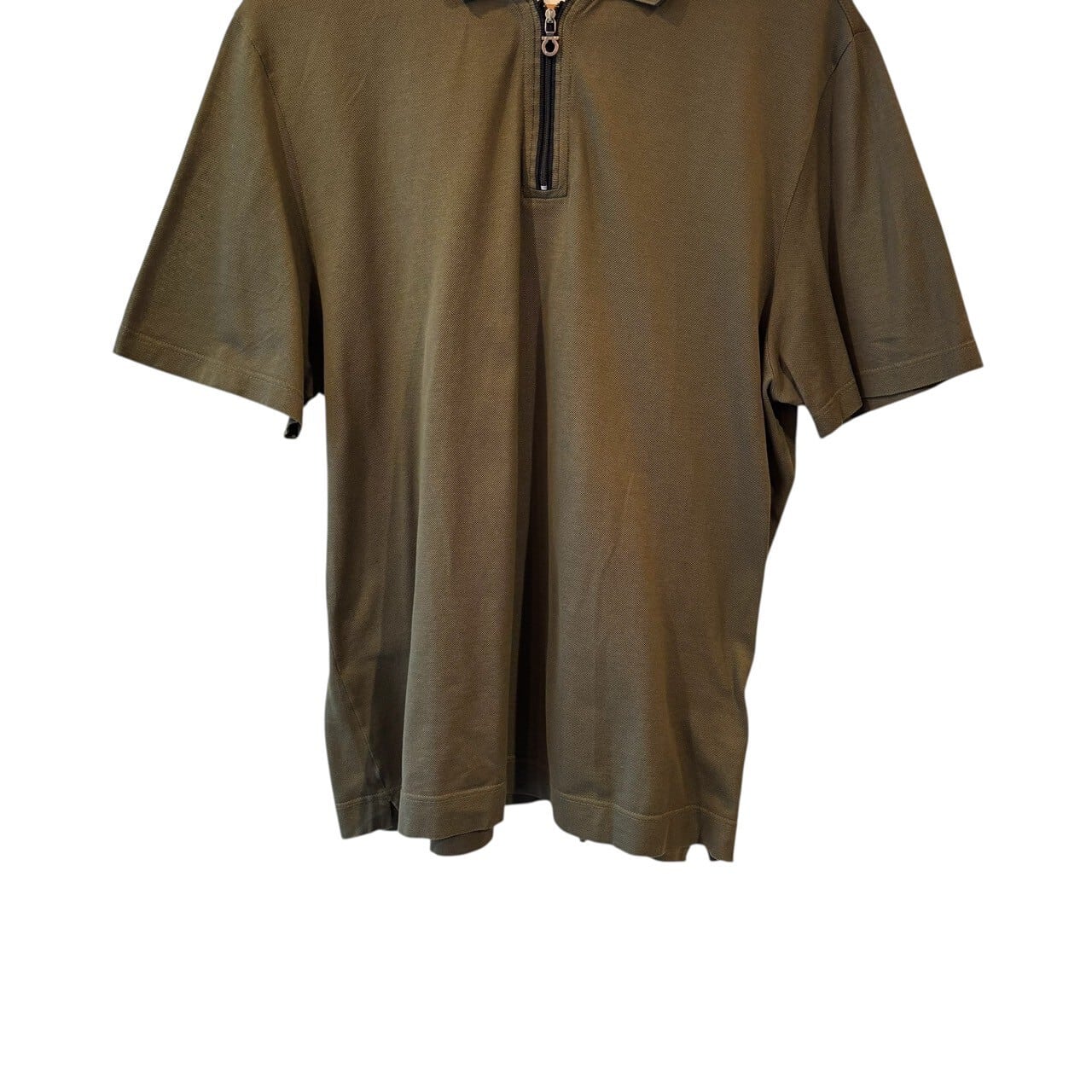 “Salvatore Ferragamo” Olive cotton S/S half zip polo