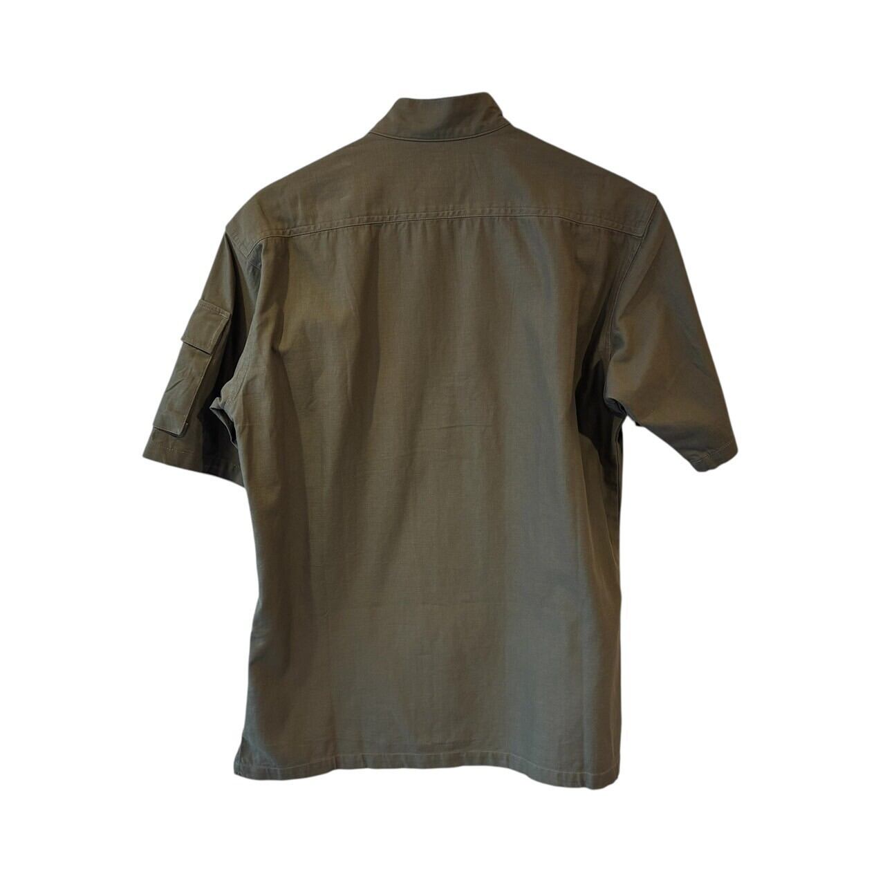 “BARCEDOS” Khaki green cotton S/S fly front shirt