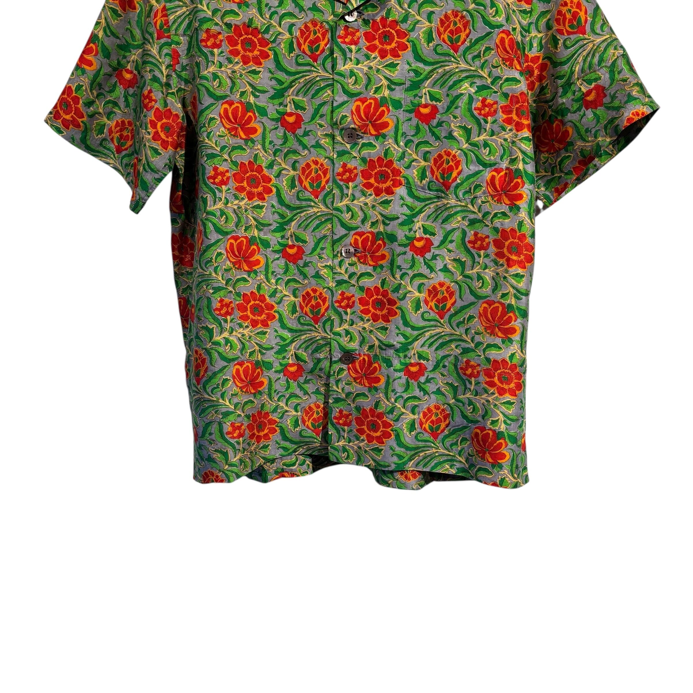“Y's for men" Flower pattern silk design S/S open collar shirt