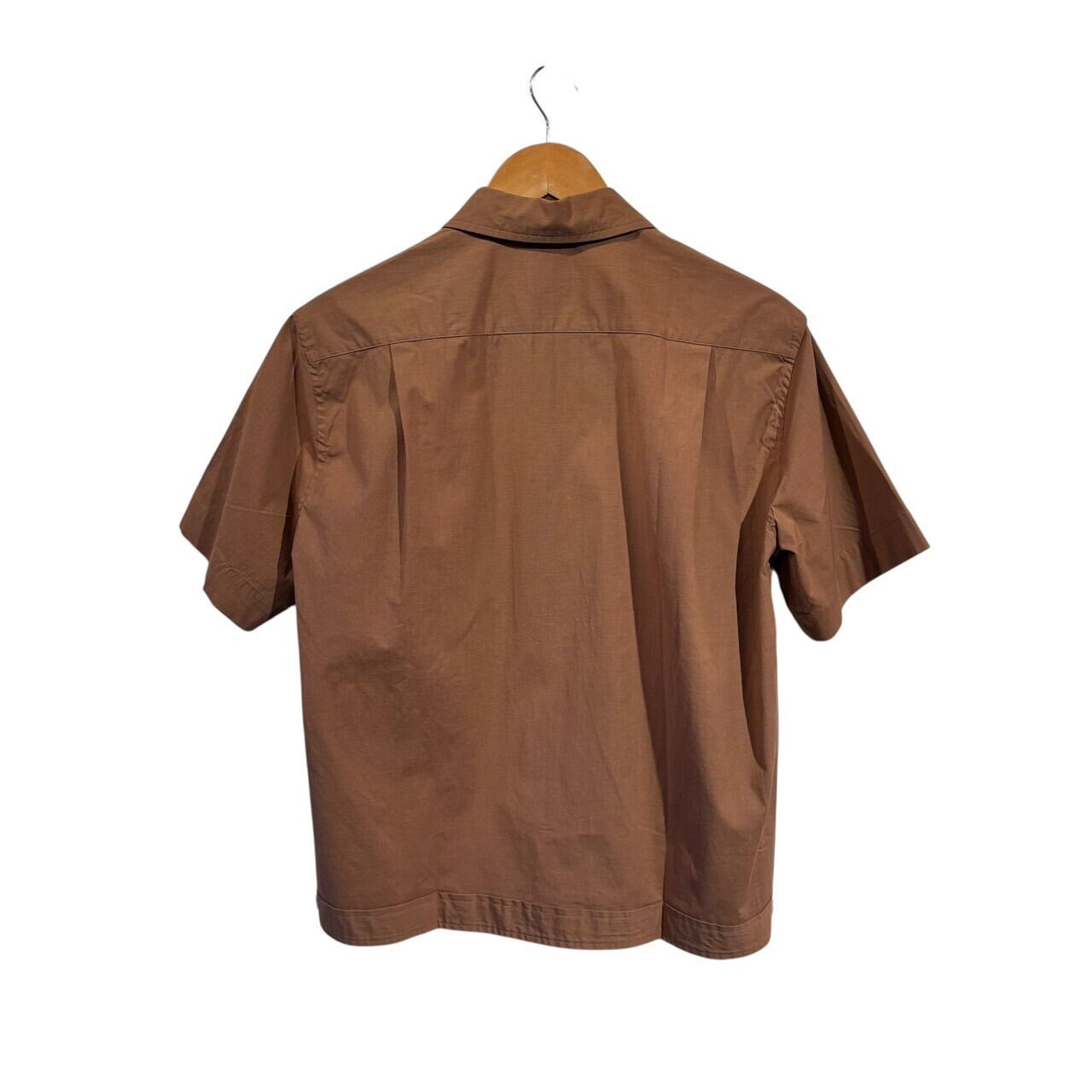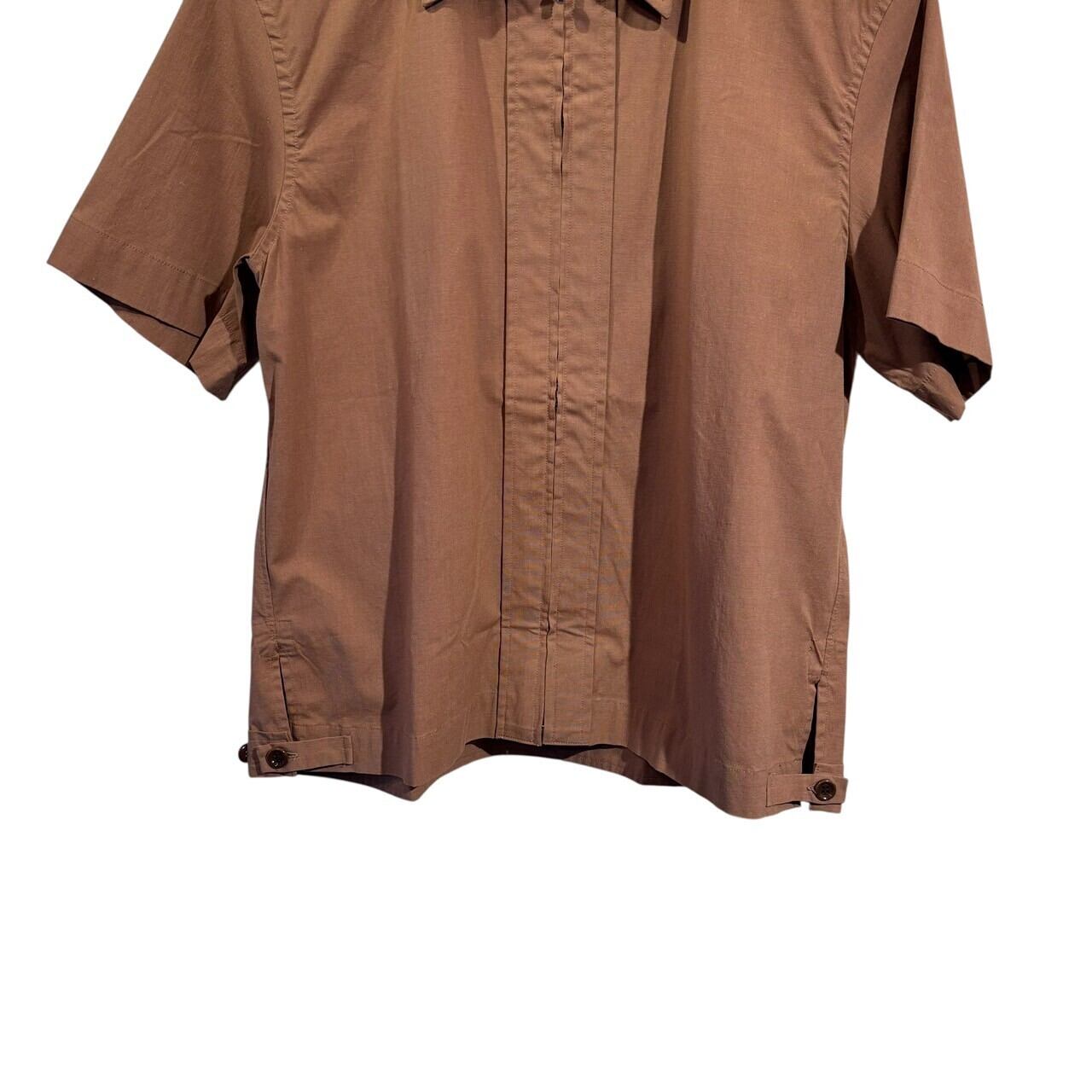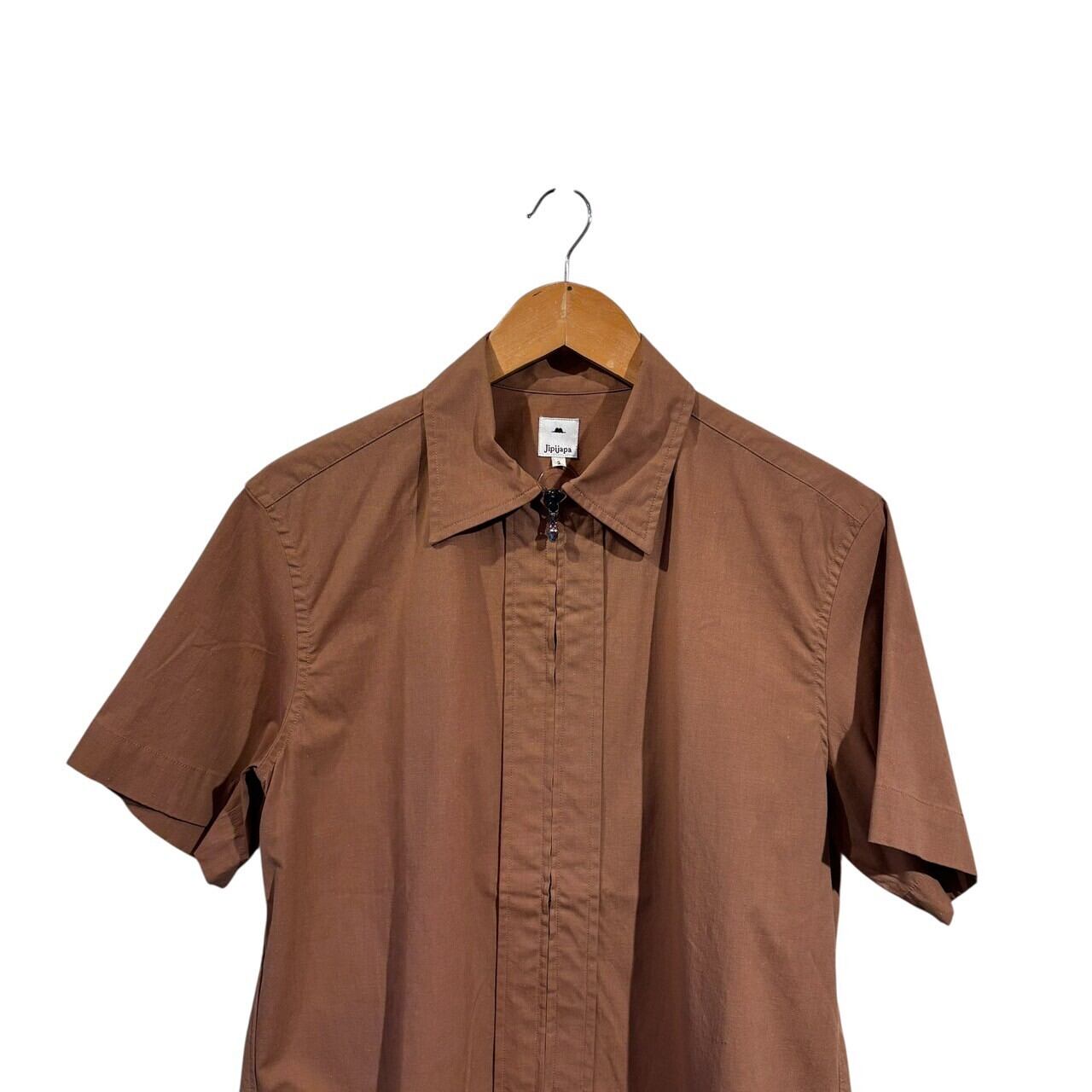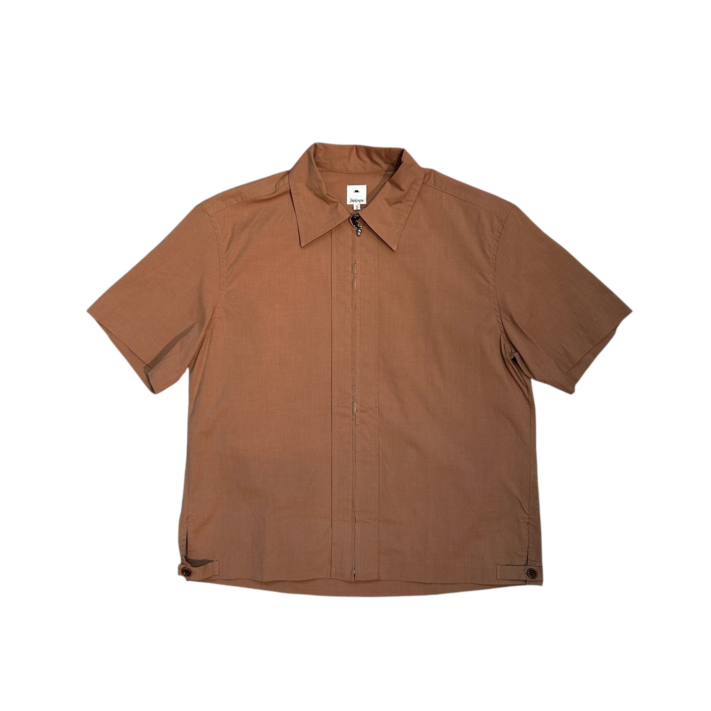 “jipijapa" Light brown cotton S/S zip up shirt