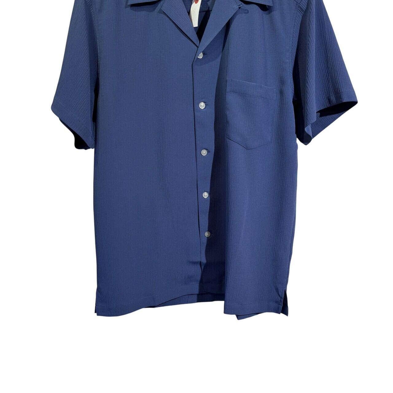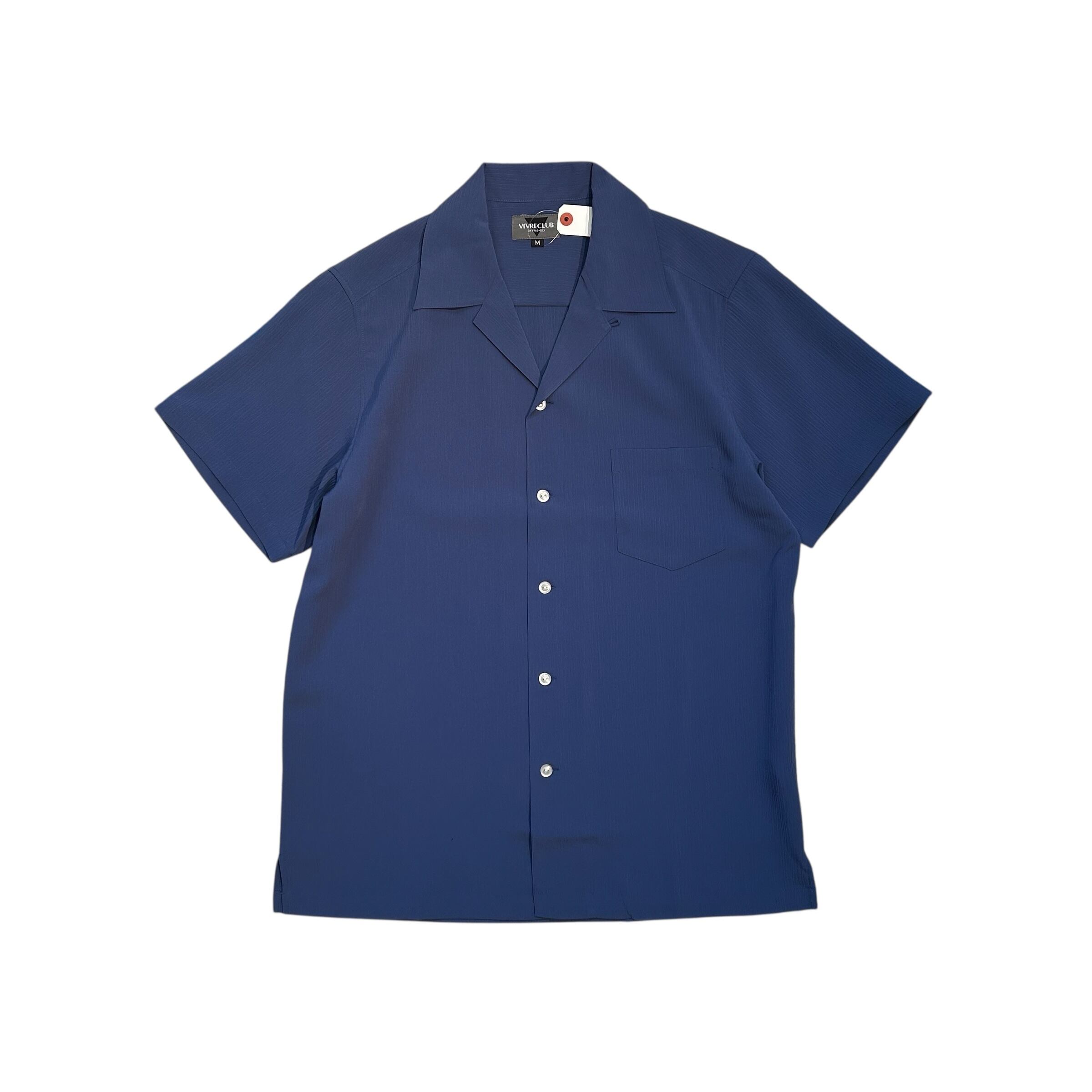 “VIVRE CLUB" Blue polyester wrinkle S/S open collar shirt