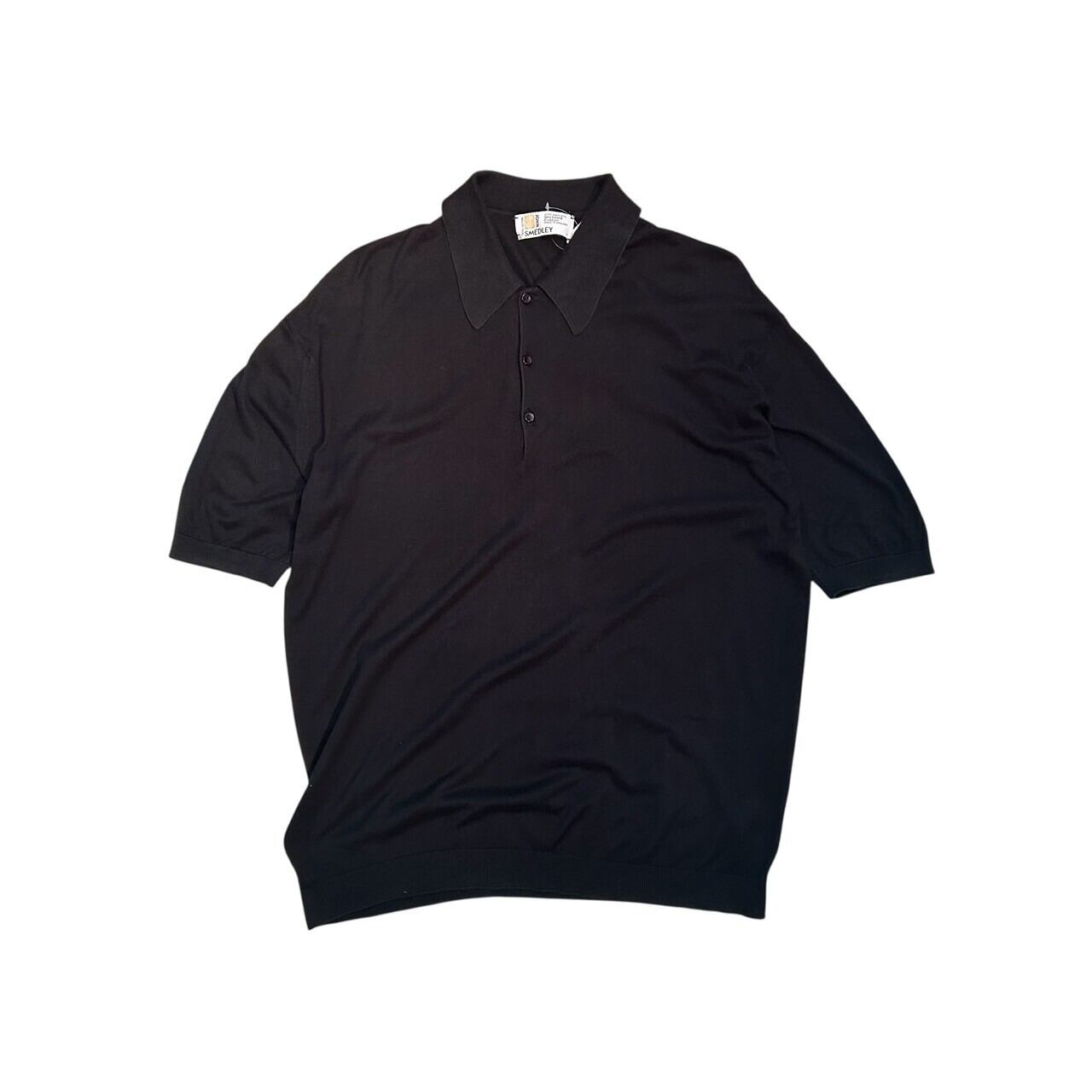 “JOHN SMEDLEY" Black cotton design S/S knit polo