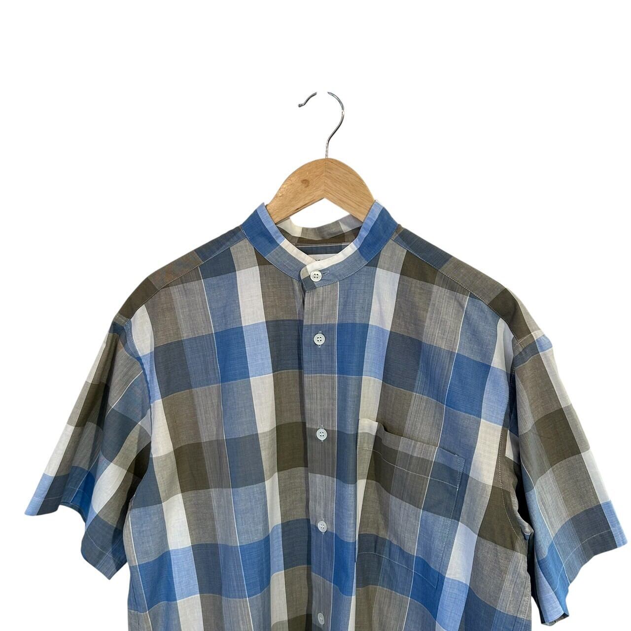 “ISSEY MIYAKE" Check cotton design S/S band collar shirt