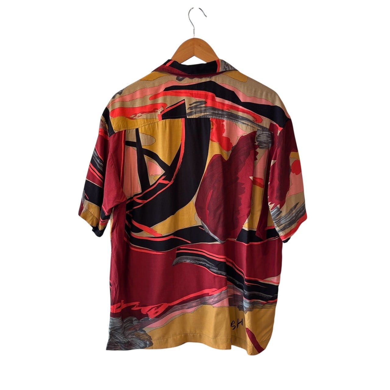 “PASHU” Unique pattern rayon design S/S open collar shirt