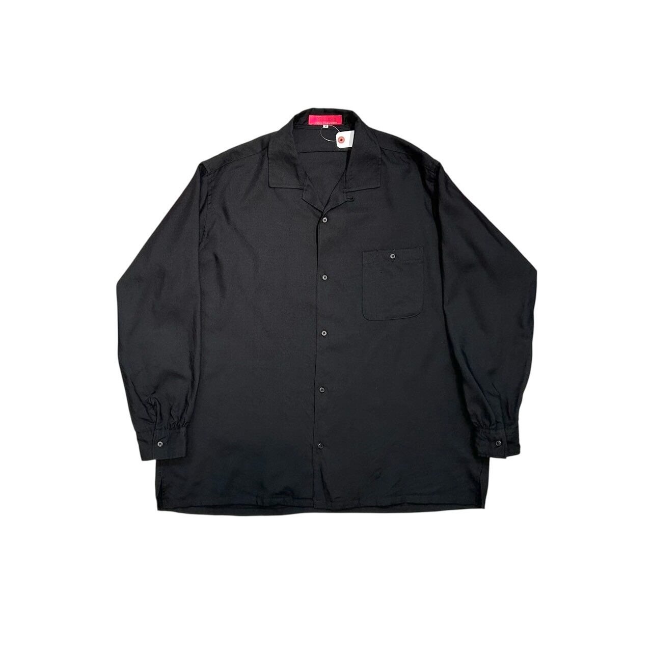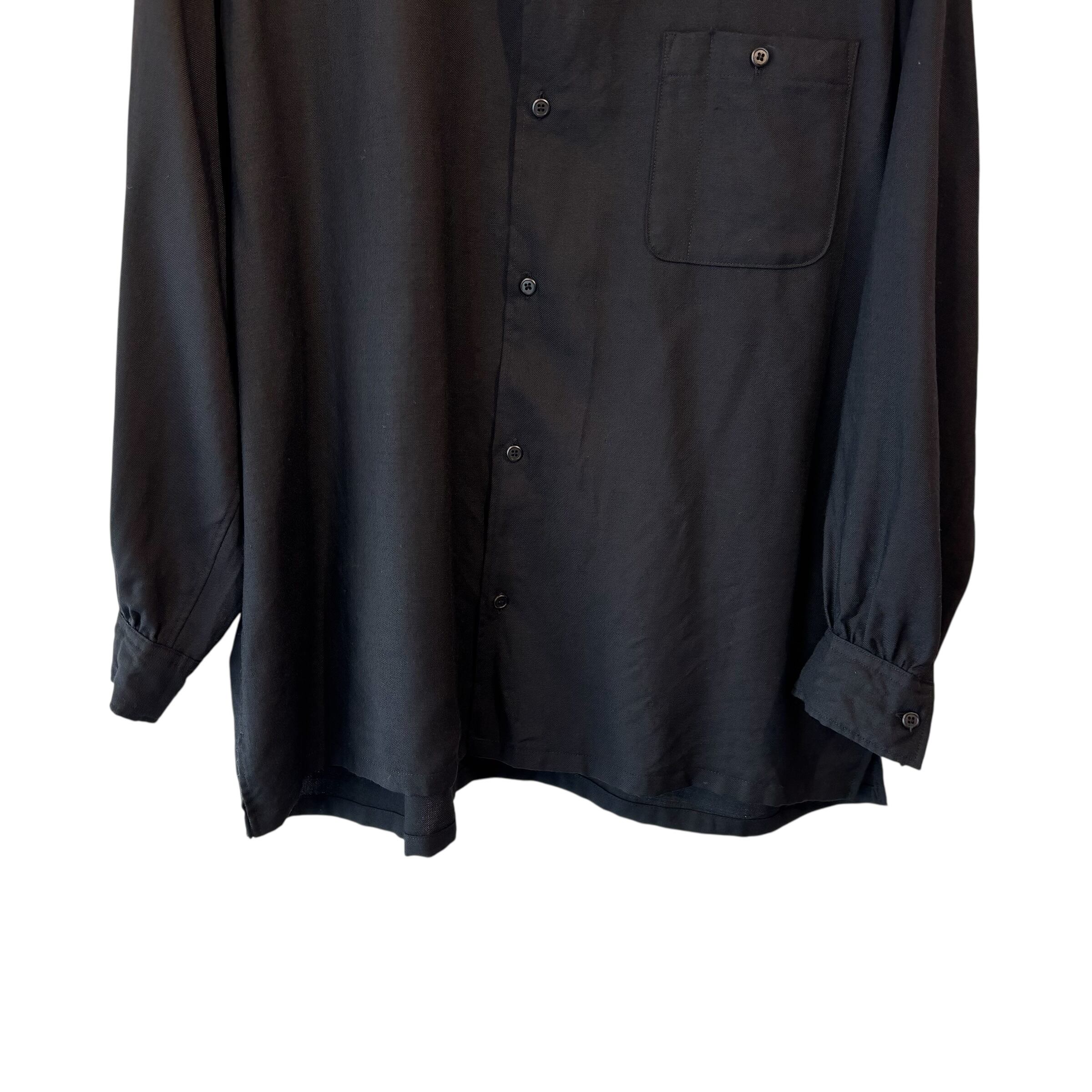"Y’s for men" Black wool design L/S open collar shirt