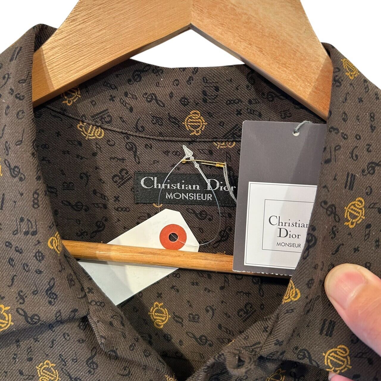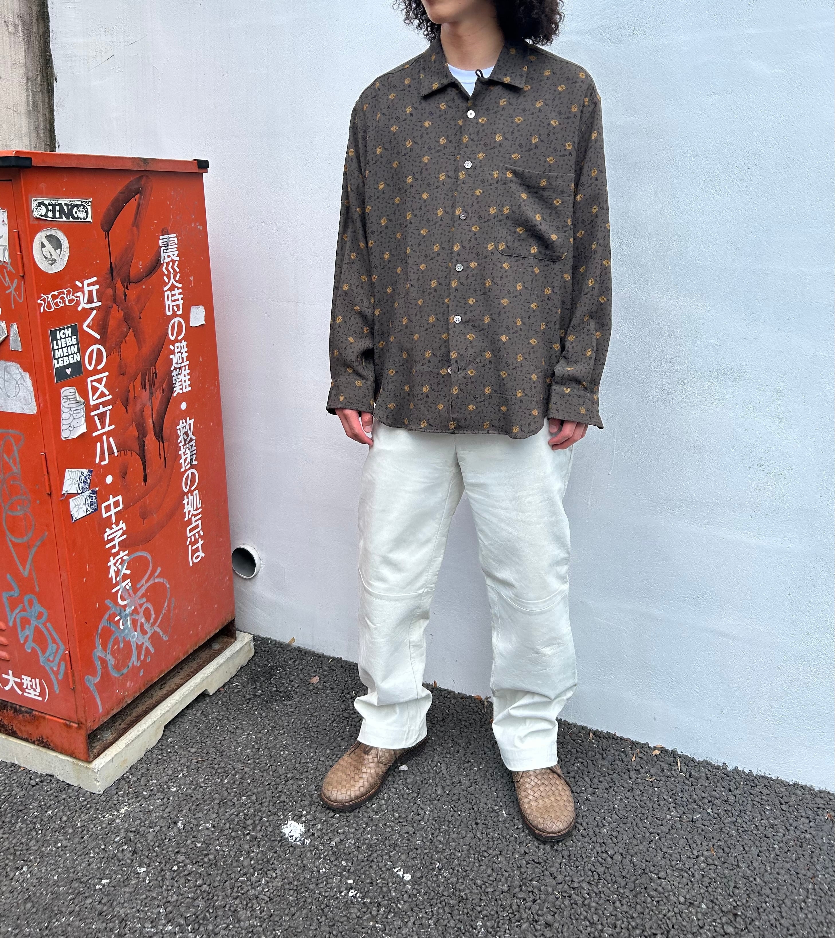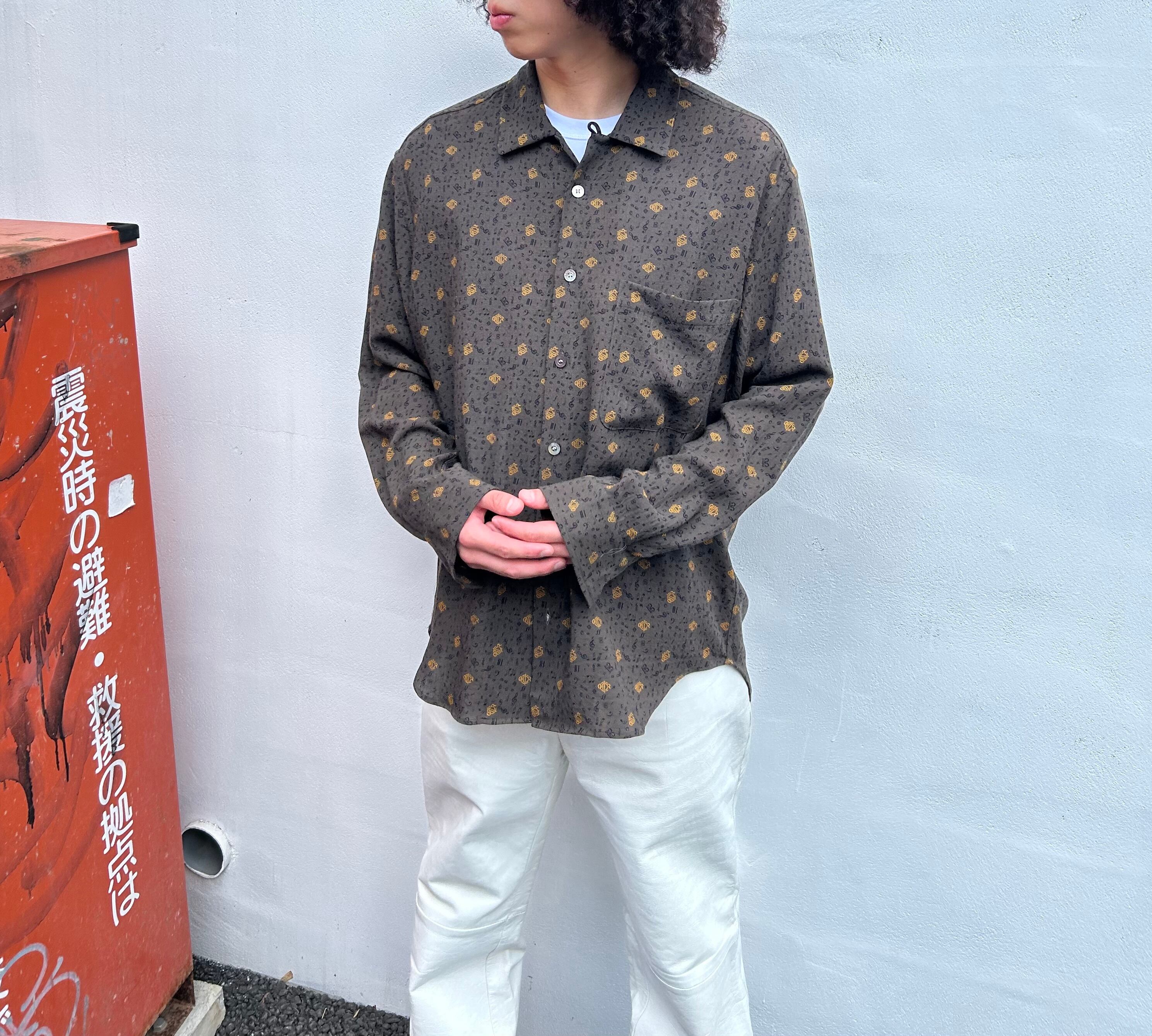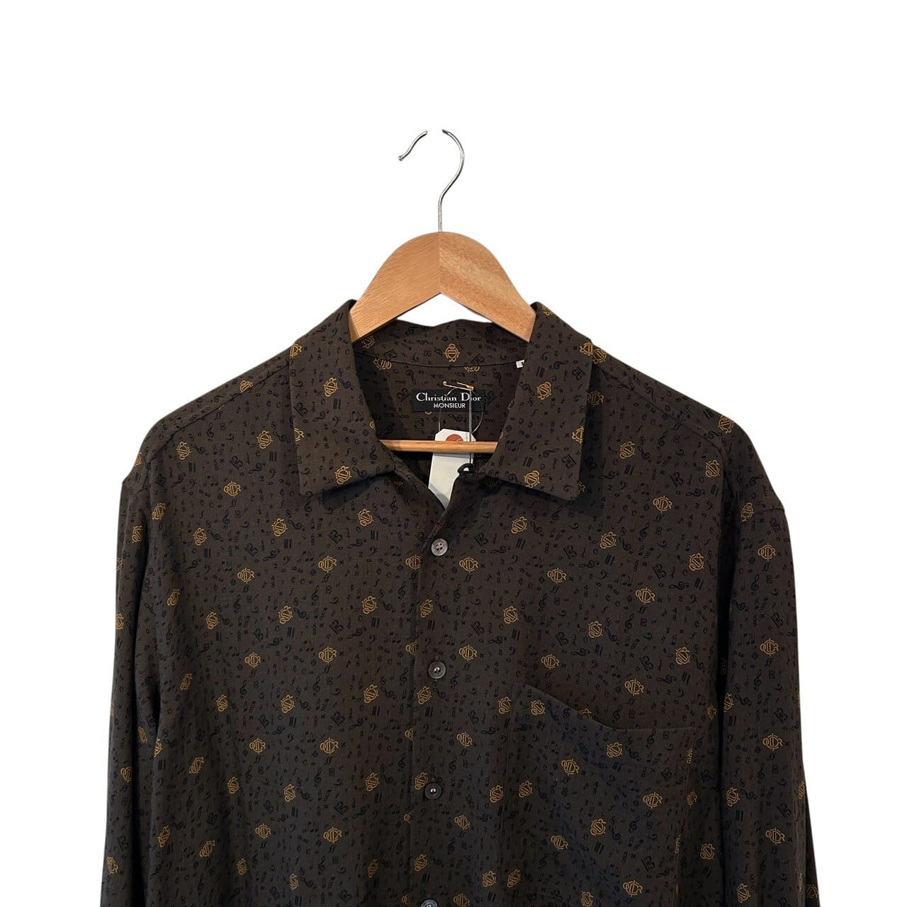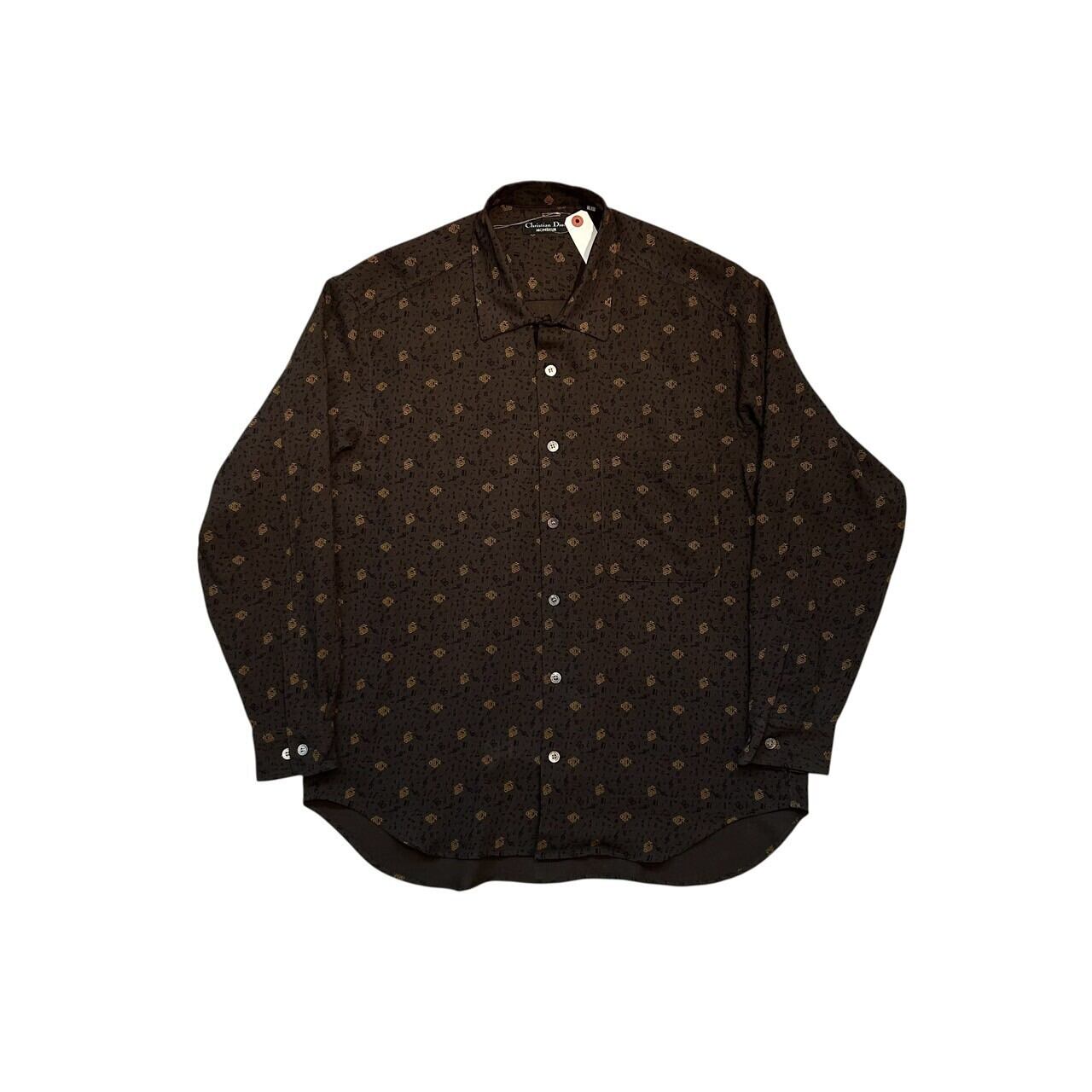 “Christian Dior” Unique pattern L/S wool/silk open collar shirt