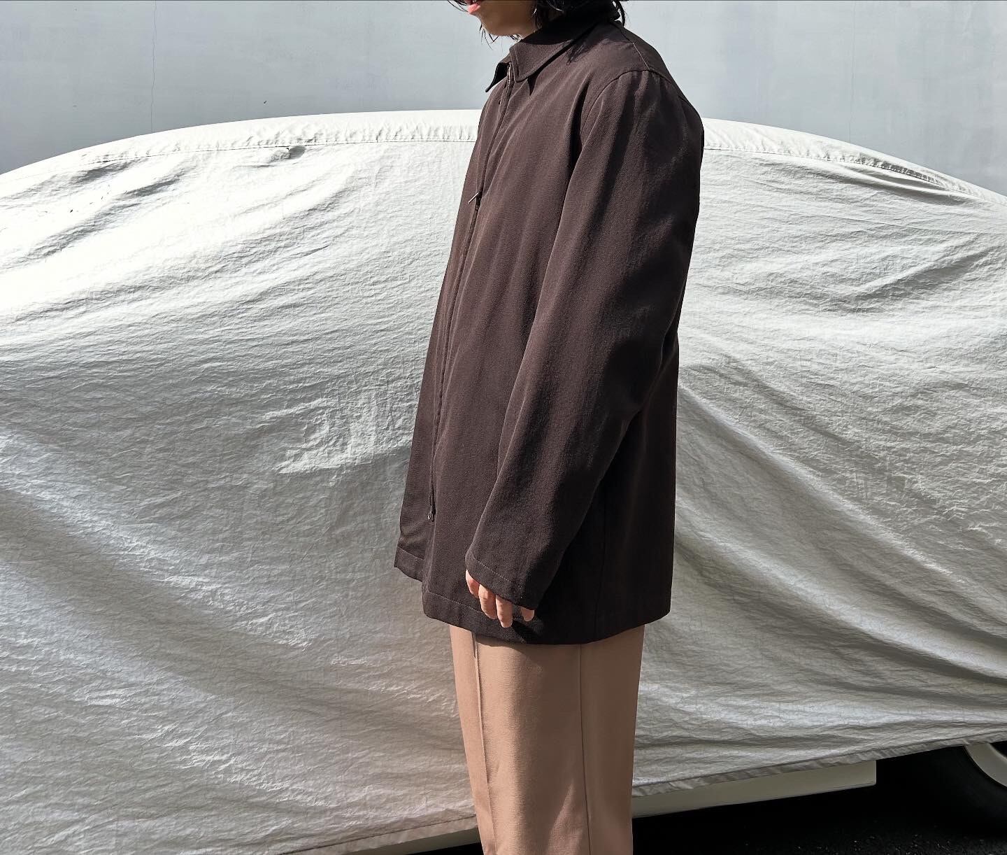 "Y’s for men" Dark brown wool/cotton design zip up jacket