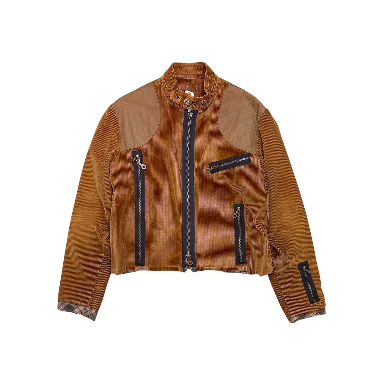 “UACT" Brown corduroy design multi zip up jacket
