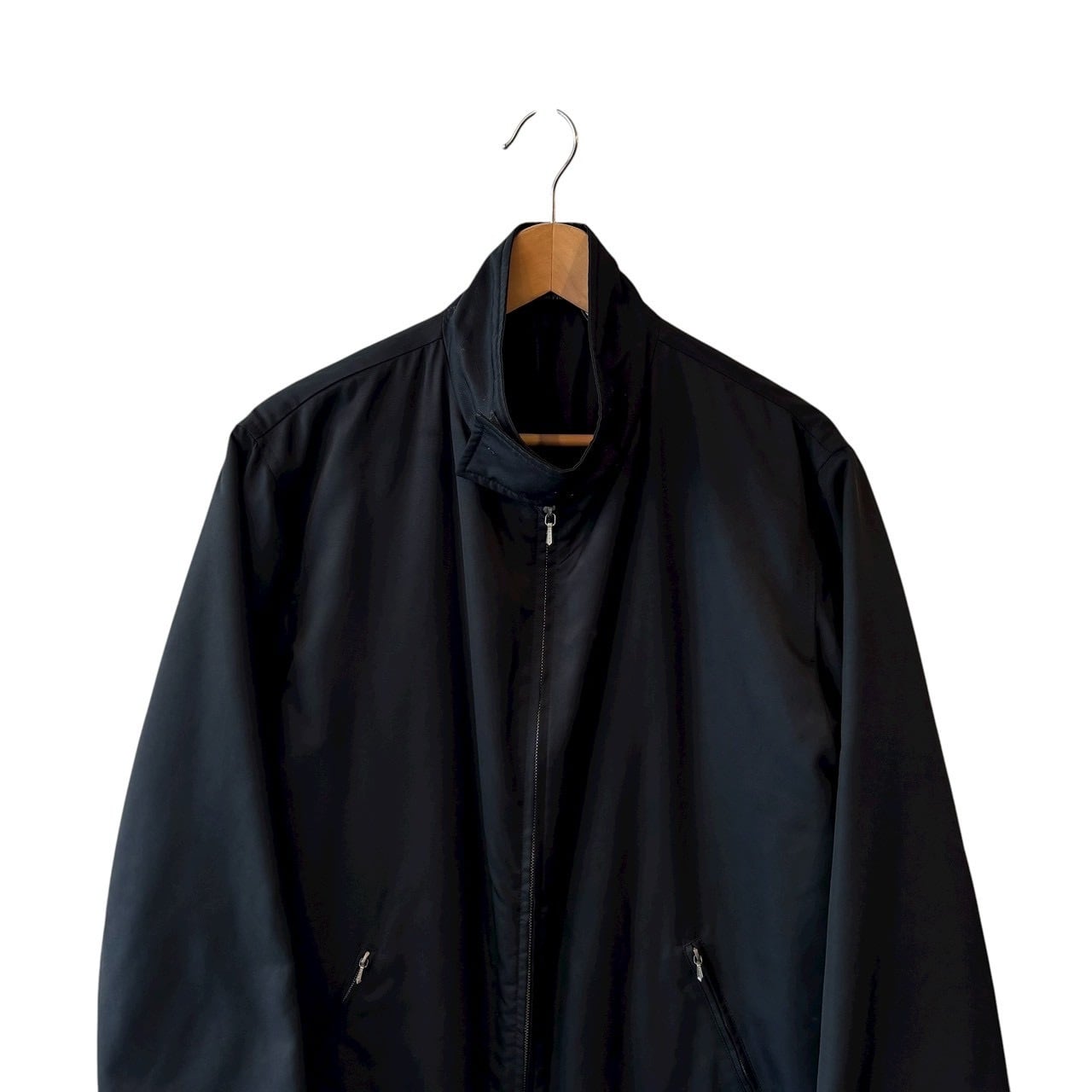 "agnes b." Black poly design zip up half coat