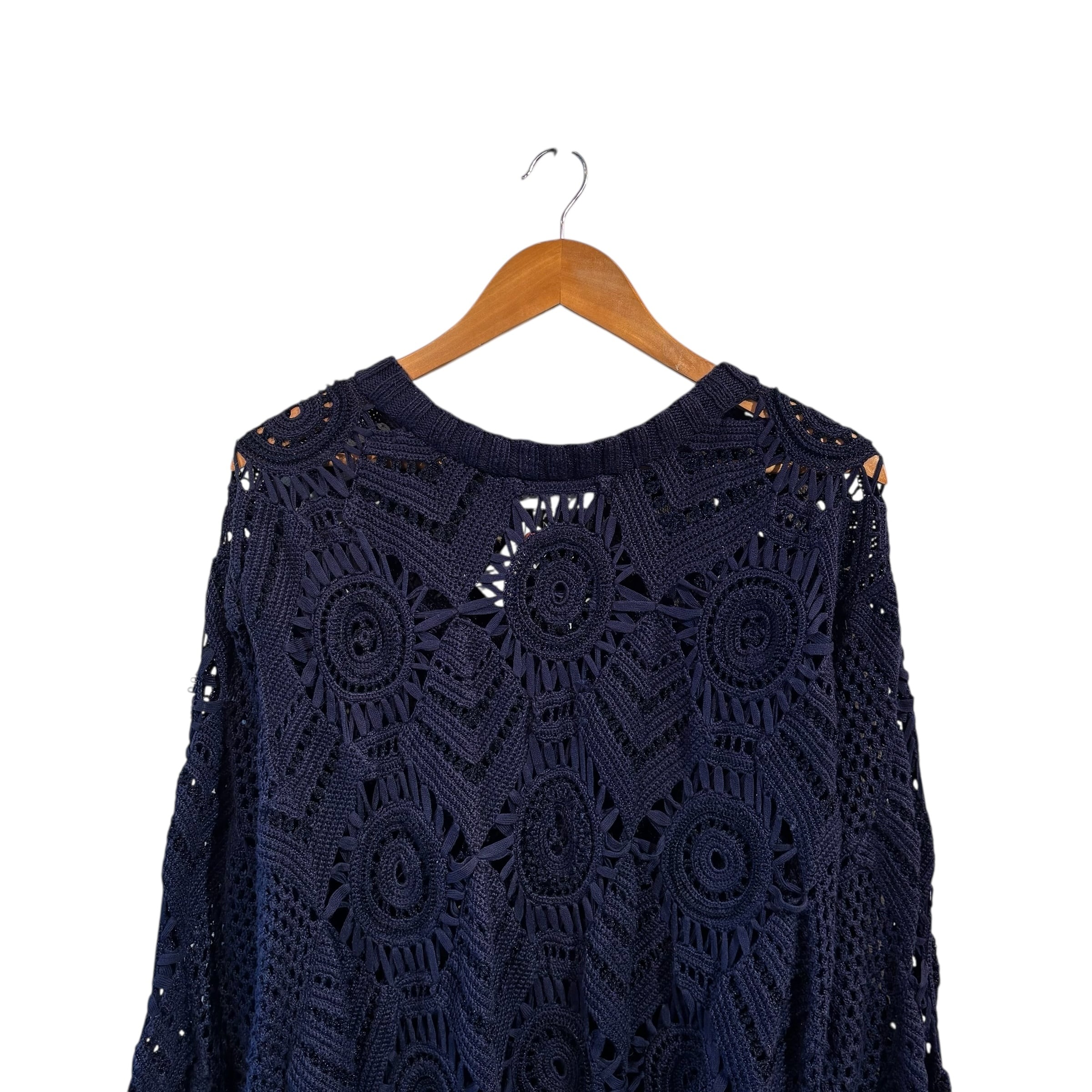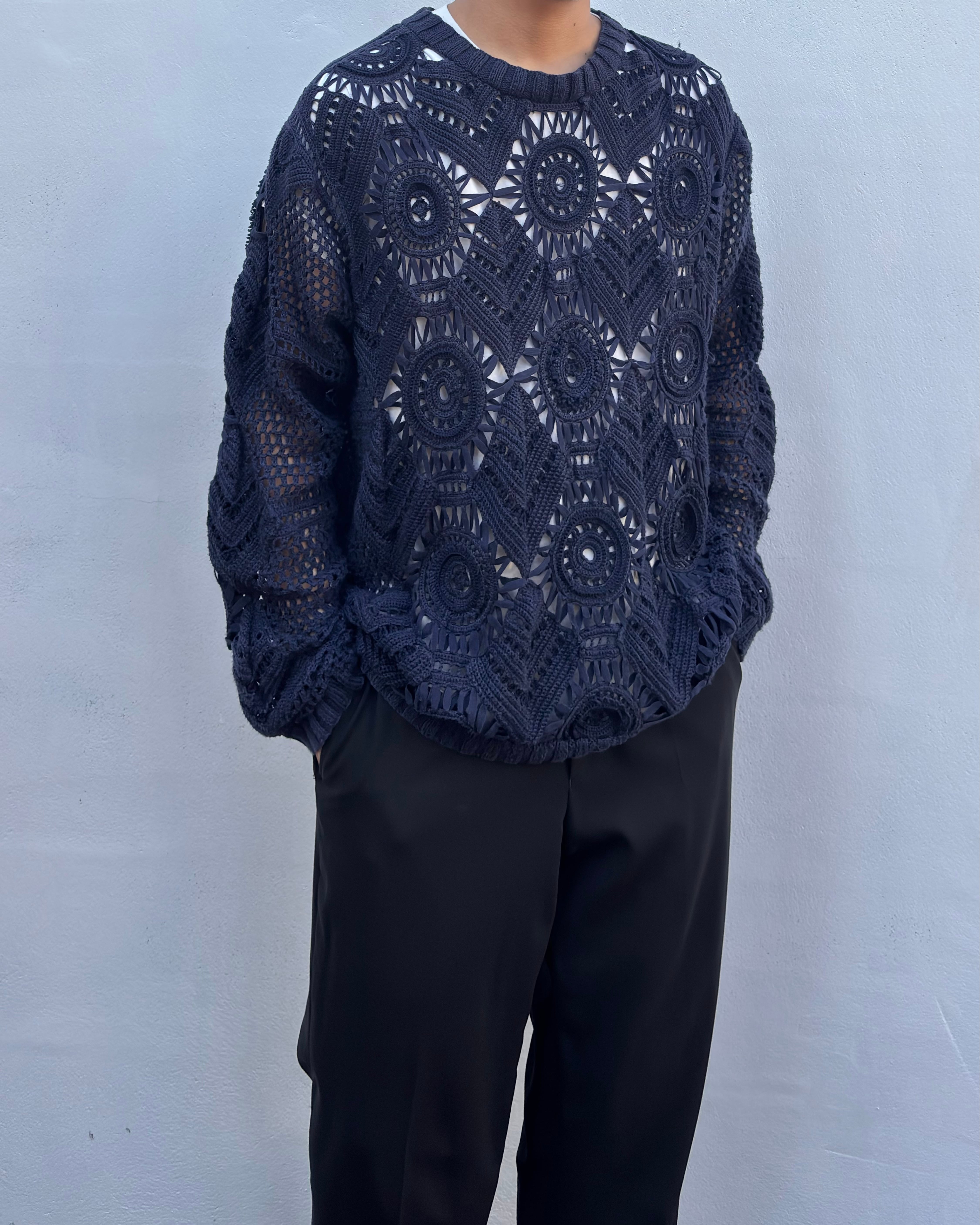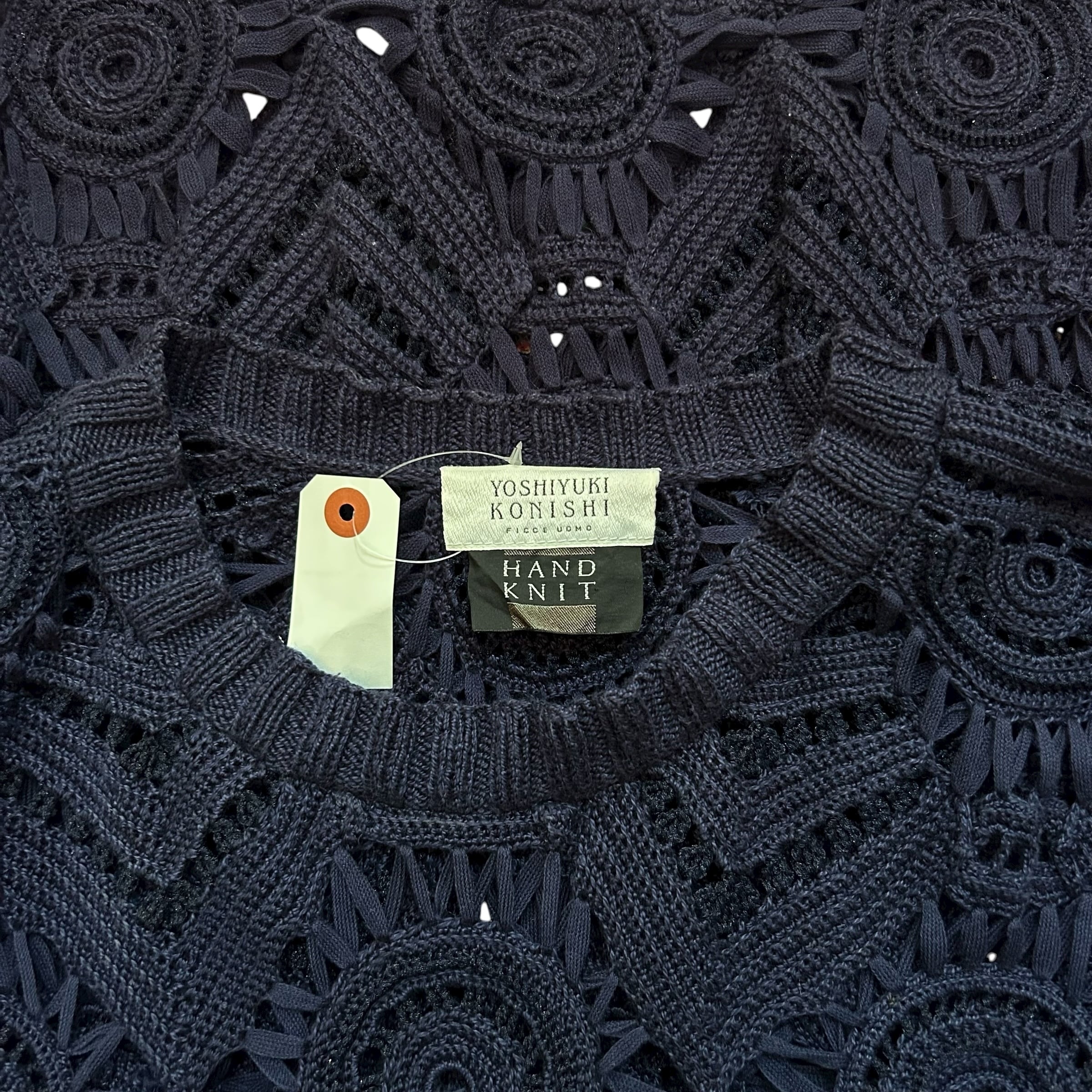 “YOSHIYUKI KONISHI" Crochet cotton/nylon design hand knit sweater