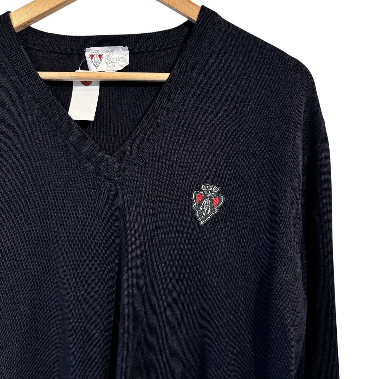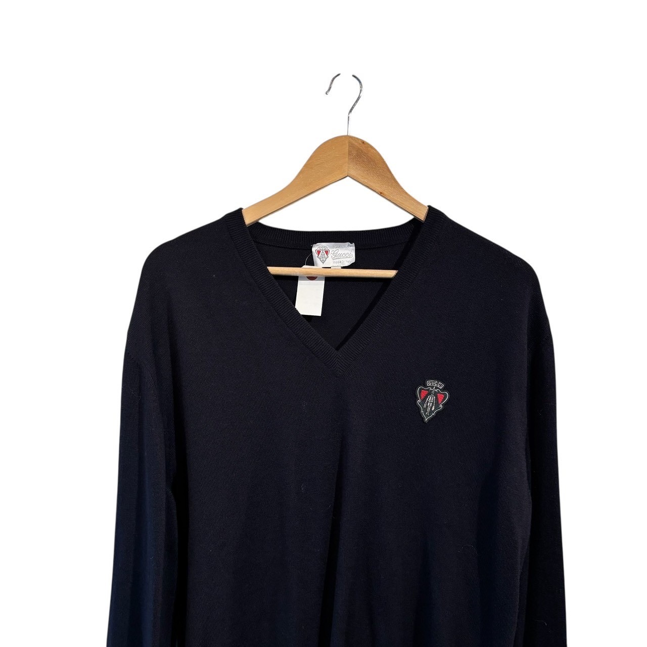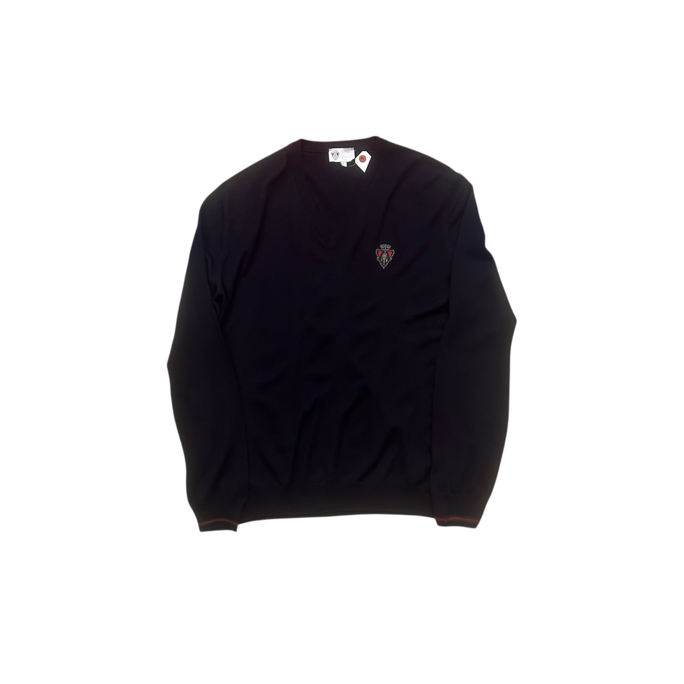“GUCCI" Dark navy wool design Vneck sweater
