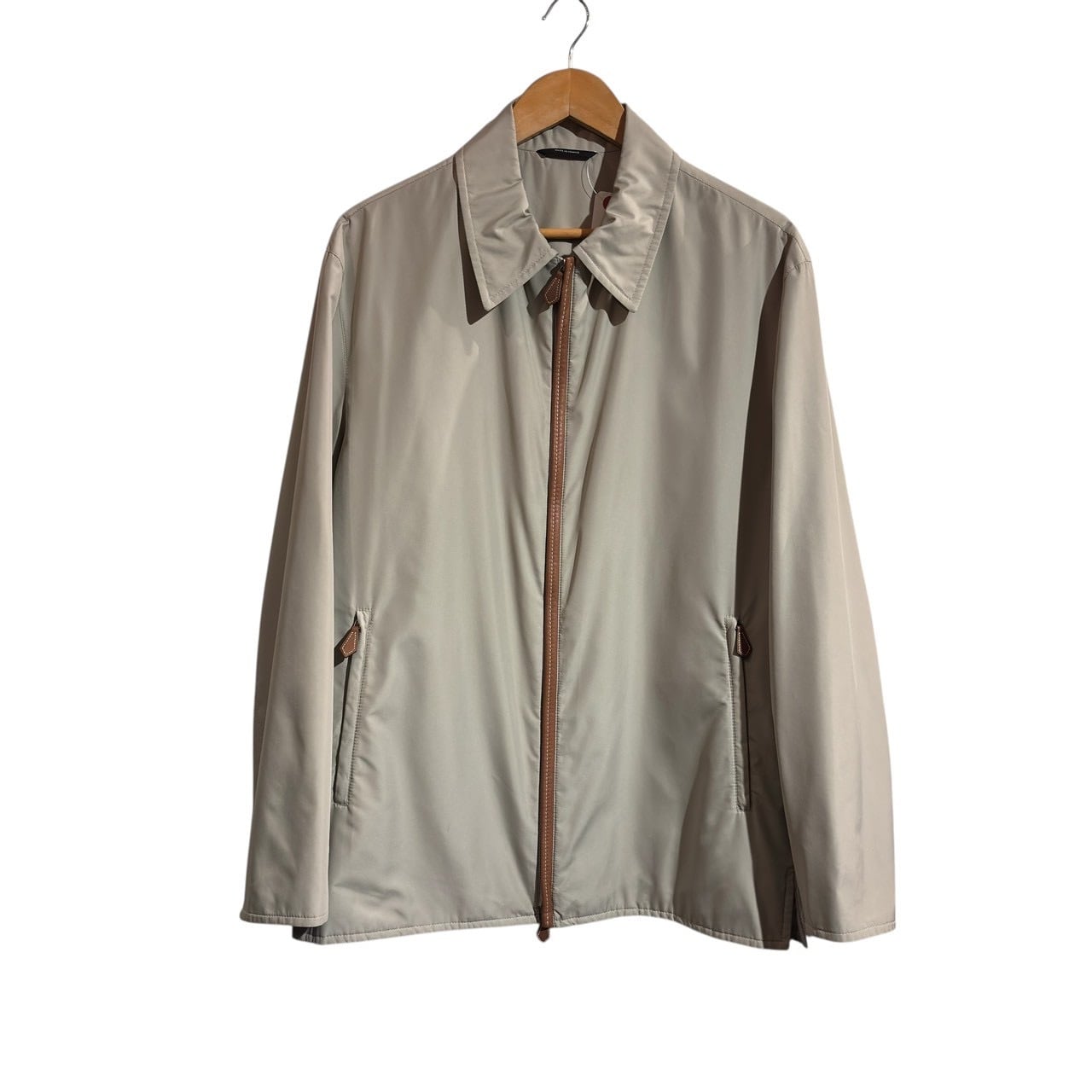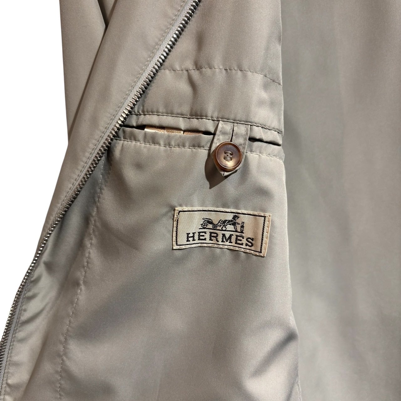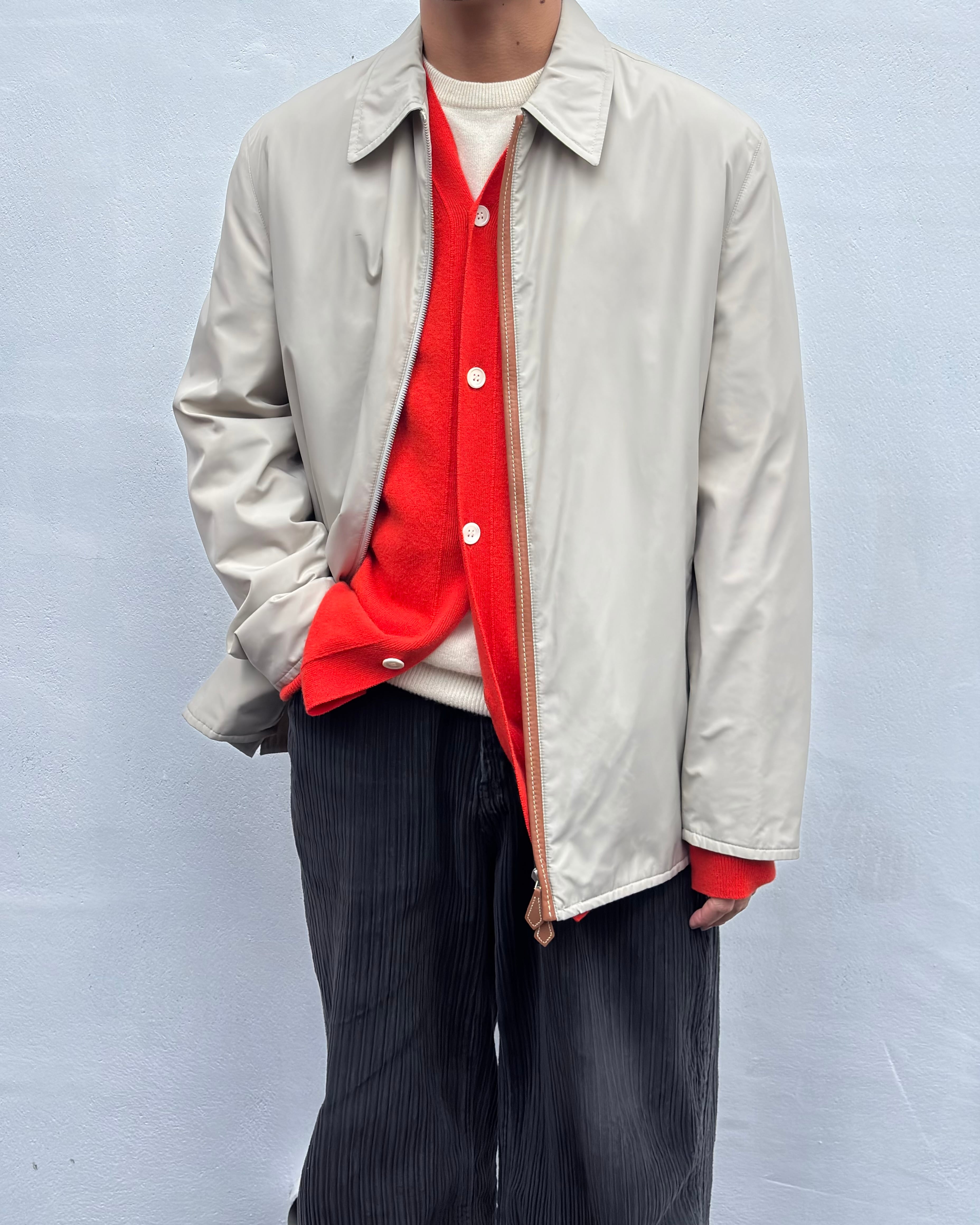 "HERMES" Light beige poly shell Leather piping padded blouson