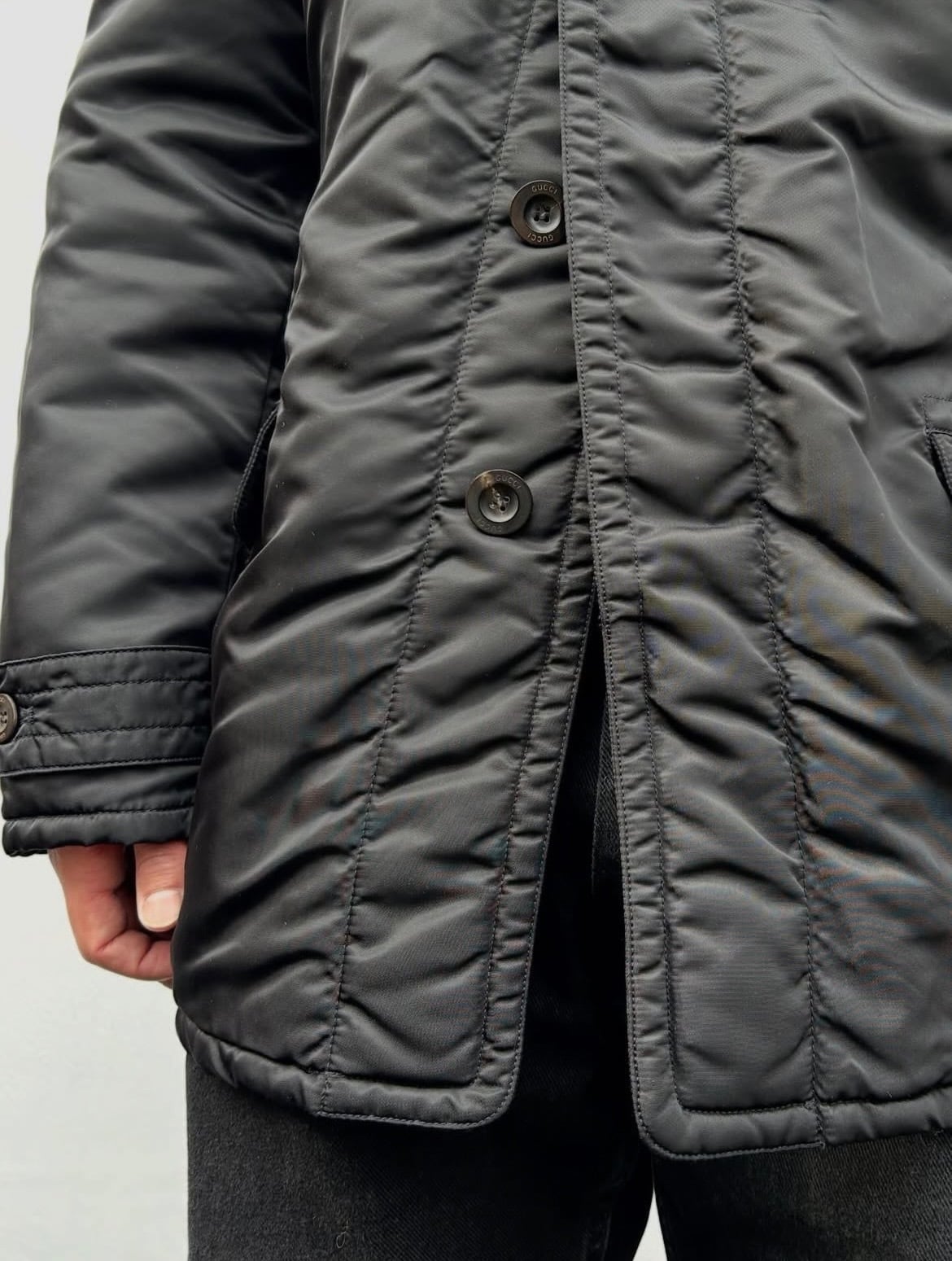 "GUCCI" Black nylon design padded half coat