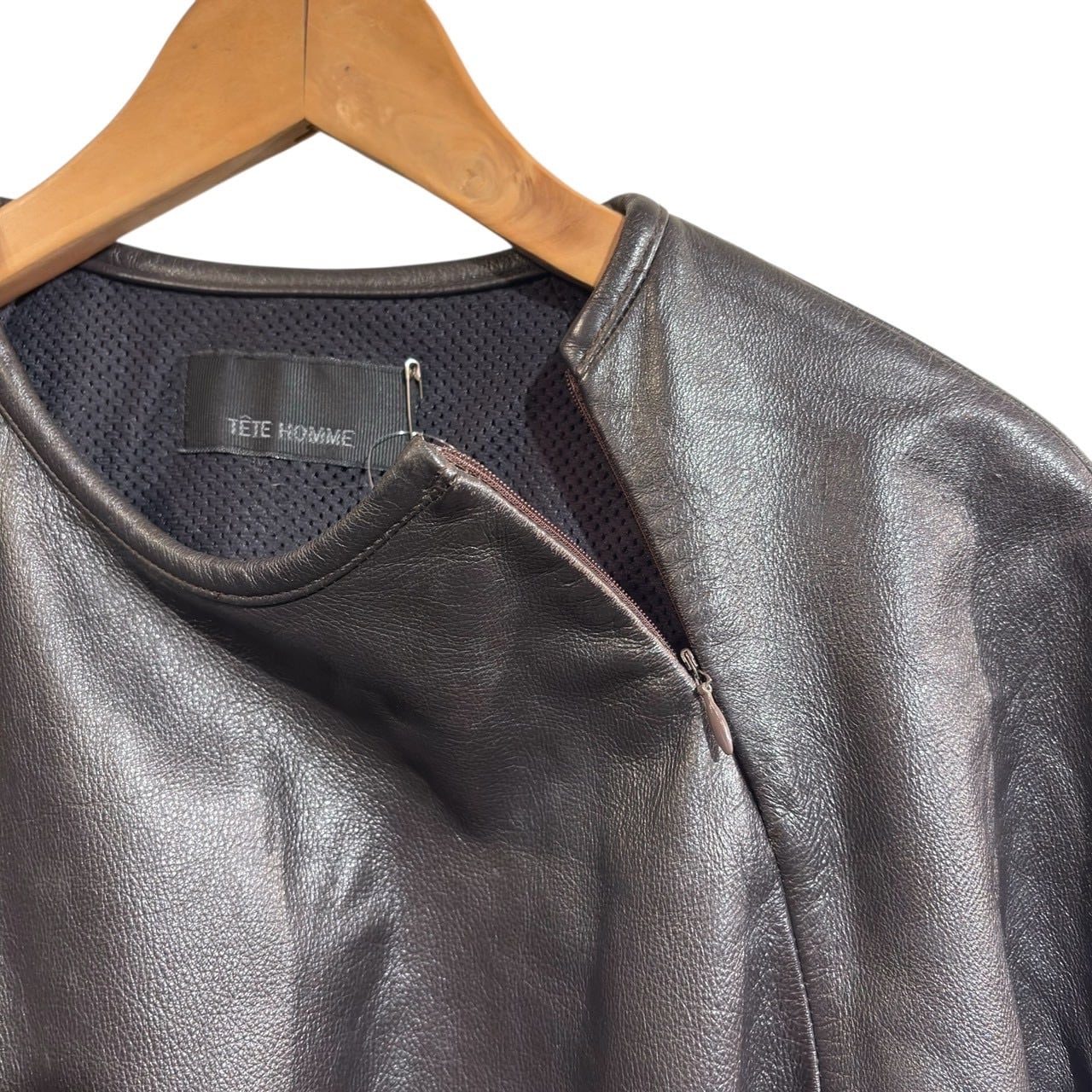 "GAULTIER FEMME" Black lambs leather design neck zip pullover