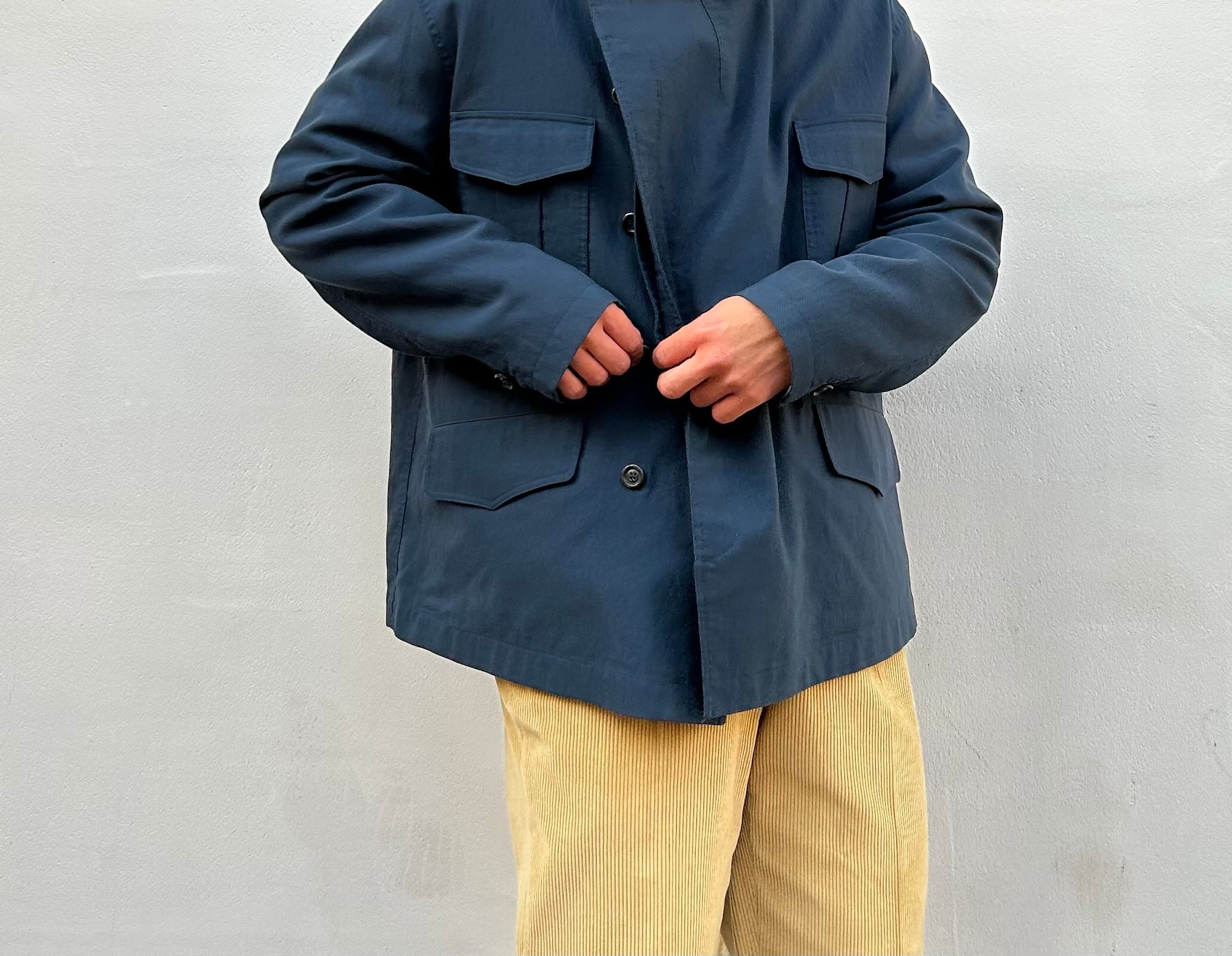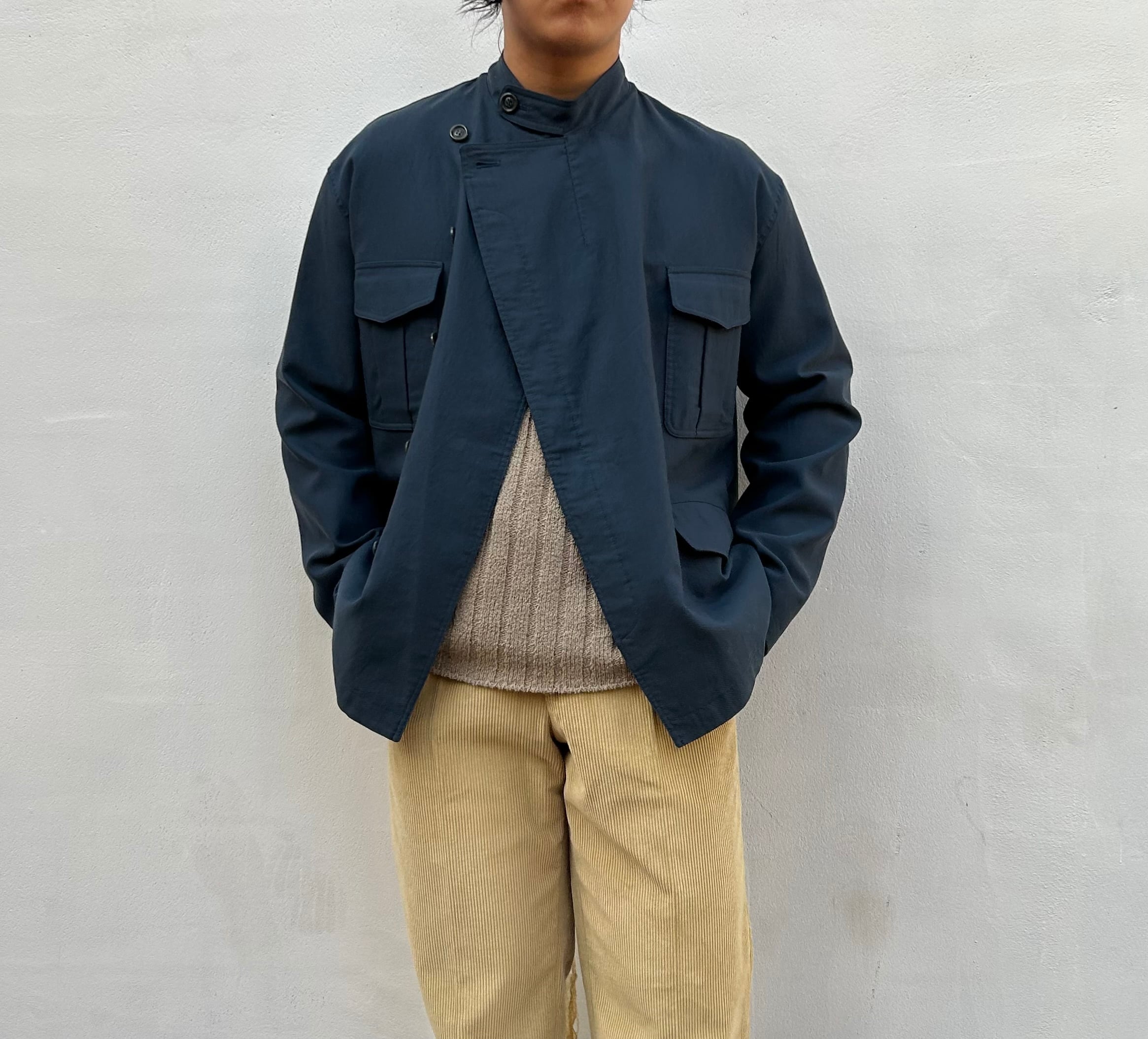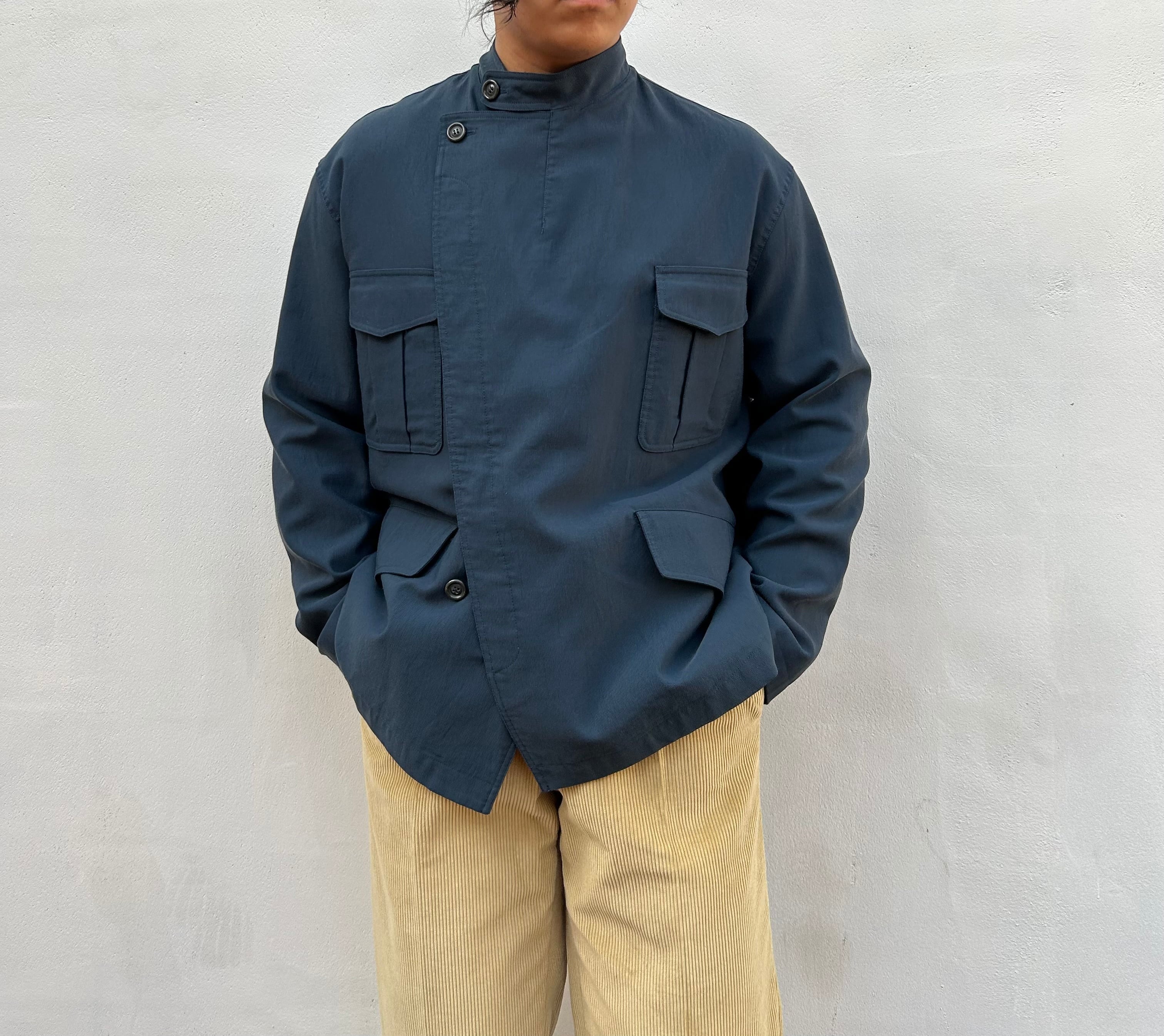"EMPORIO ARMANI" Navy blue cotton/nylon design stand collar jacket