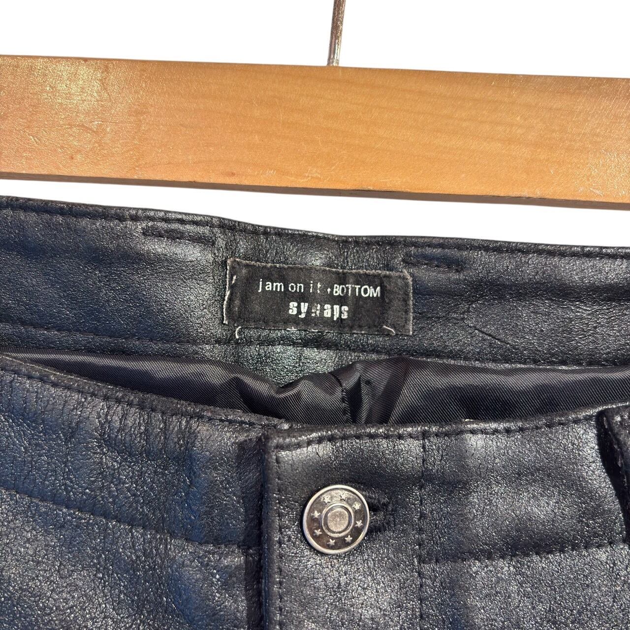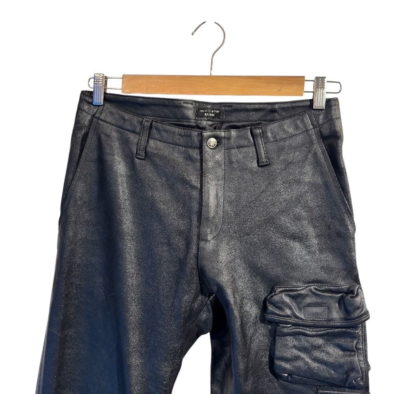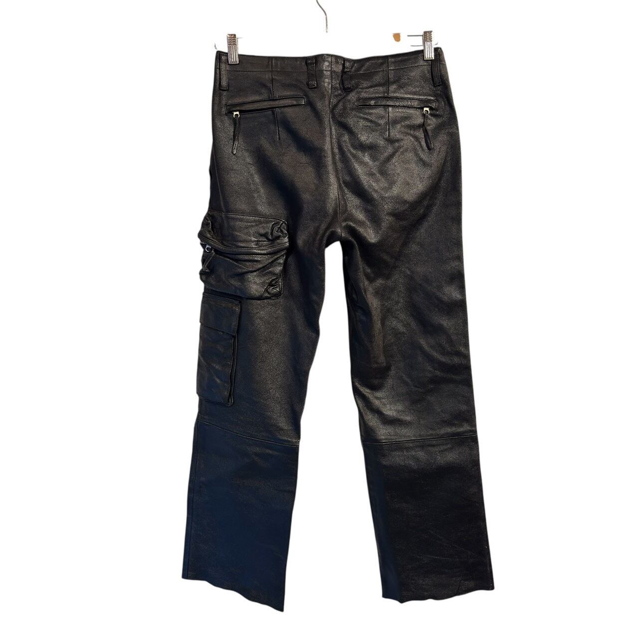 "synaps" Black cow leather design multi pocket pants