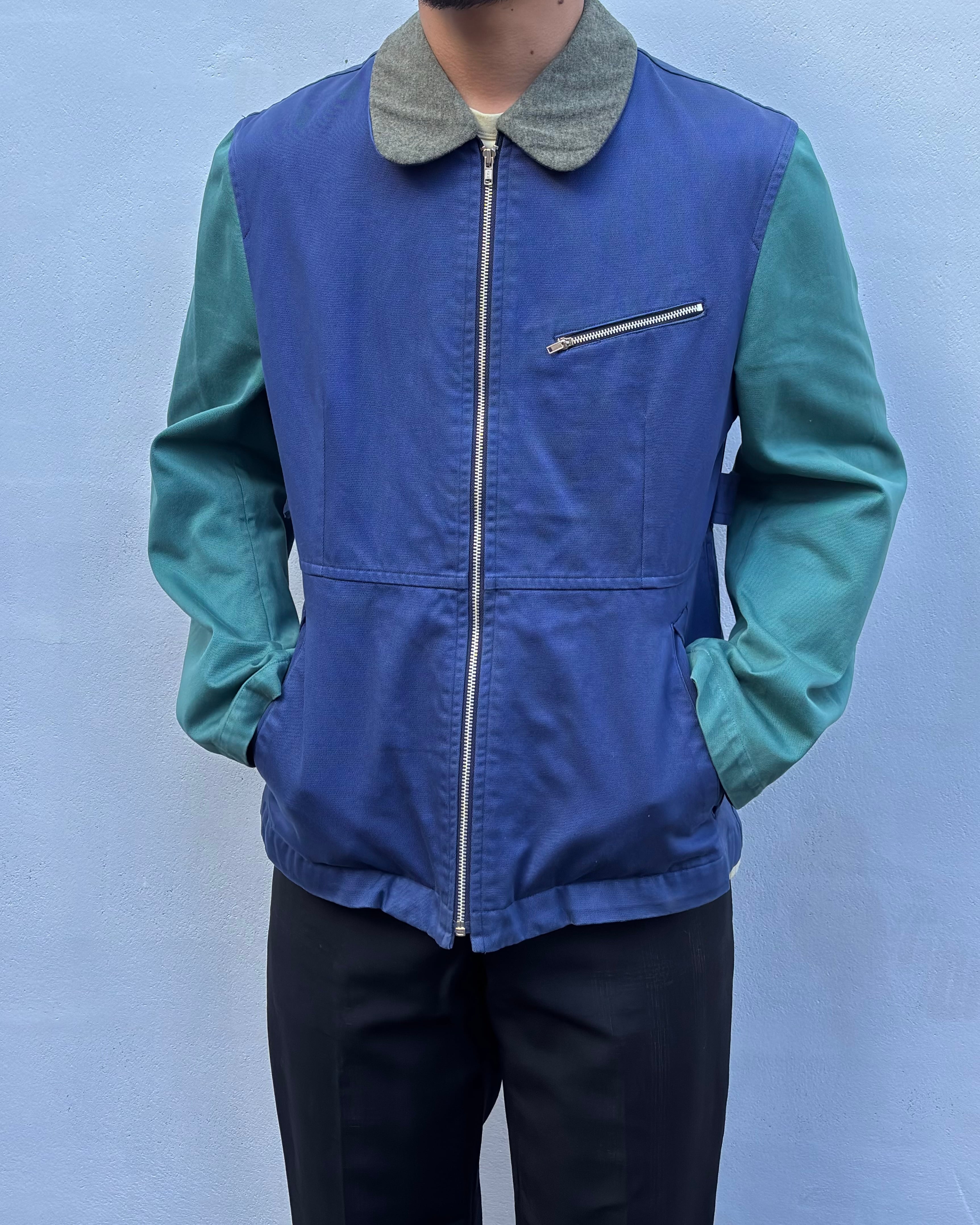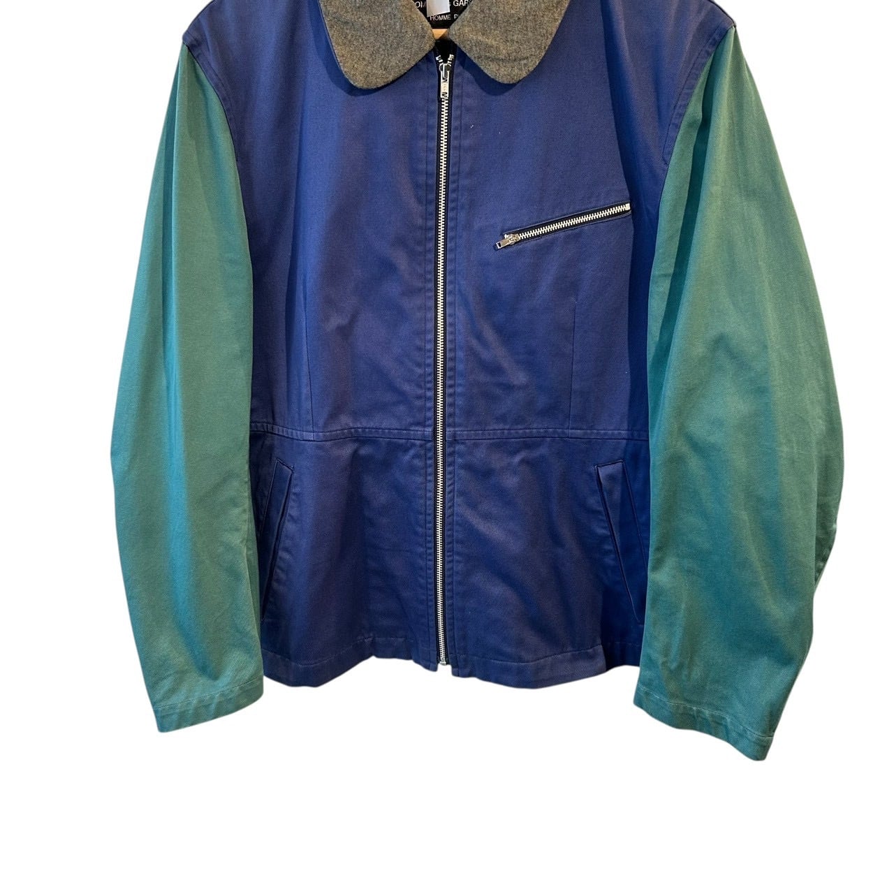"GARÇONS HOMME PLUS" Blue/Green cotton collar switch zip jacket