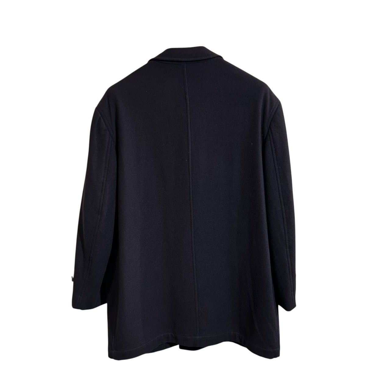 "GARÇONS HOMME PLUS" Dark navy wool nylon fly front coat