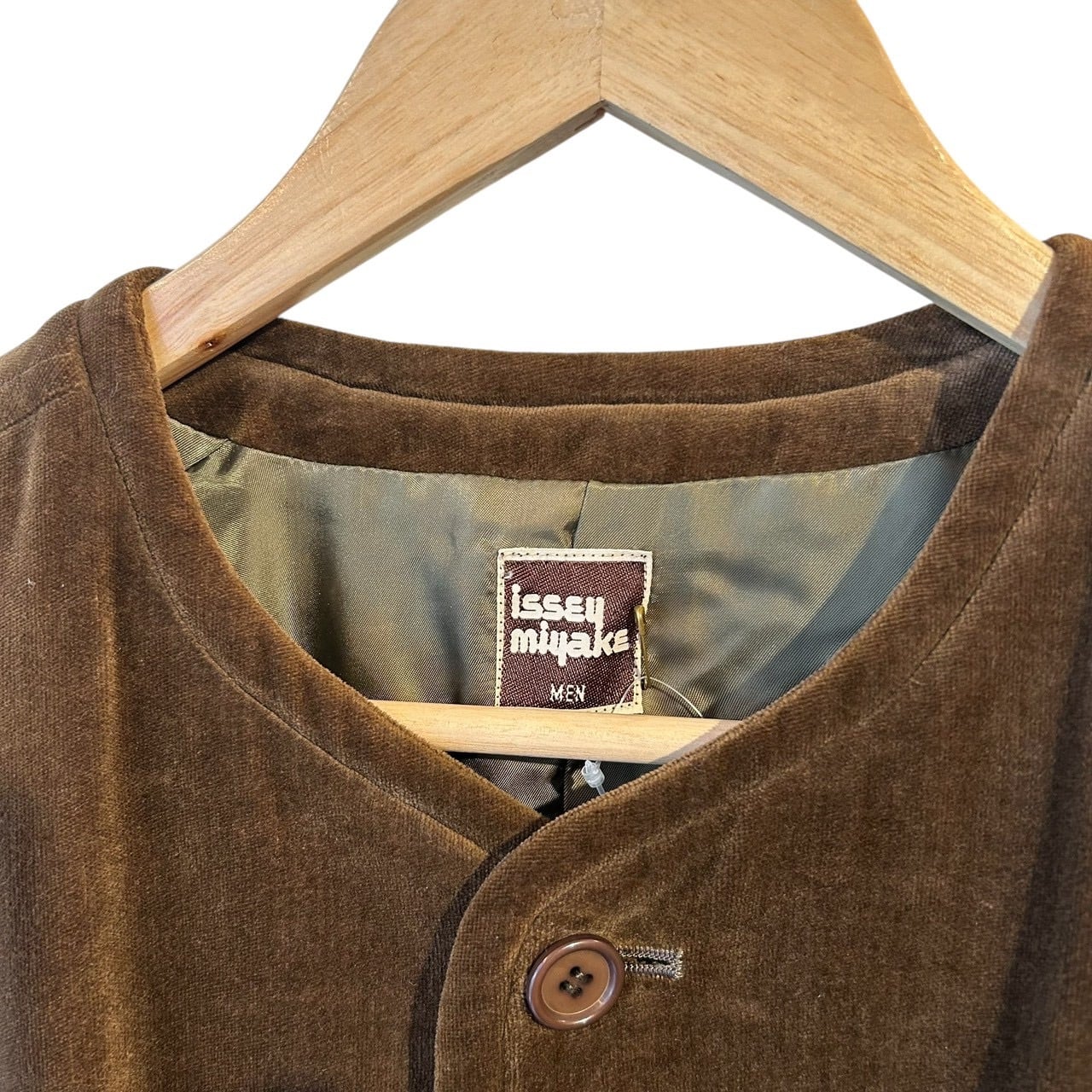 "ISSEY MIYAKE MEN" Brown velour no collar design jacket