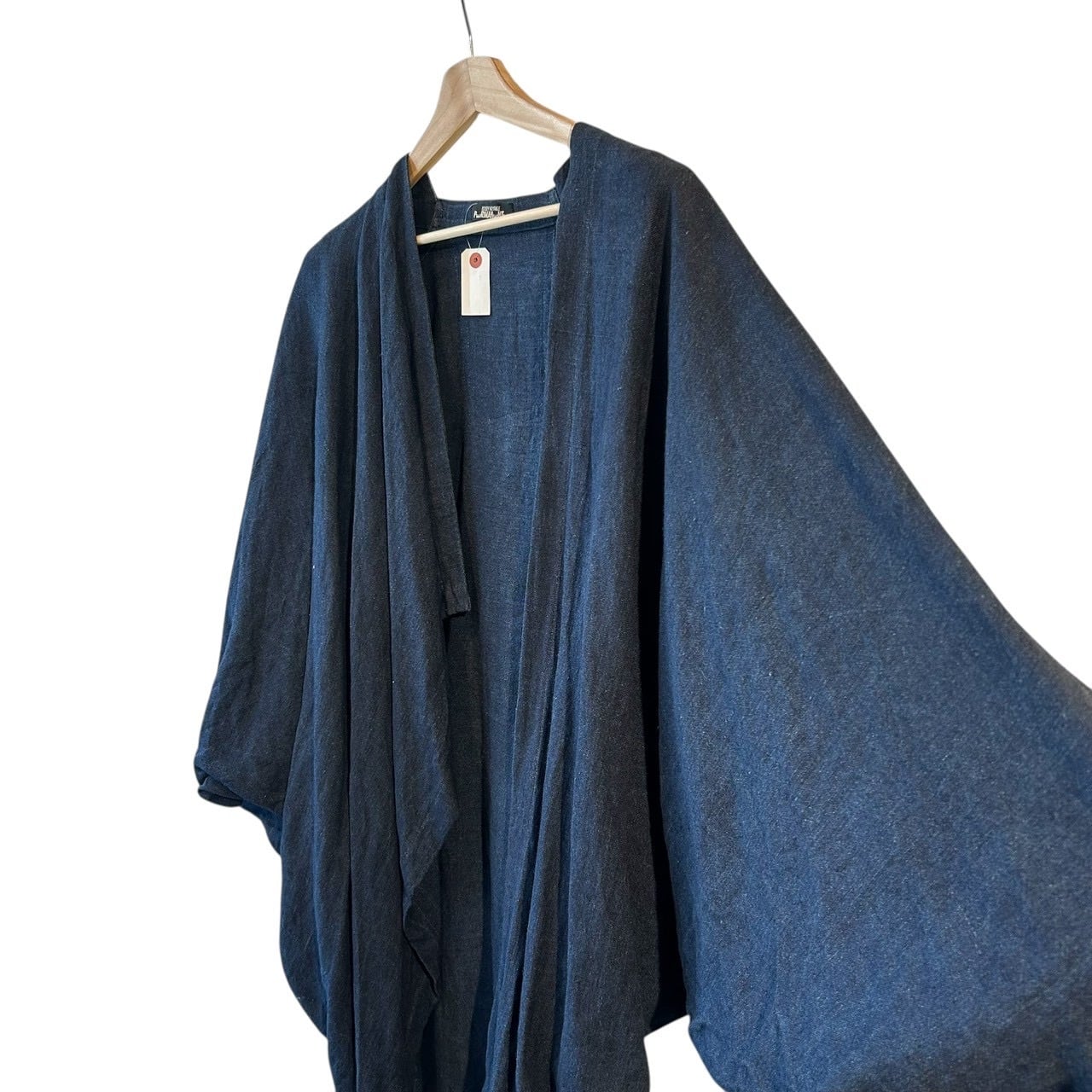 “ISSEY MIYAKE PERMANENTE” [cocoon Coat ]indigo linen