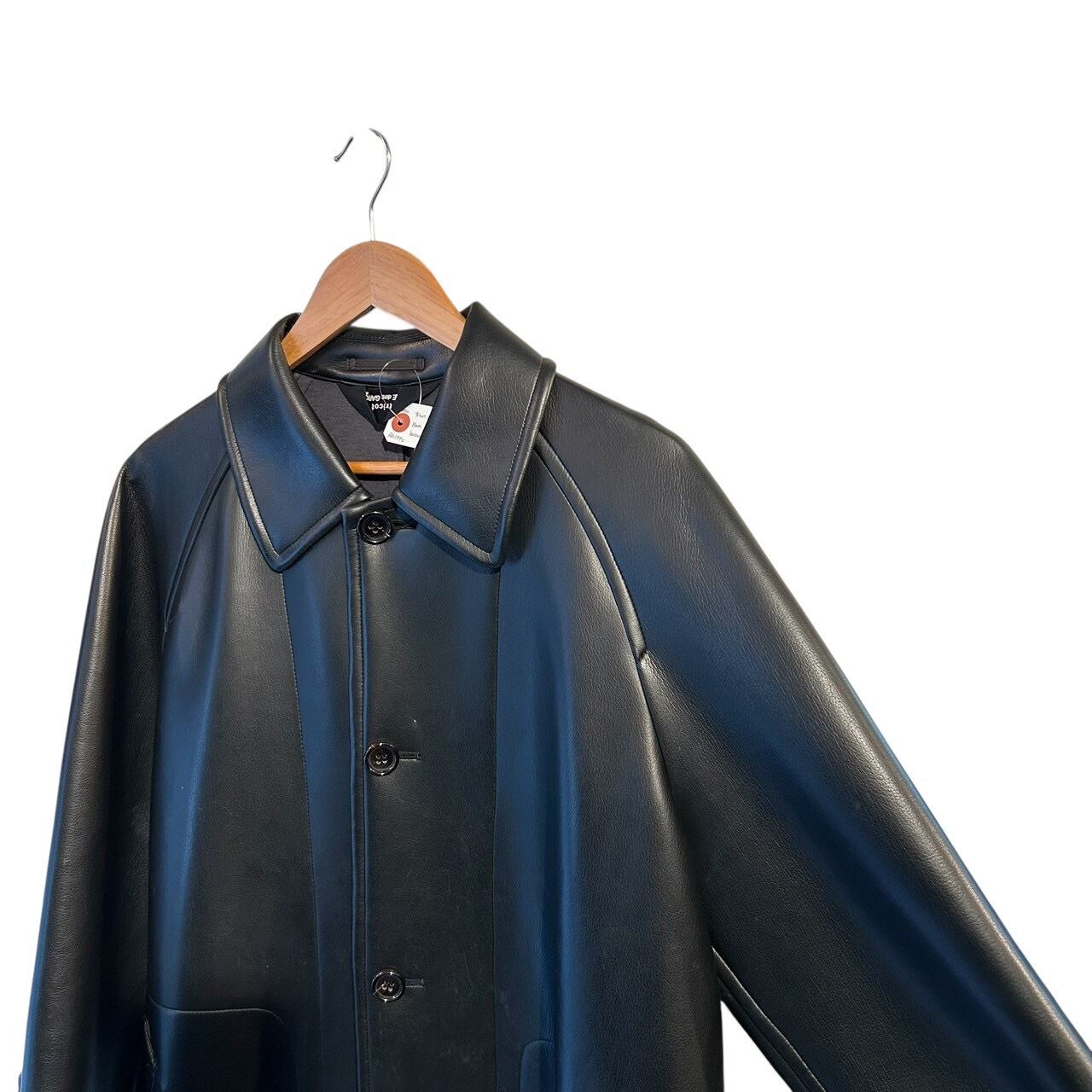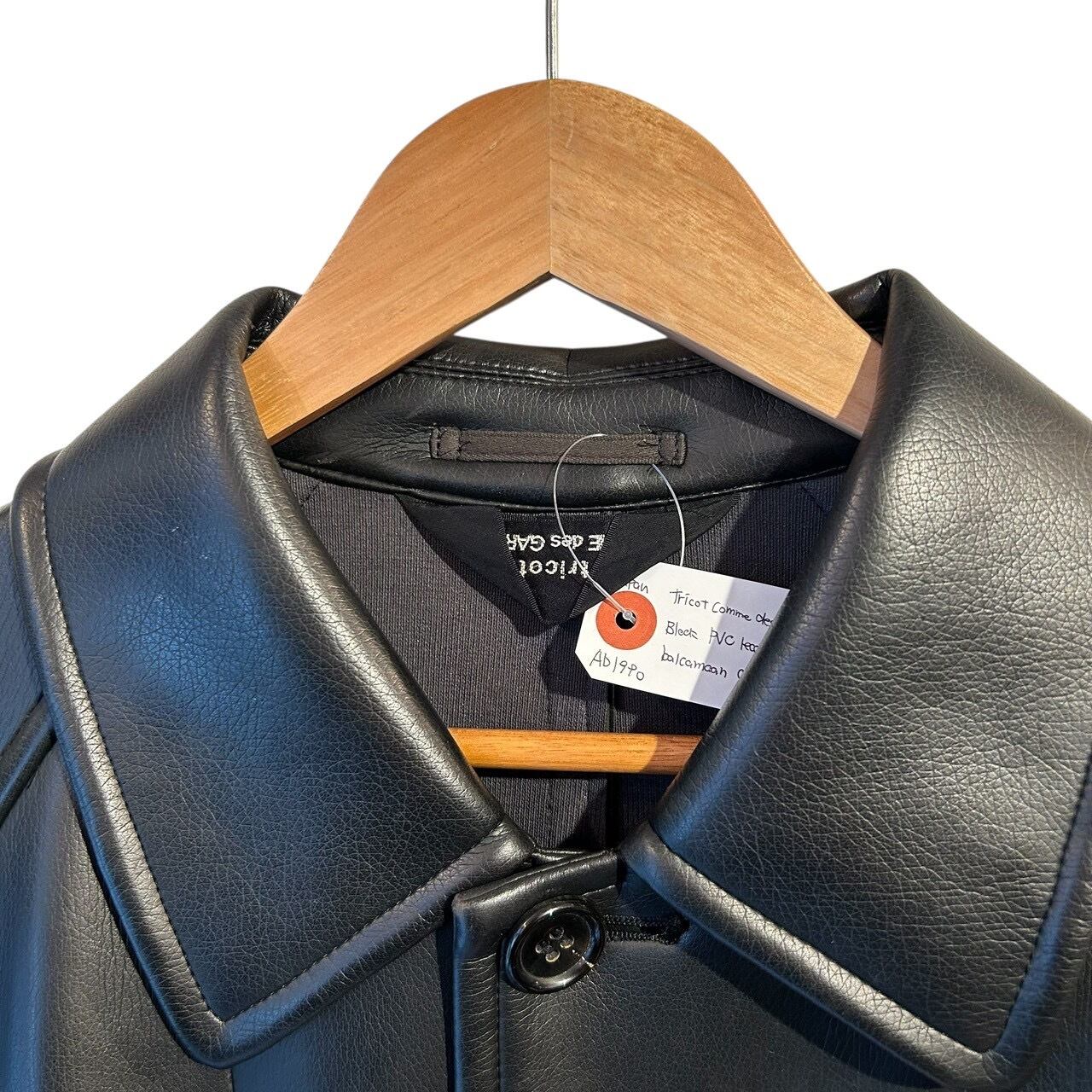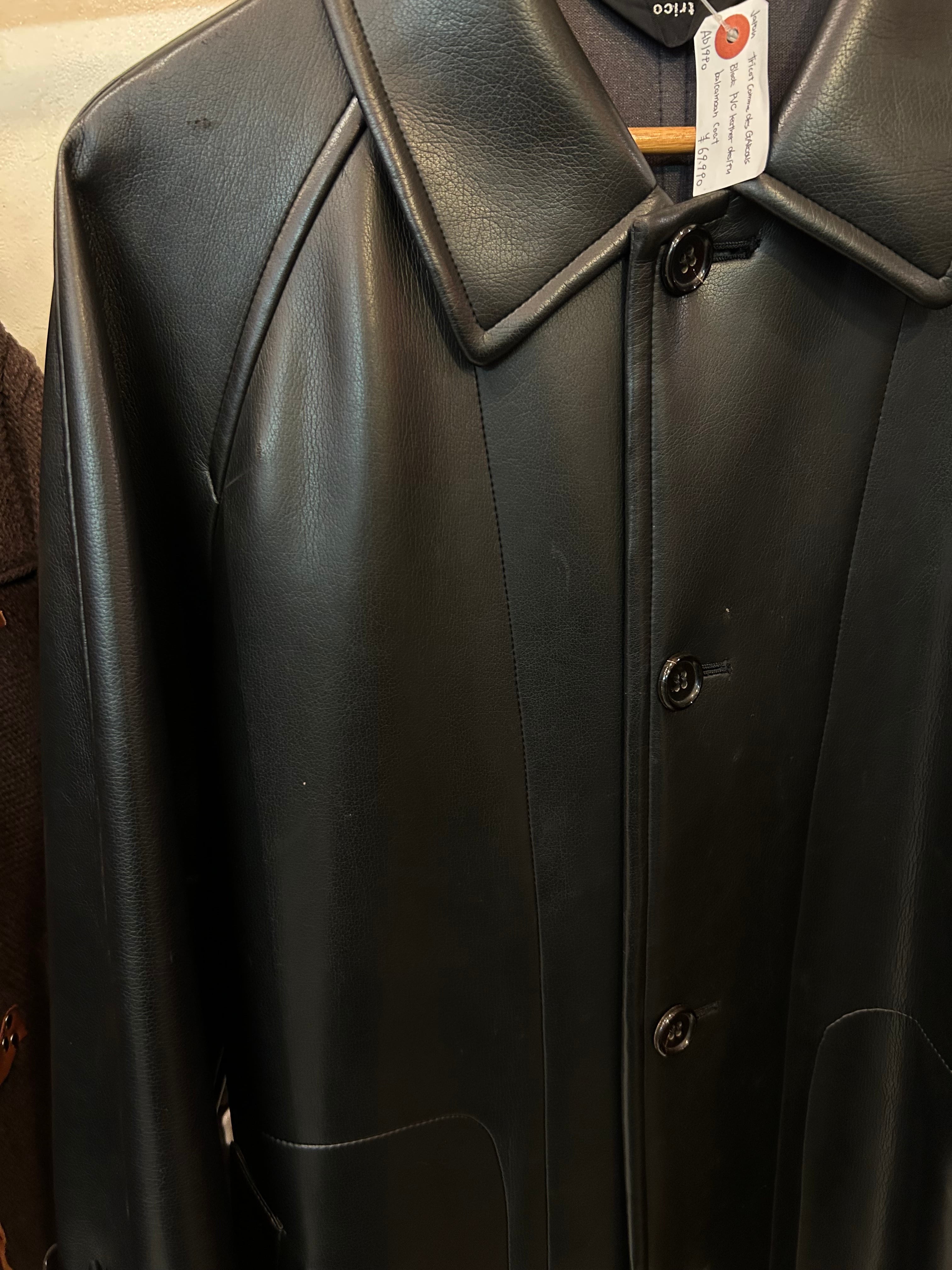 “tricot GARCONS" Black PVC leather design balmacaan coat