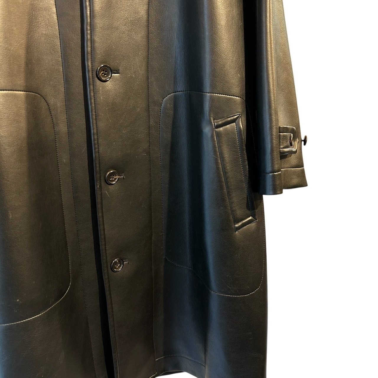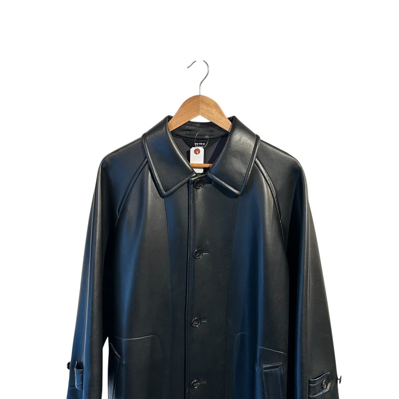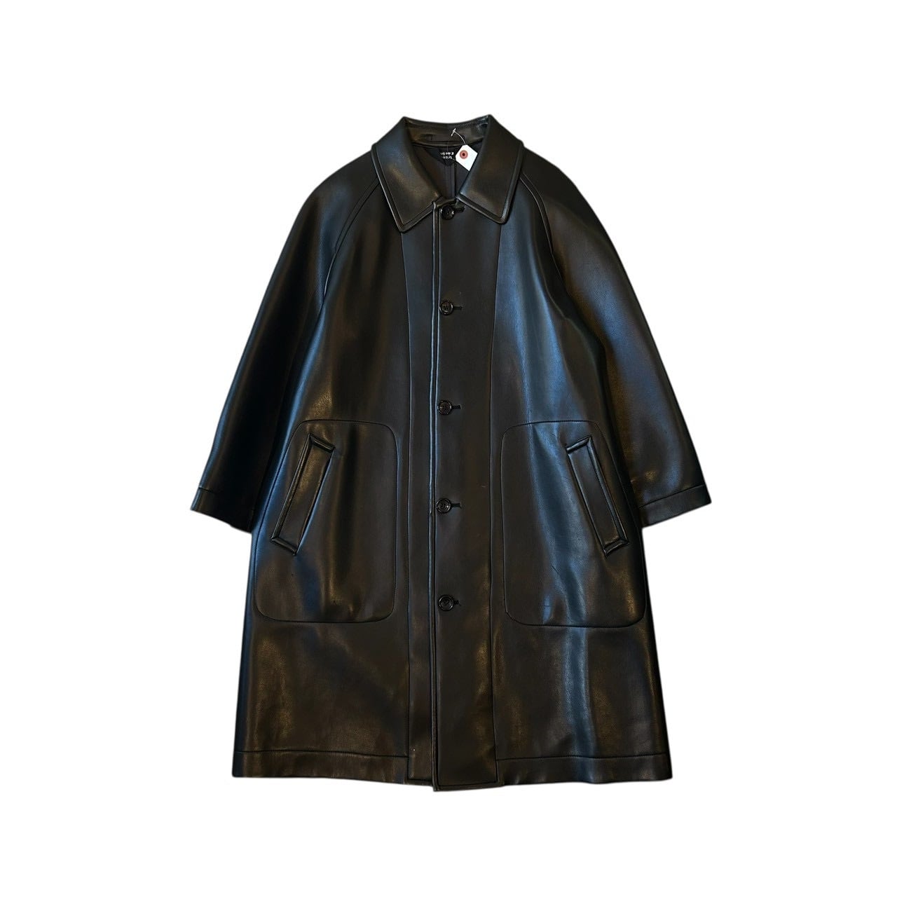 “tricot GARCONS" Black PVC leather design balmacaan coat