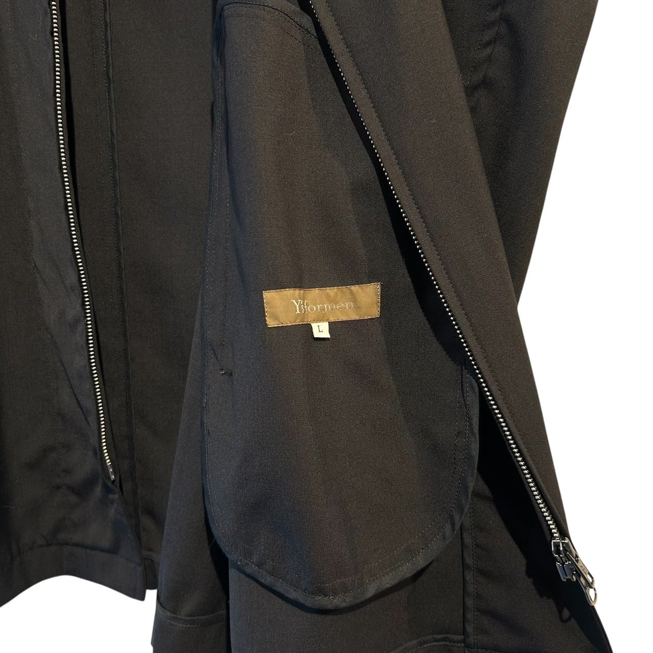 “Y's for men" Black wool design double zip half coat