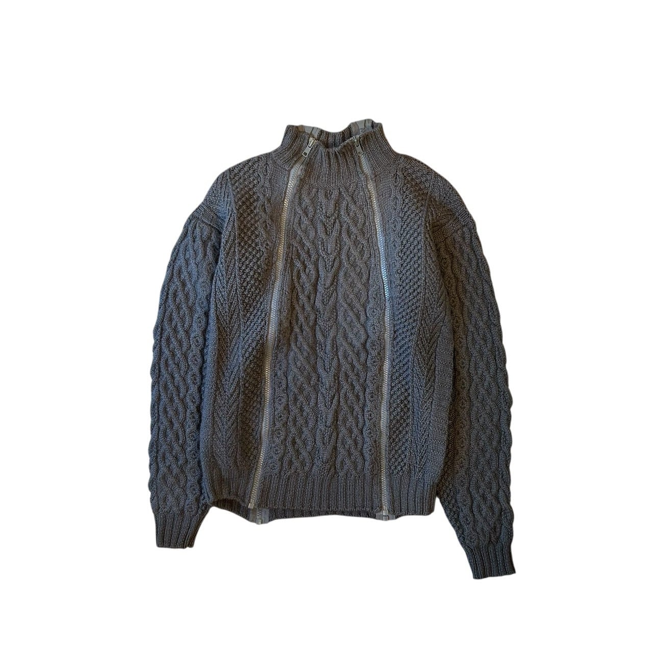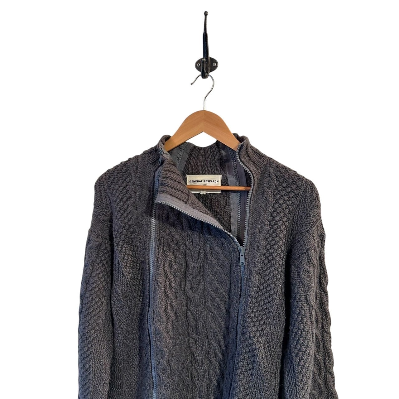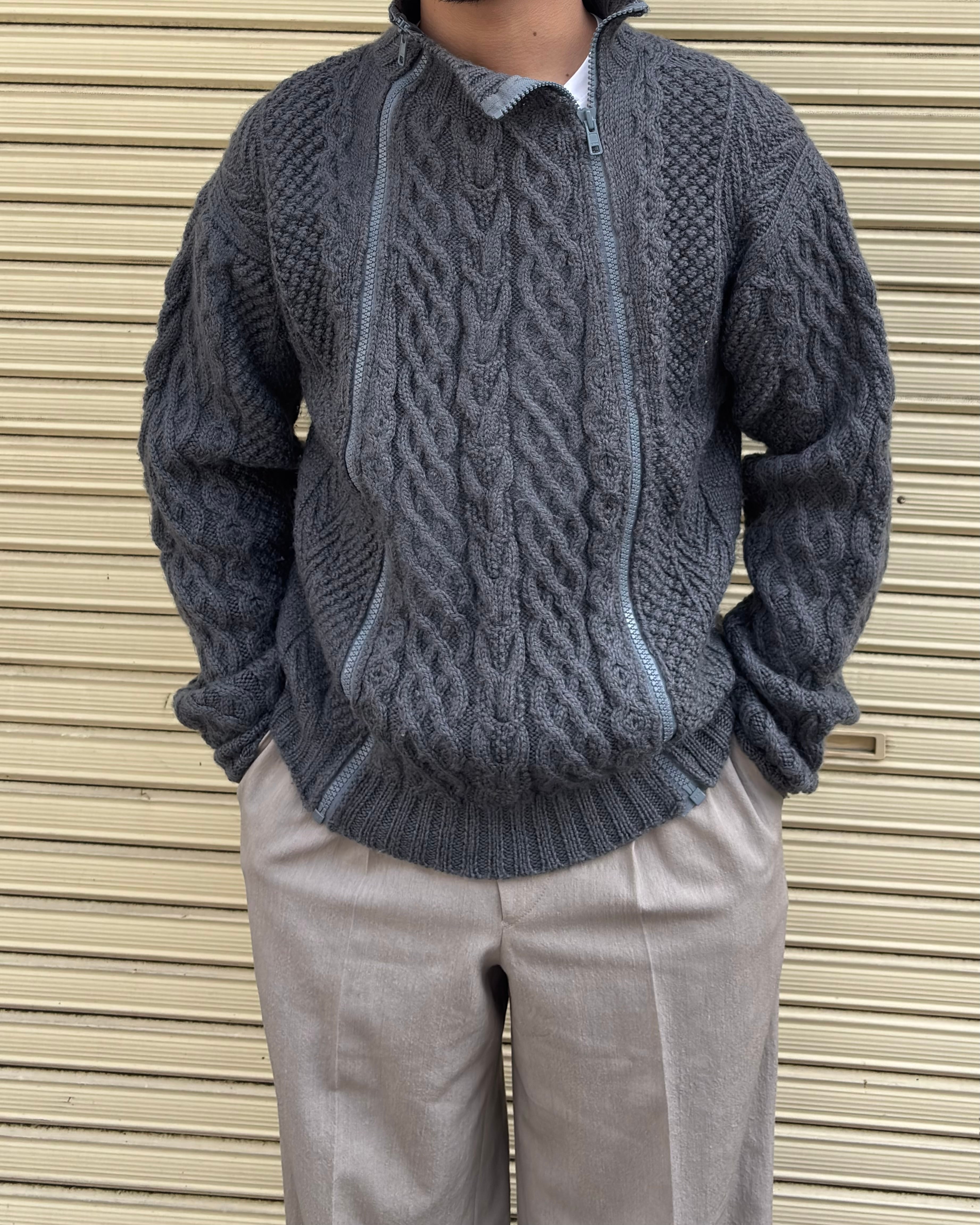 “GENERAL RESEARCH" Grey wool design 4th zip fisherman knit
