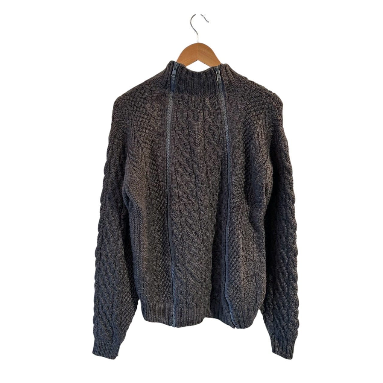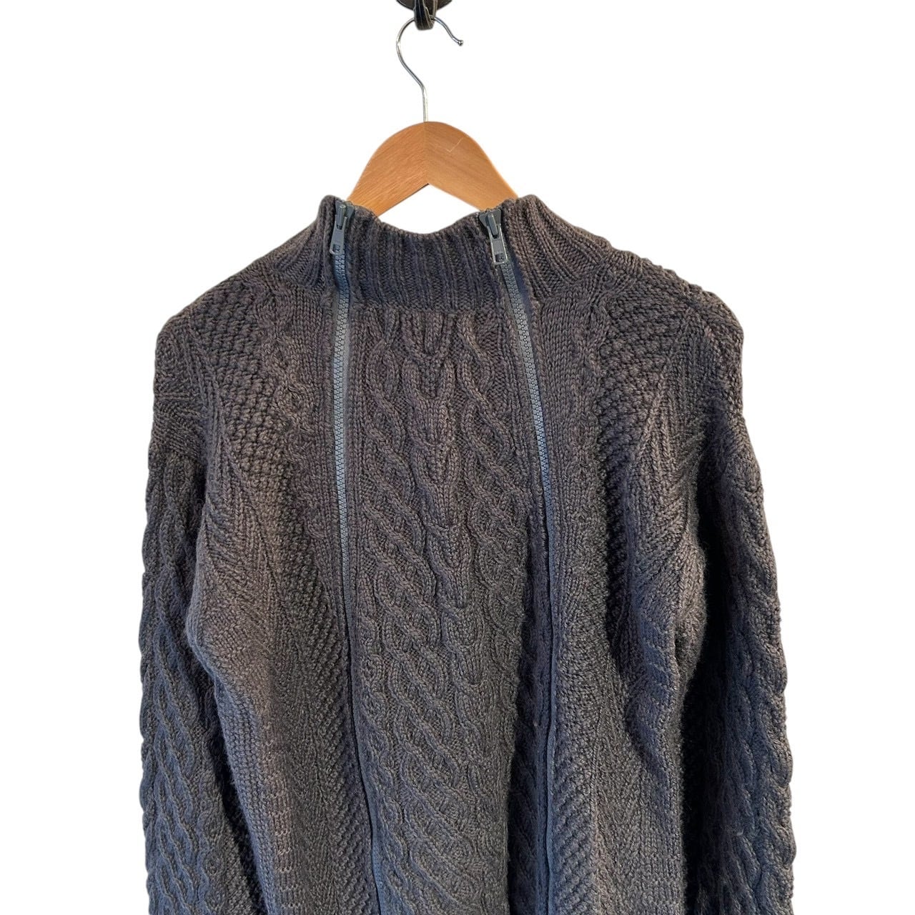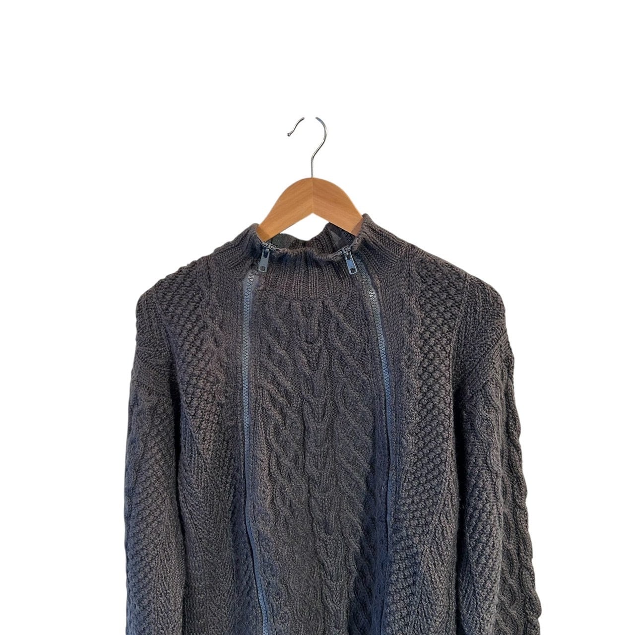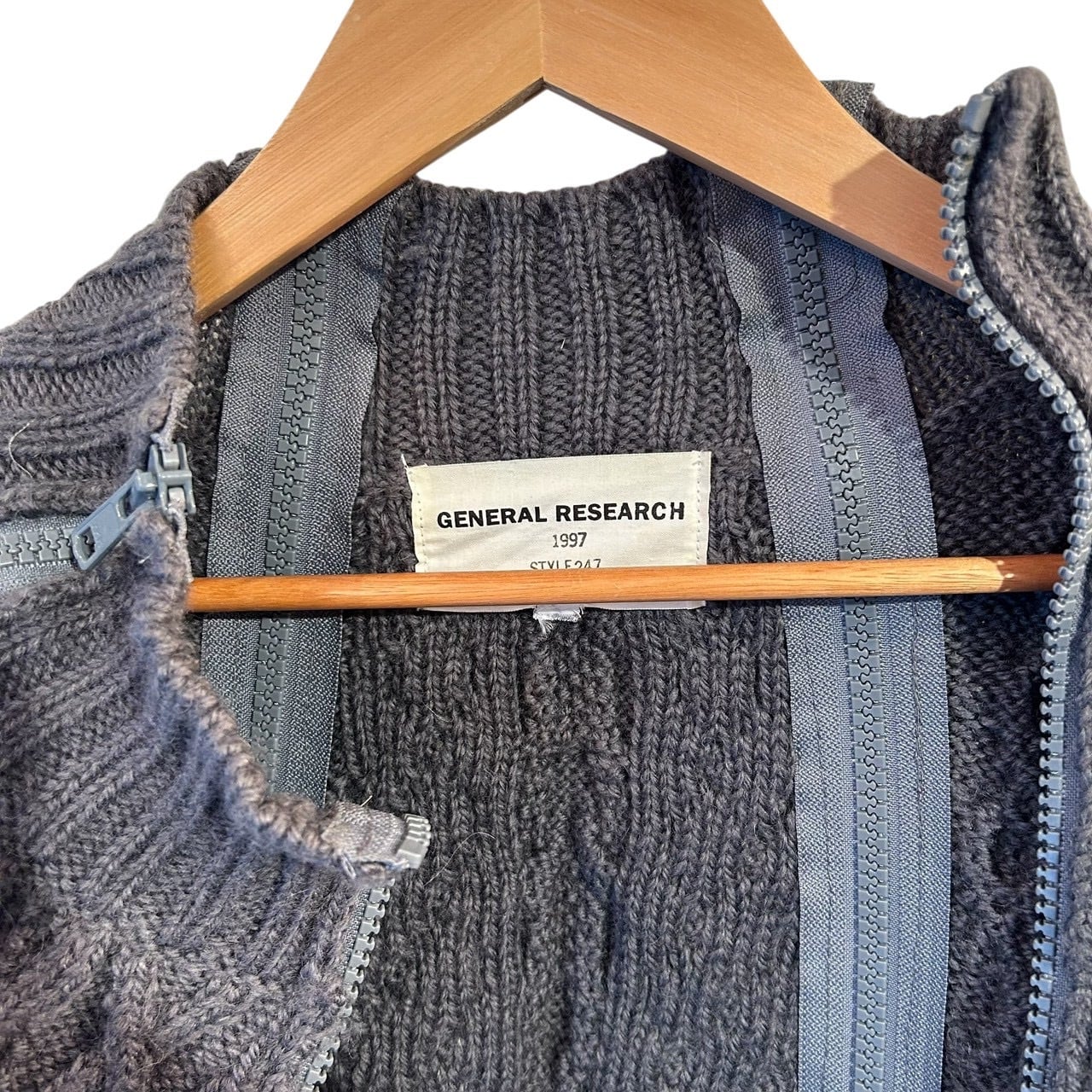“GENERAL RESEARCH" Grey wool design 4th zip fisherman knit