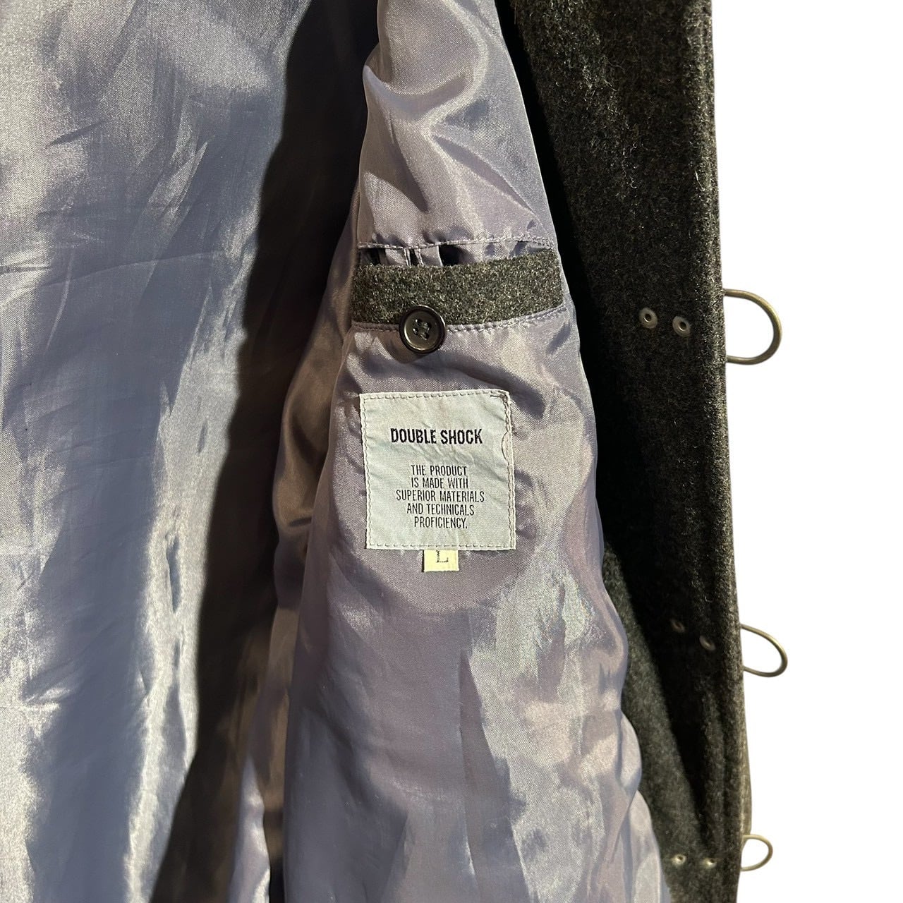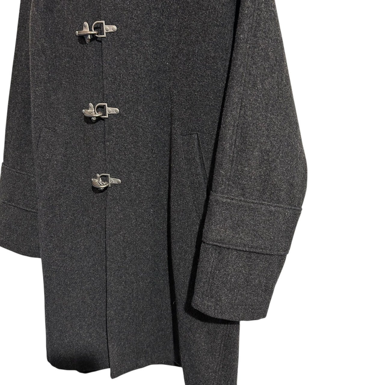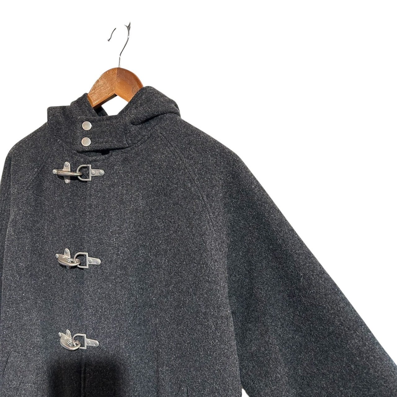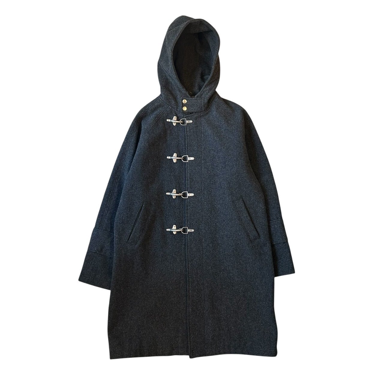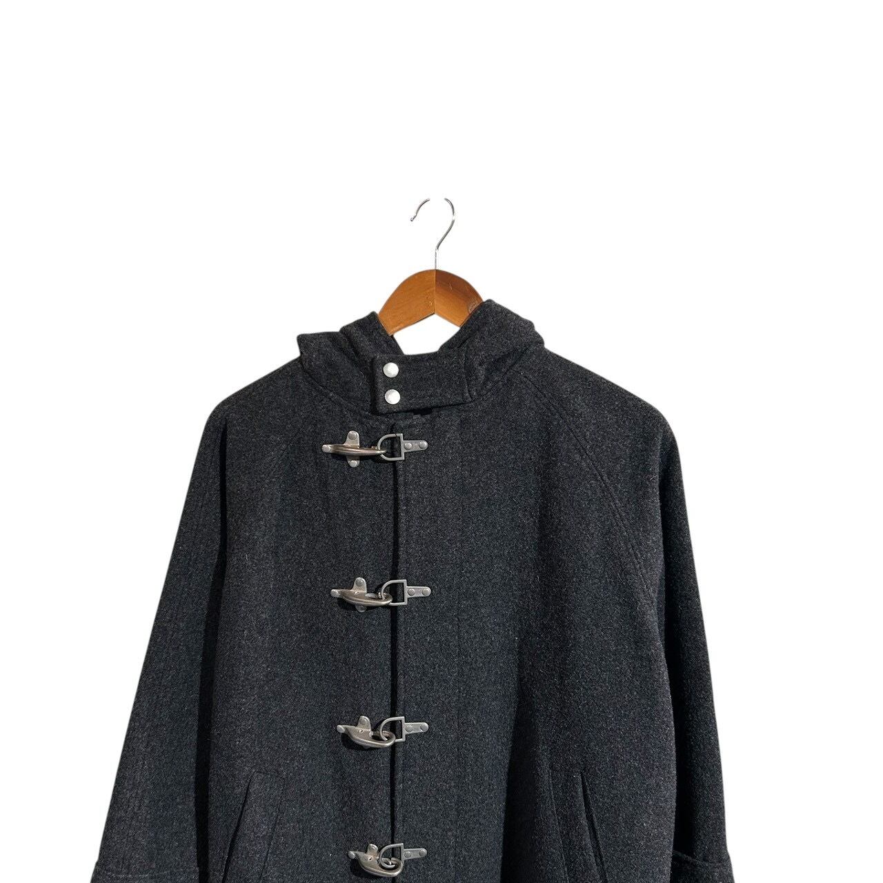 “DOUBLE SHOCK" Grey wool/rayon design fireman hooded coat