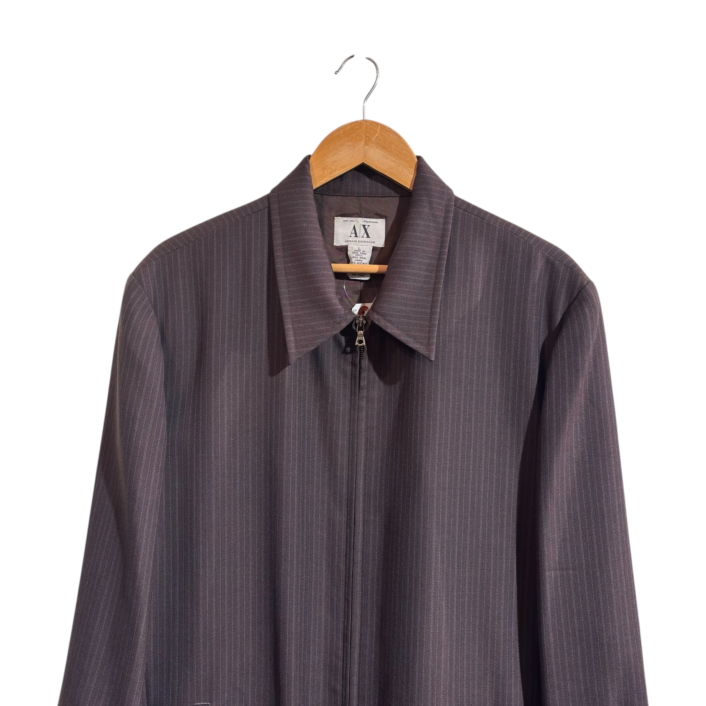 “ARMANI EXCHANGE" Herringbone stripe wool design zip up jacket
