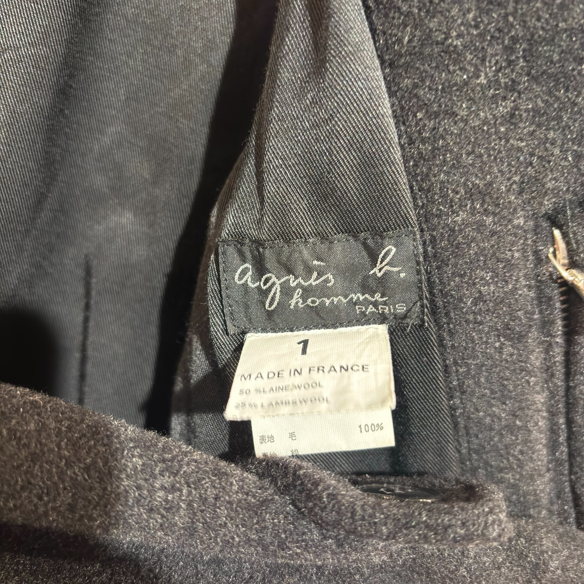 “agnes b. homme" Grey wool/cashmere design zip up half coat