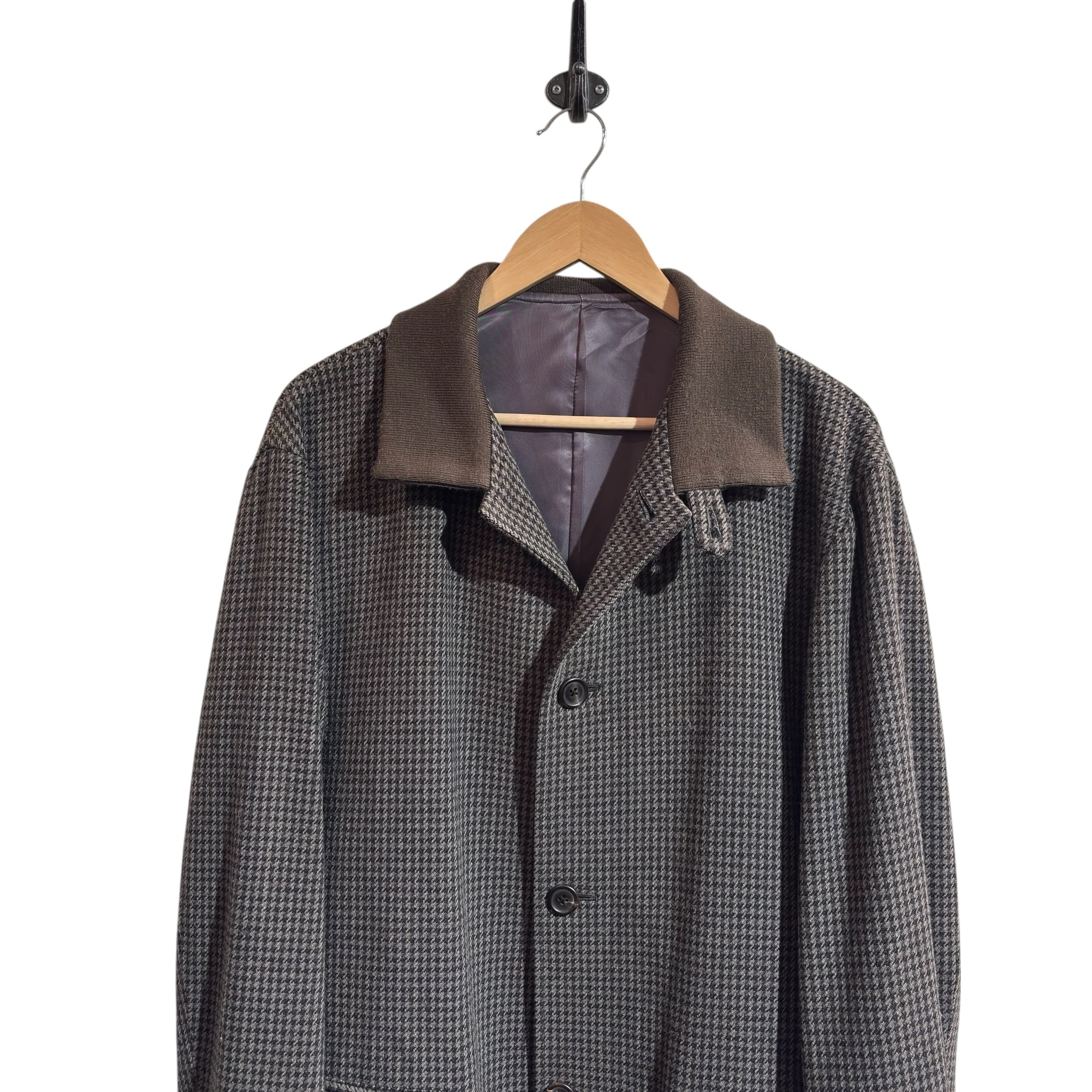 “Y's for men" Houndstooth wool/rayon/nylon design 2way collar jacket