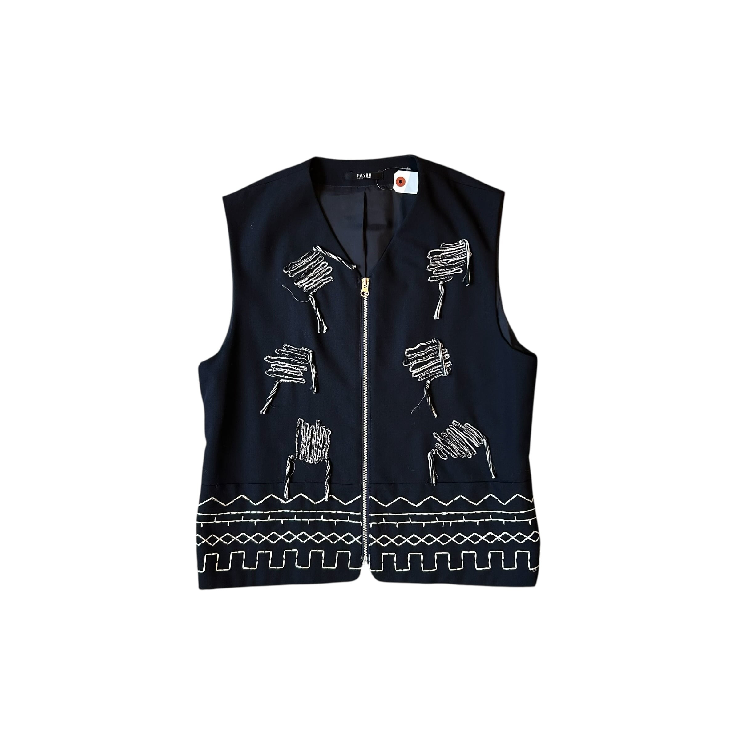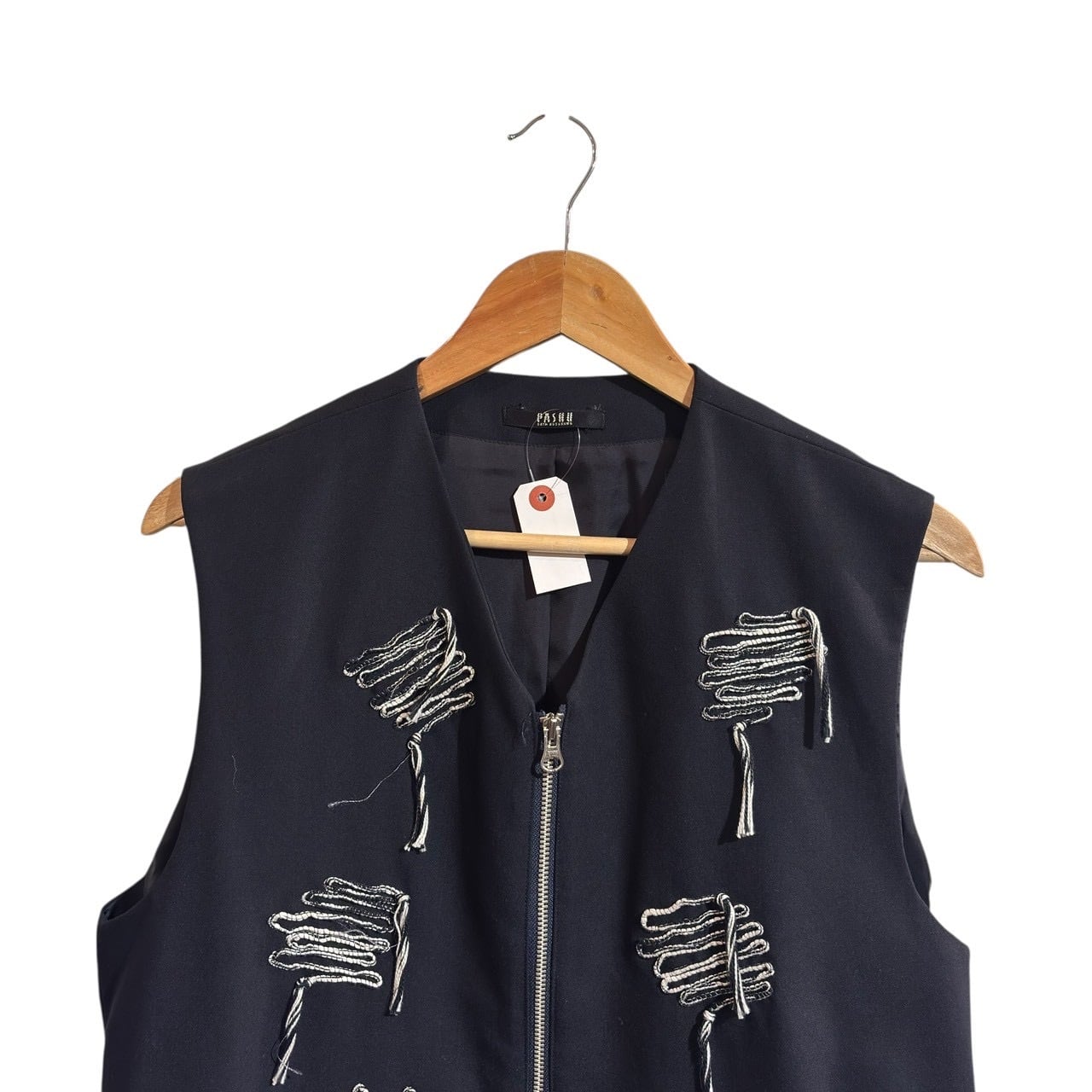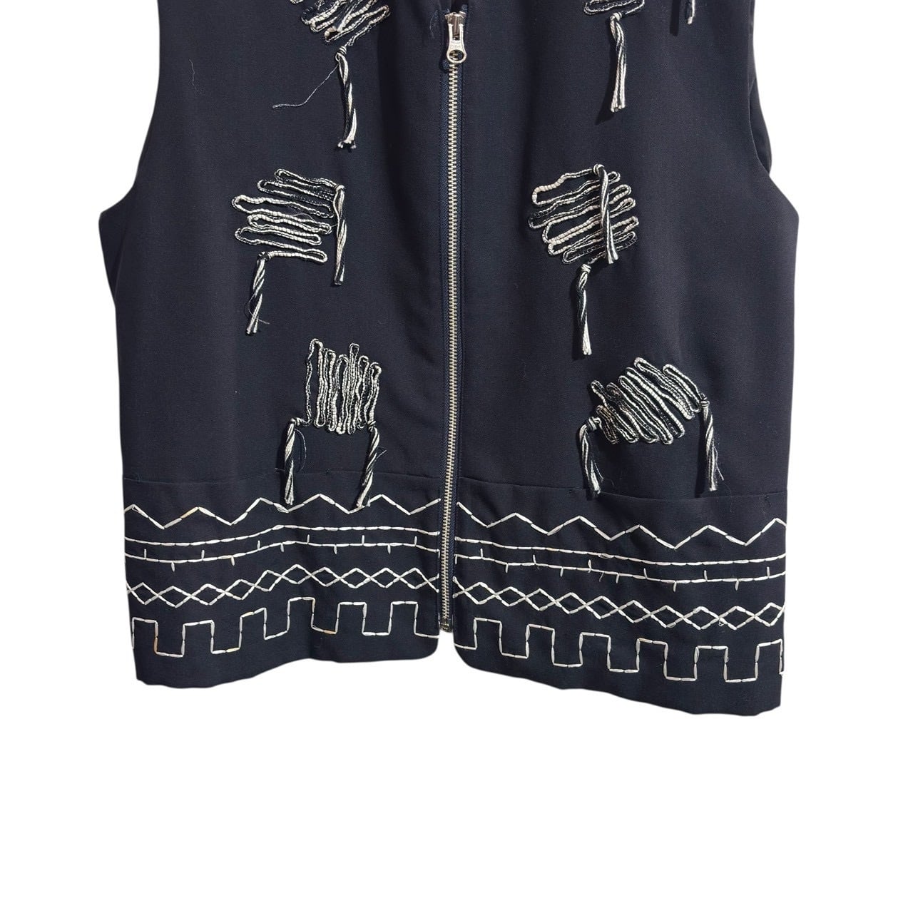 “PASHU" Dark navy wool gabardine design embroidery vest