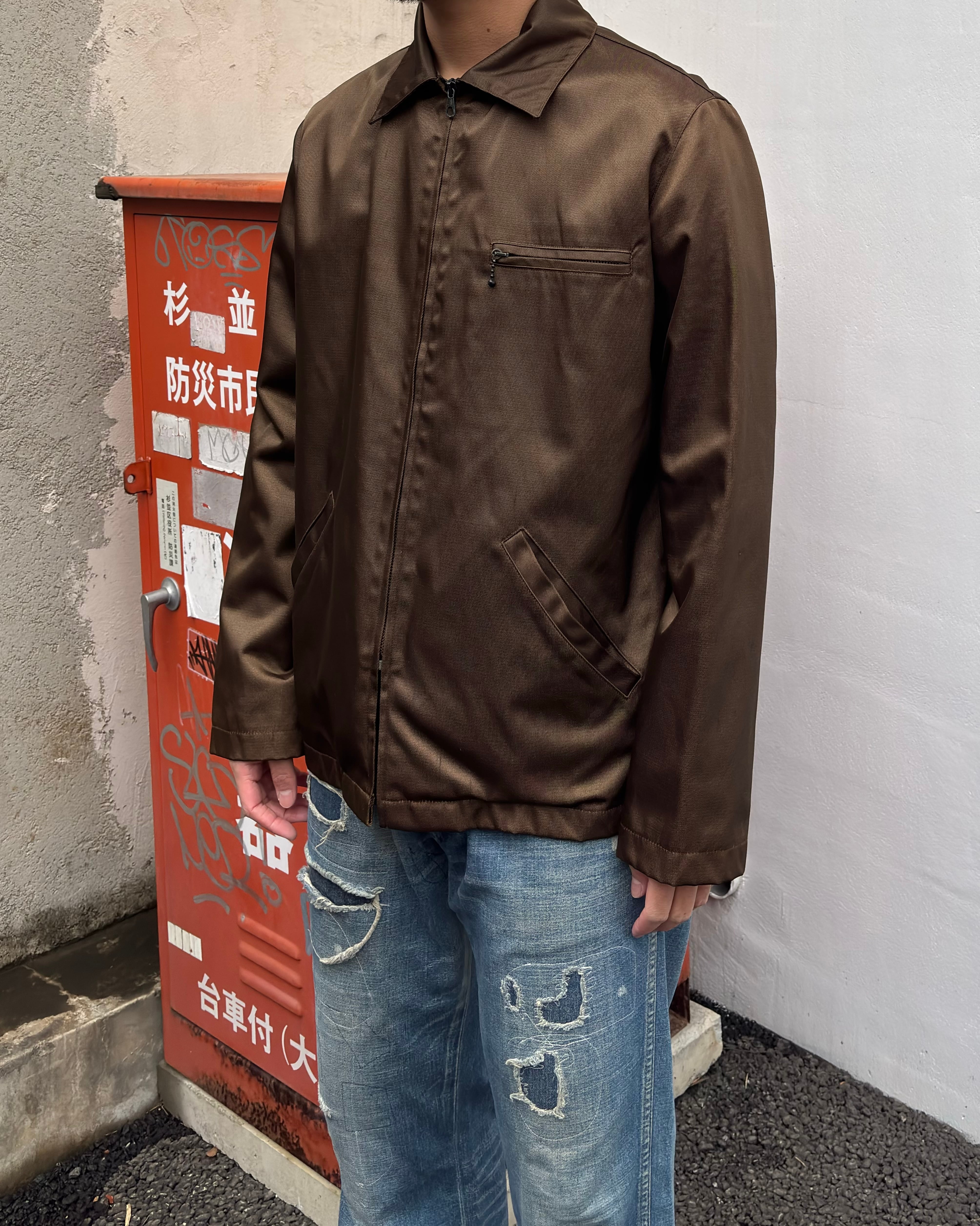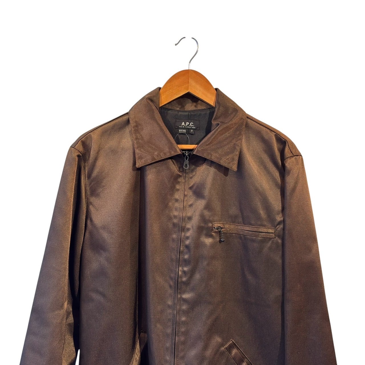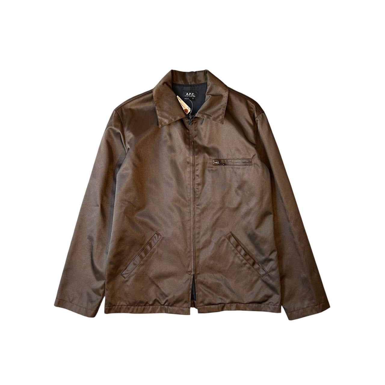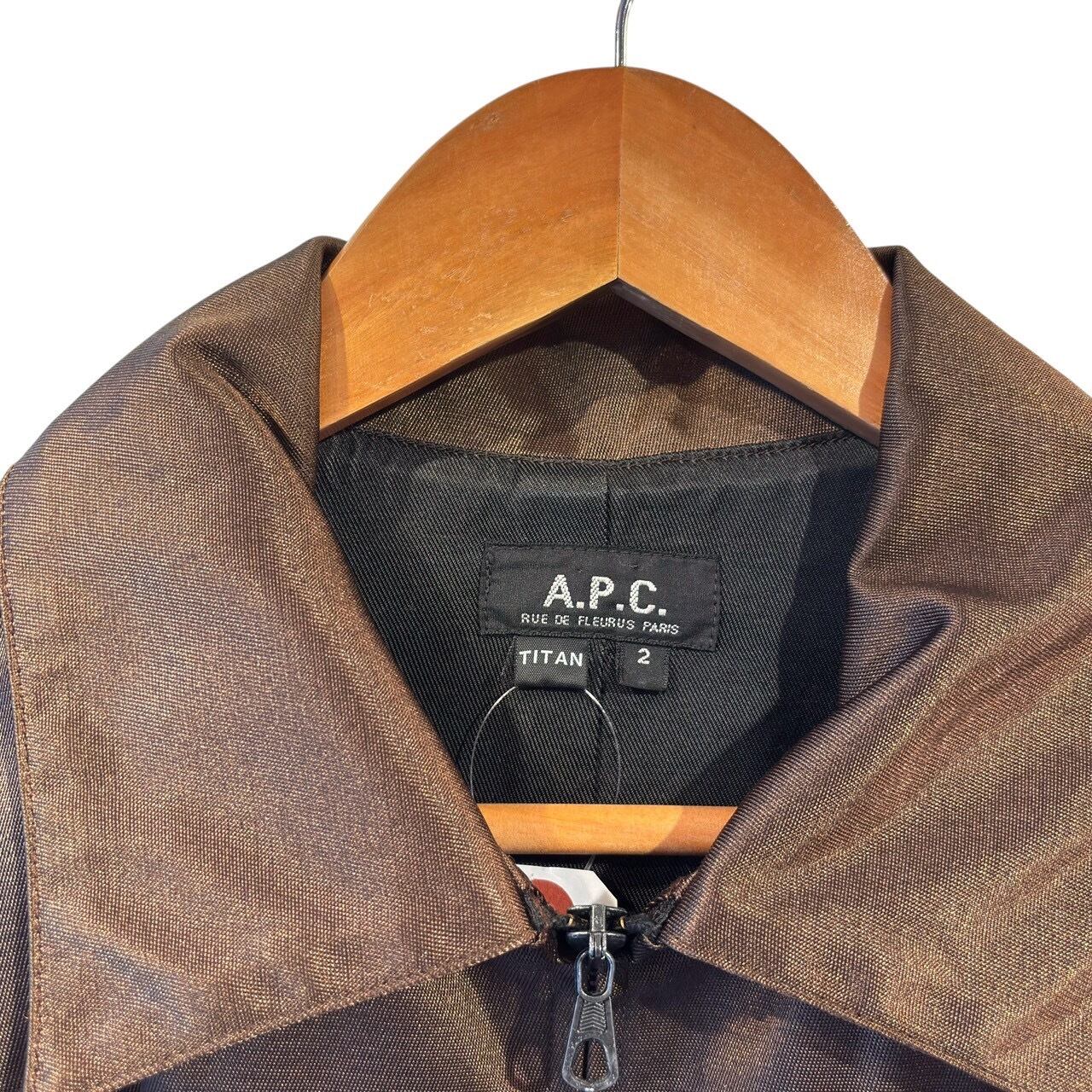 “A.P.C." Shiny brown nylon/rayon design zip up jacket