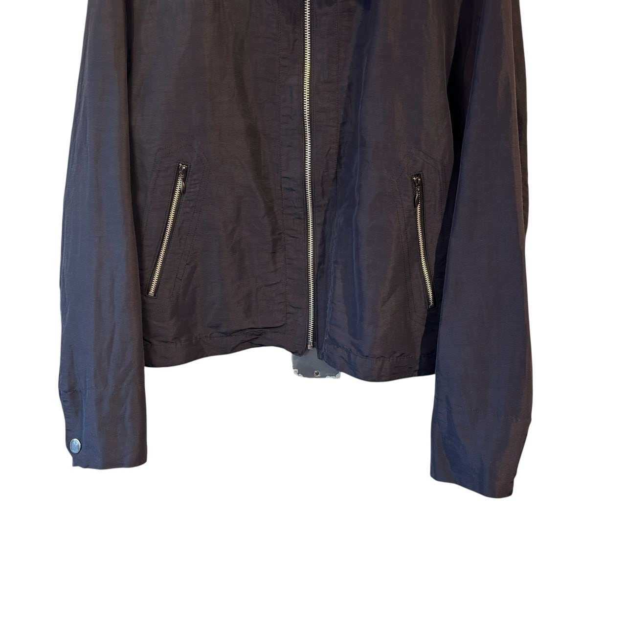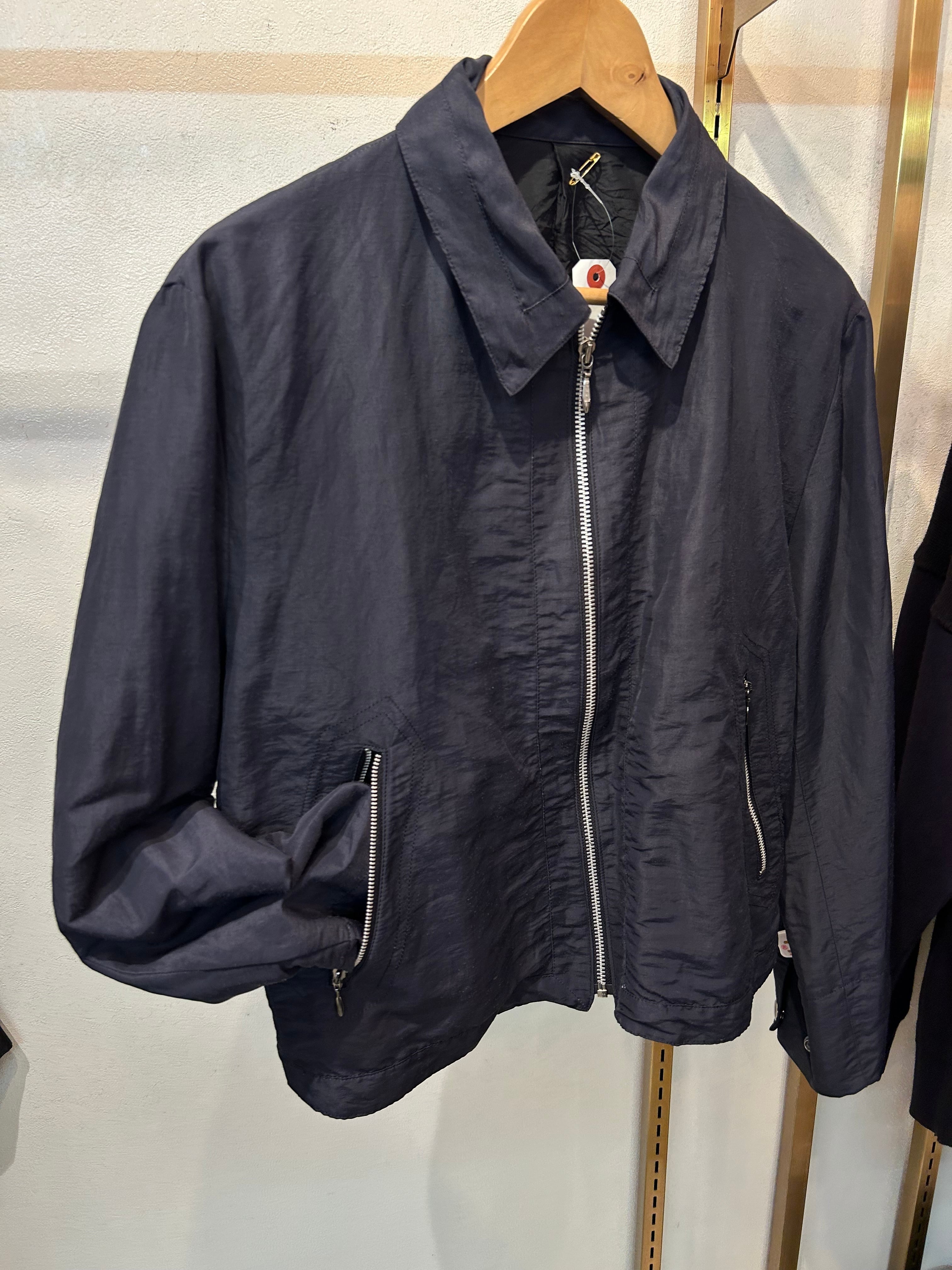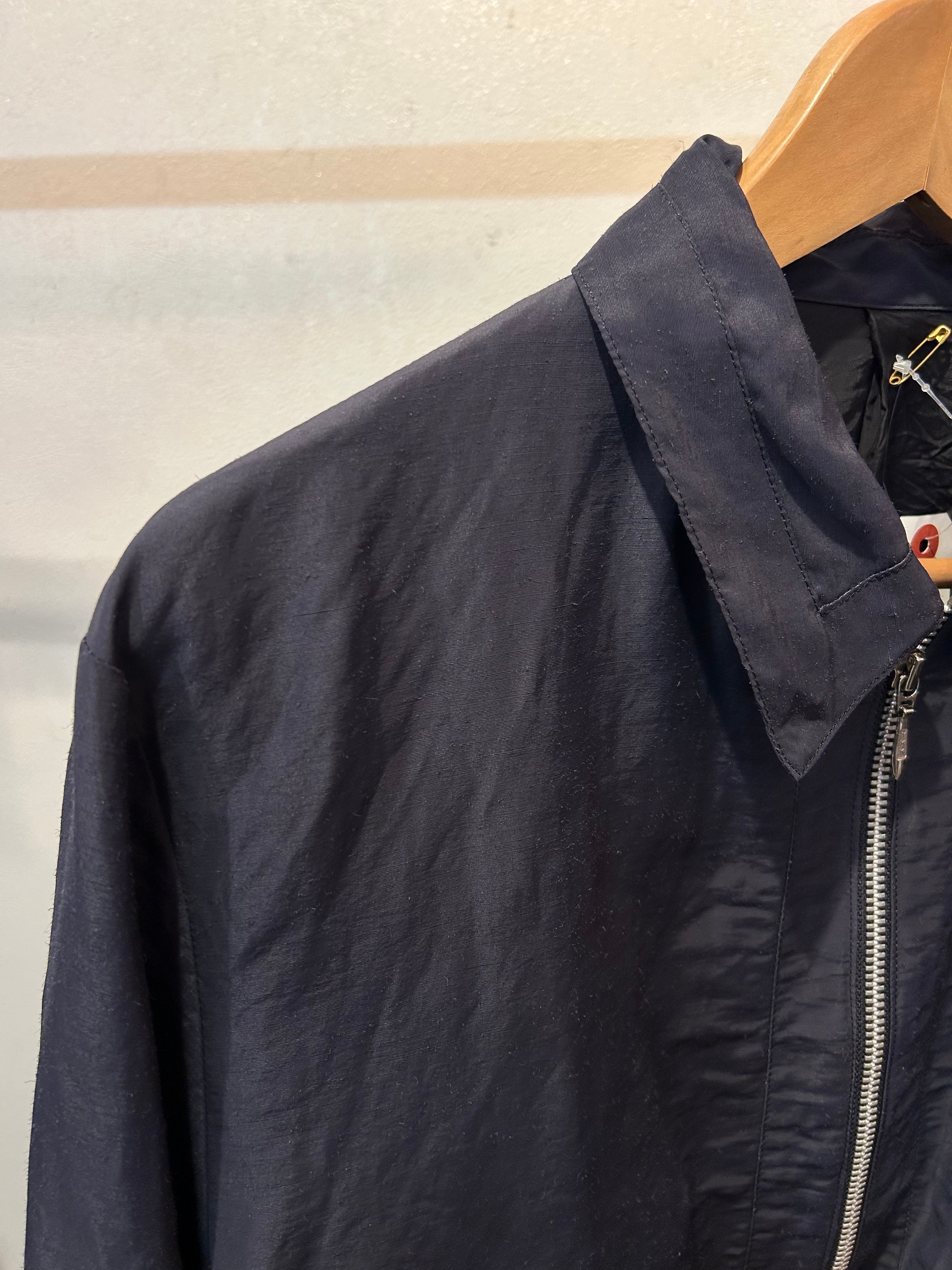 “TETE HOMME" Smoke grey nylon/linen design zip up short jacket