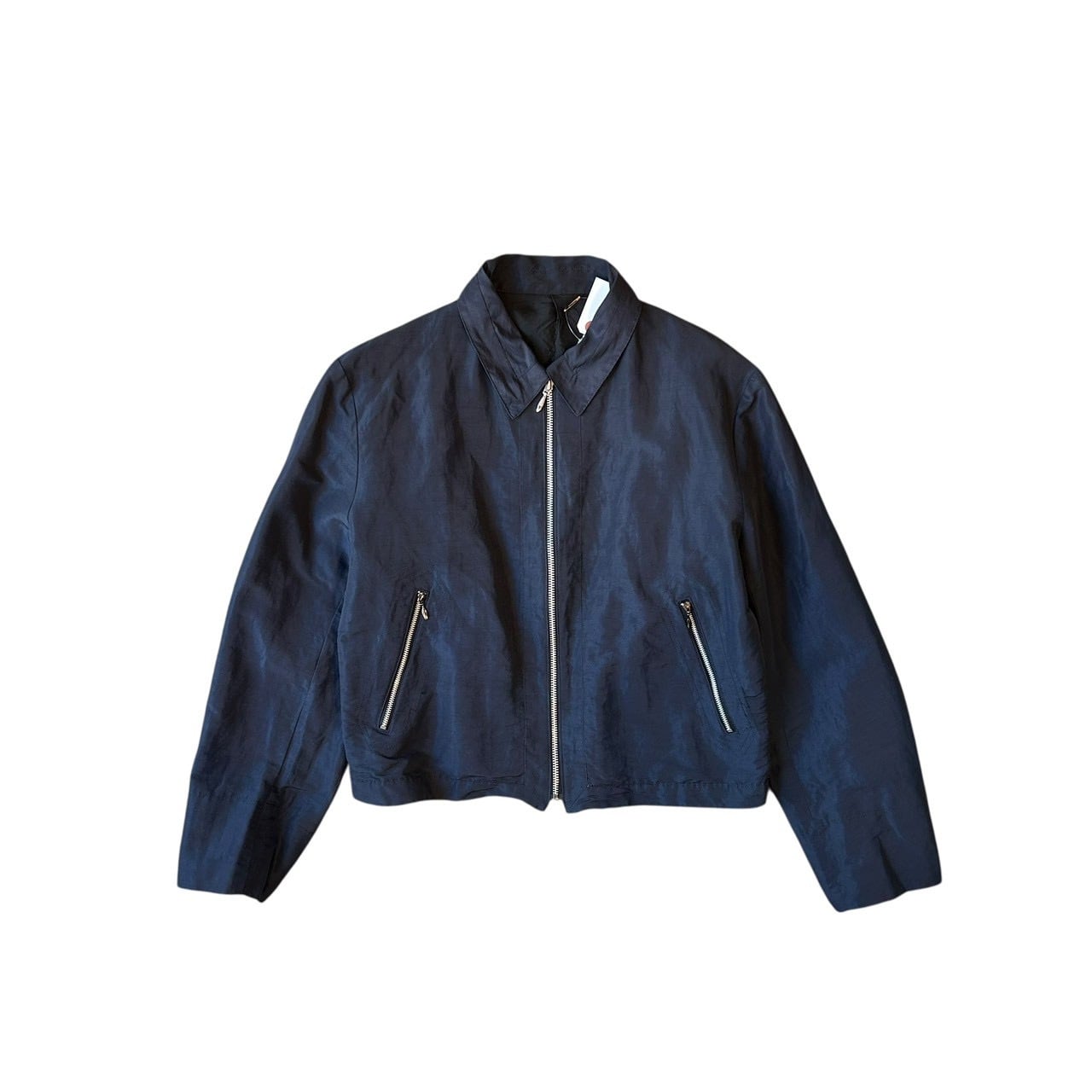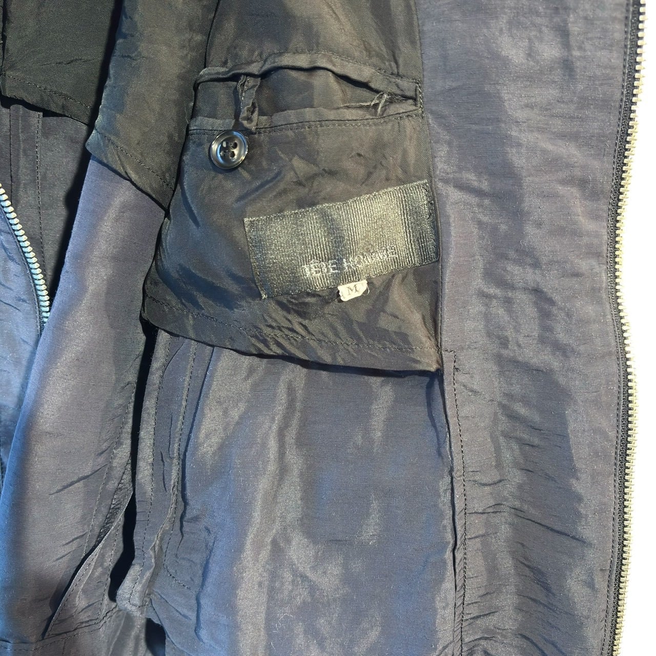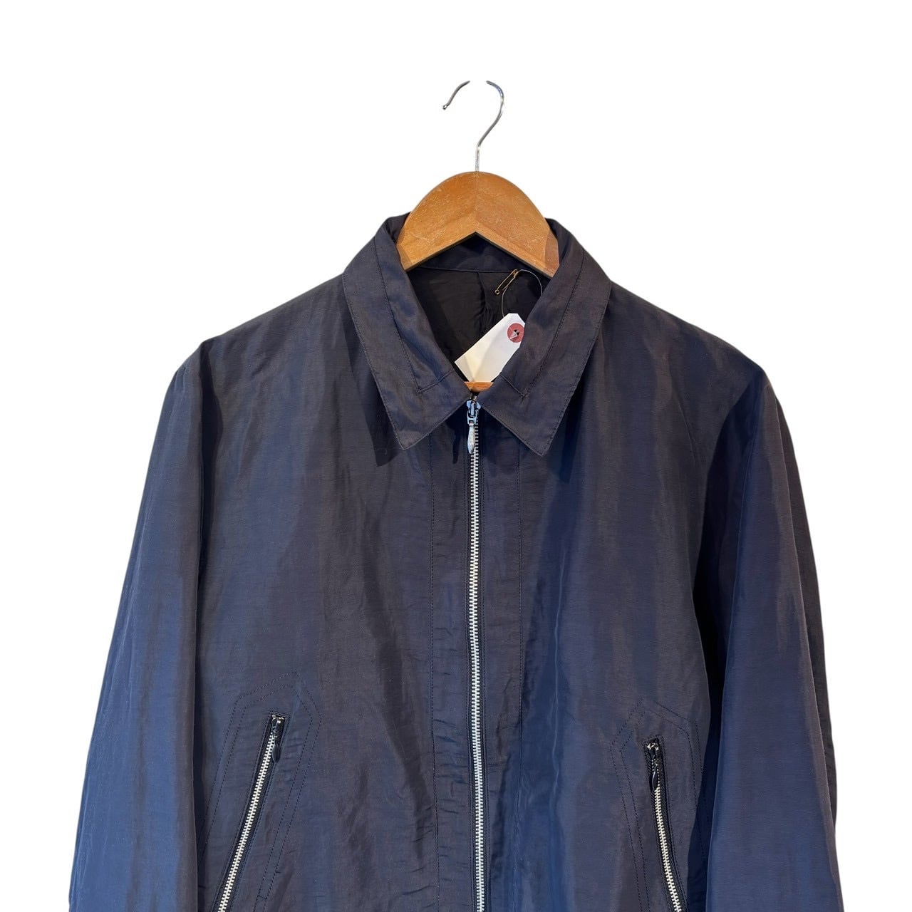 “TETE HOMME" Smoke grey nylon/linen design zip up short jacket