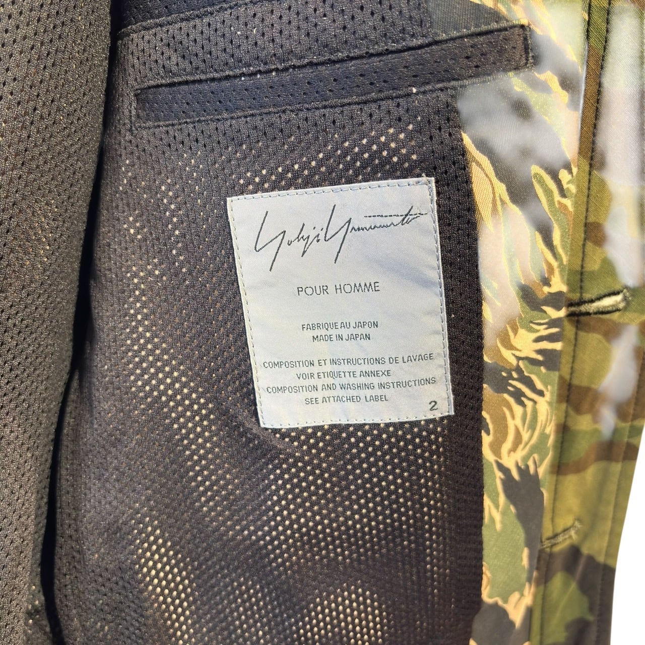 “Yohji Yamamoto POUR HOMME" Patchwork cotton mesh lining design 3B camoflage tailored