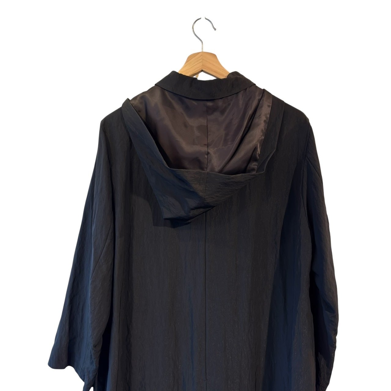 “pour deux" Black nylon/rayon design 2way hooded coat