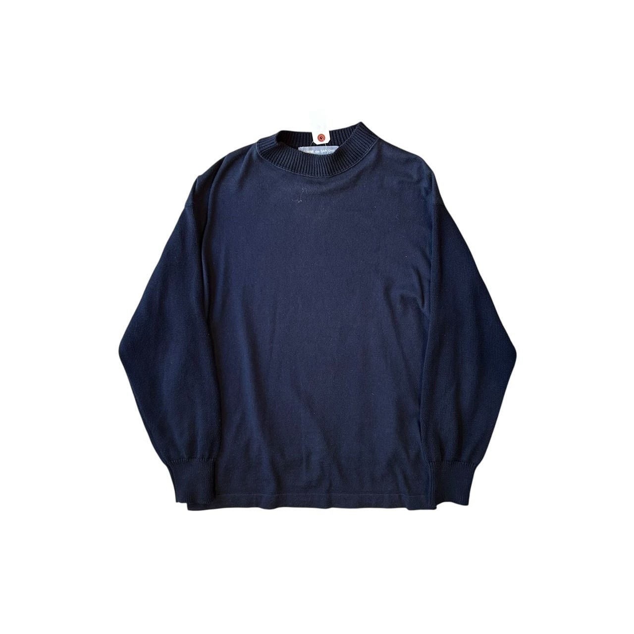 “GARCONS HOMME" Navy cotton switch design mock neck sweater