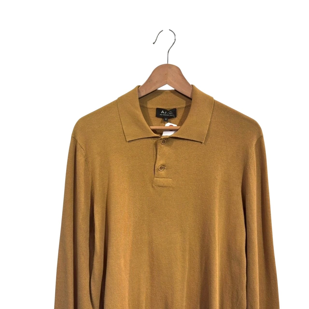 “A.P.C.” Mustard cotton/cashmere design knit polo