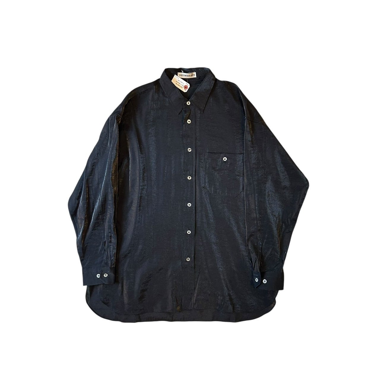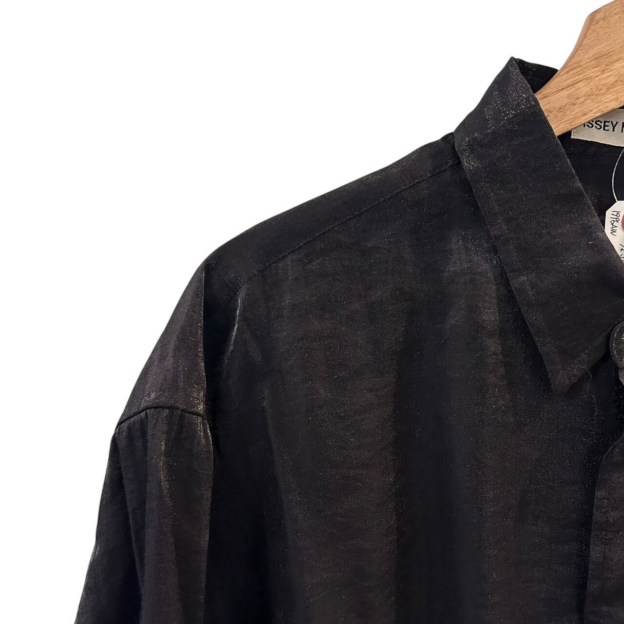 “ISSEY MIYAKE MEN” Black rayon/nylon design L/S shirt