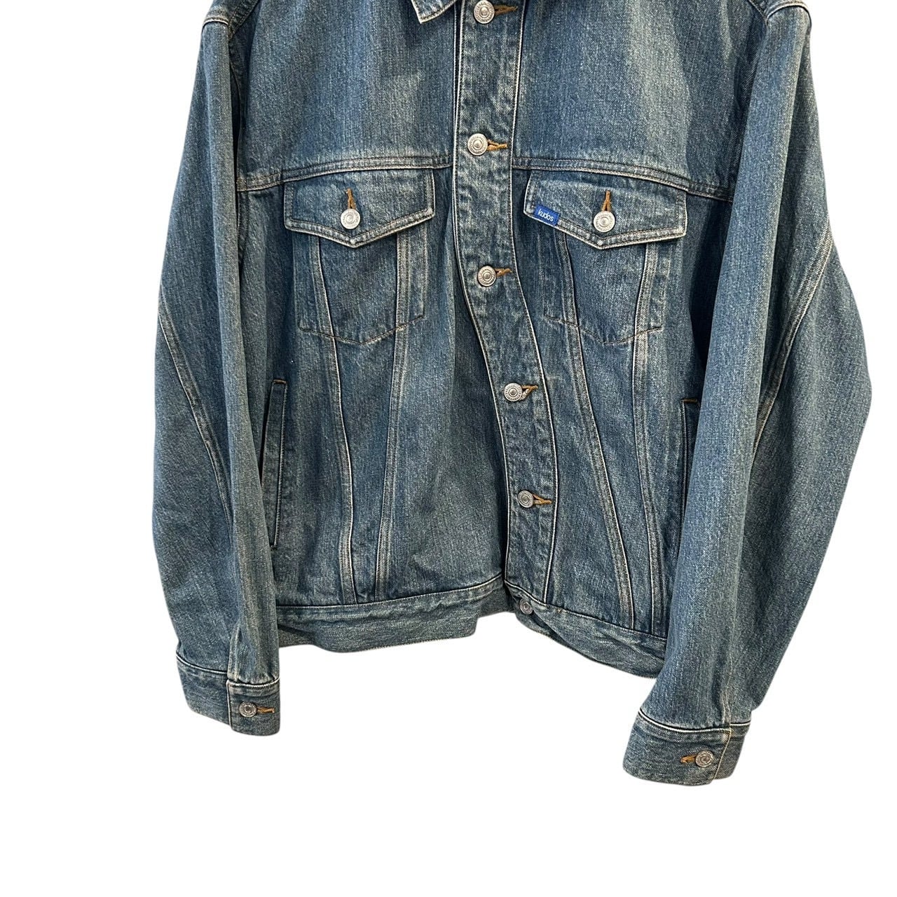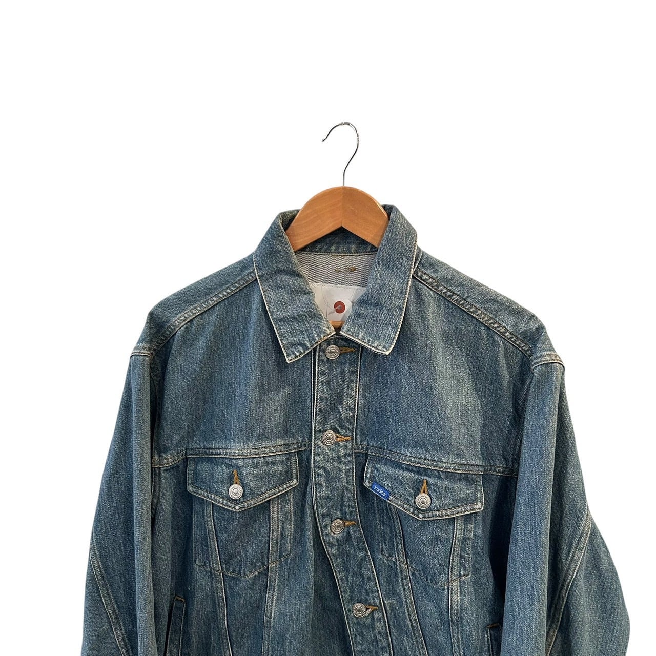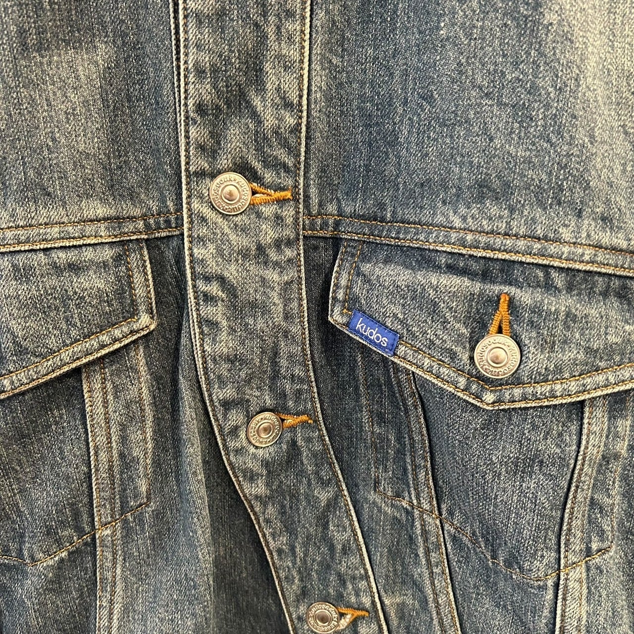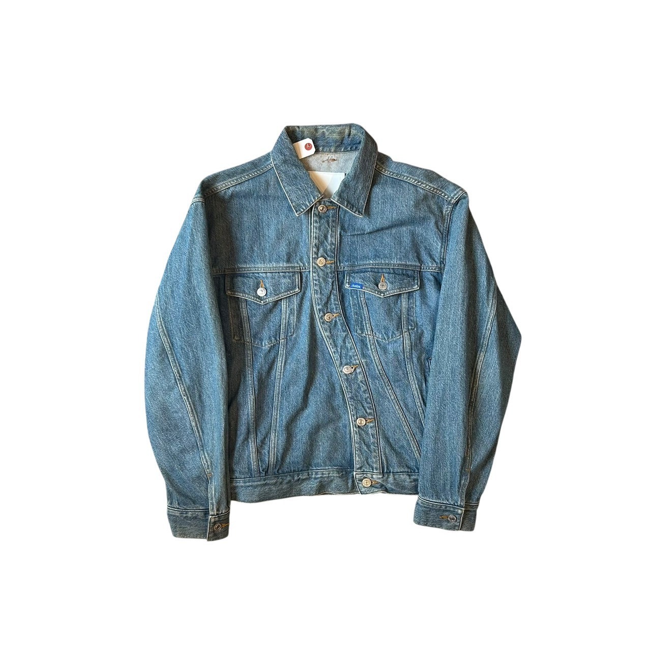 "kudos" Indigo wash cotton design twist front trucker jacket