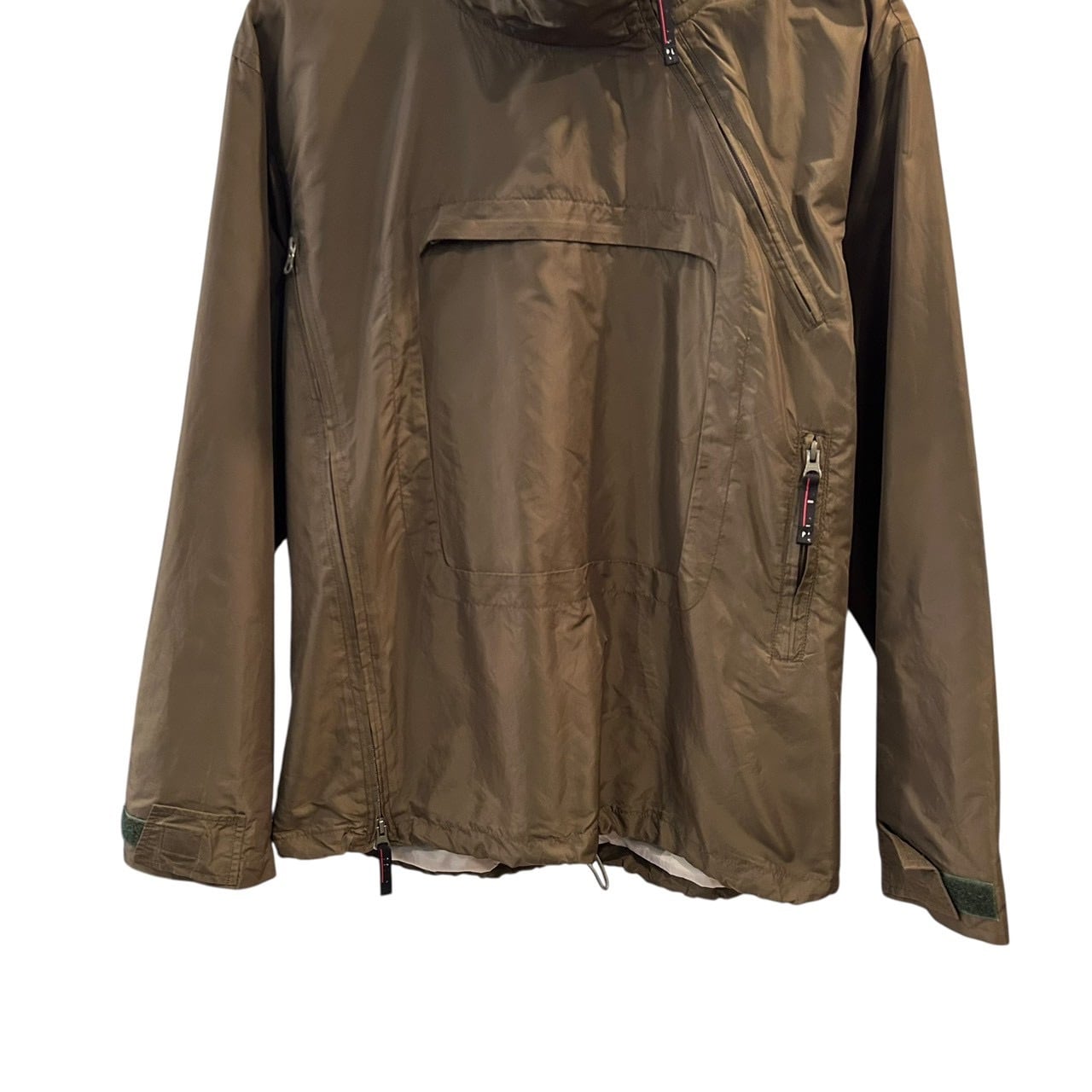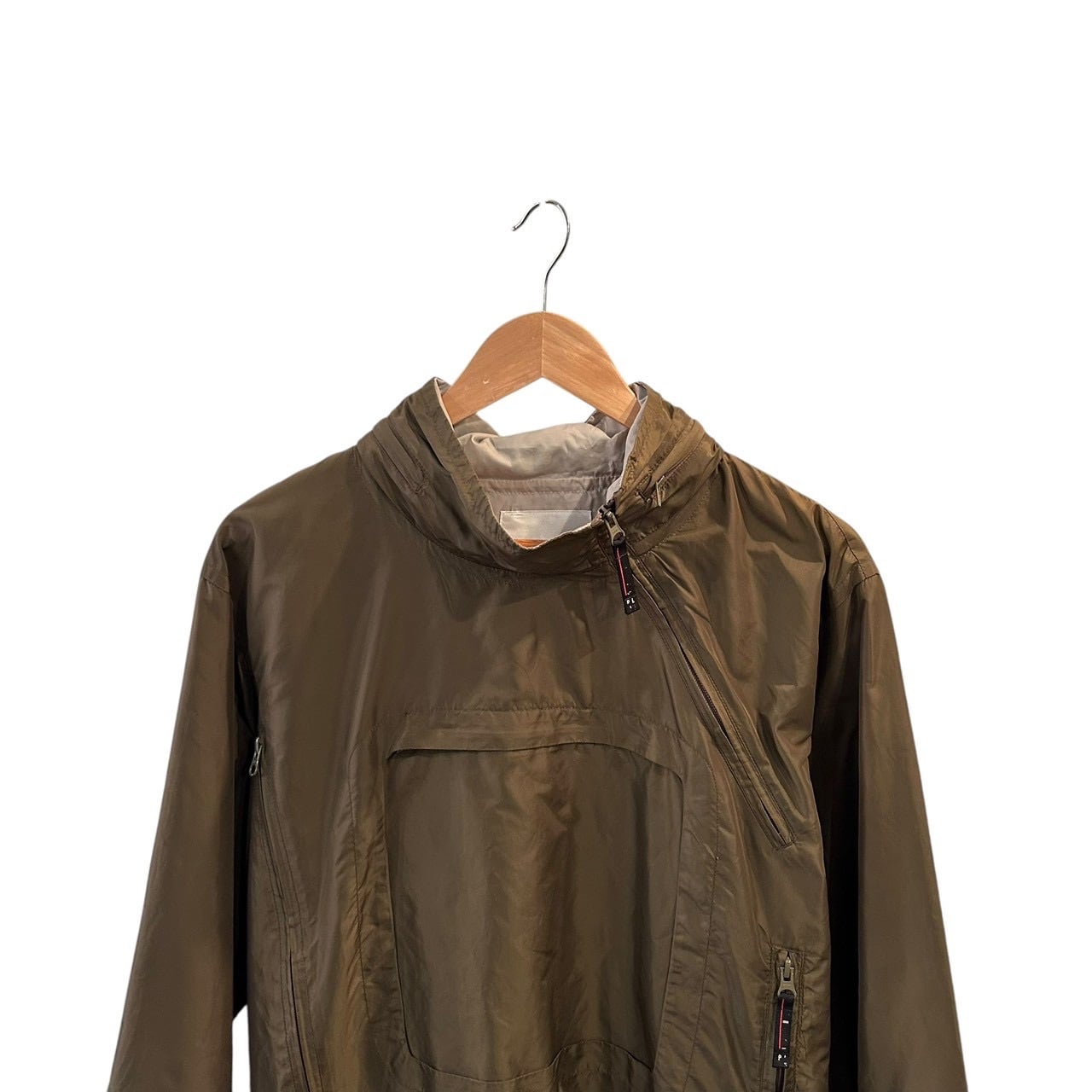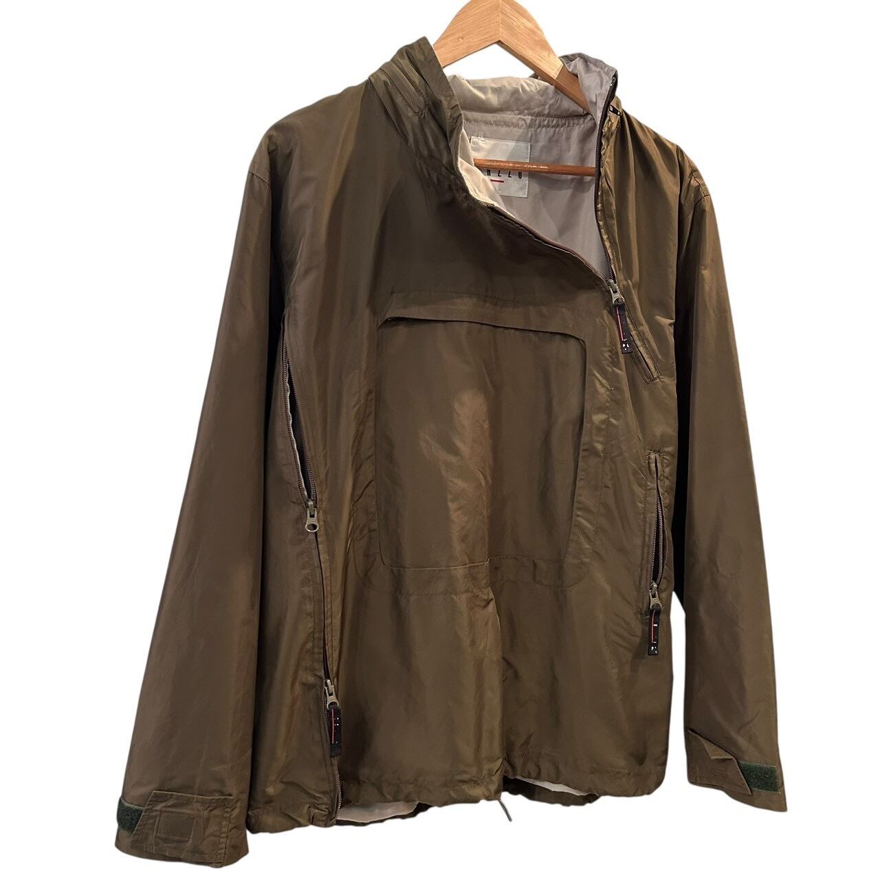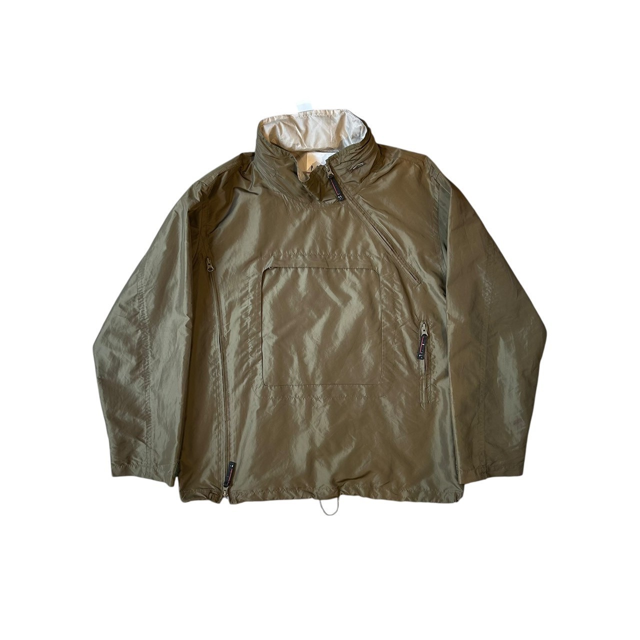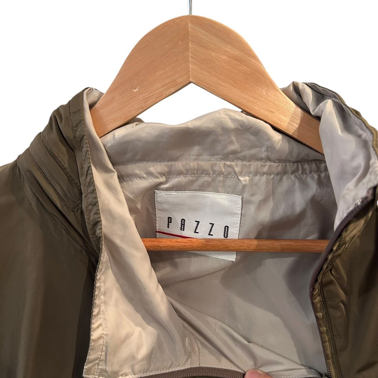 "PAZZO" Khaki nylon design unique zip pullover jacket