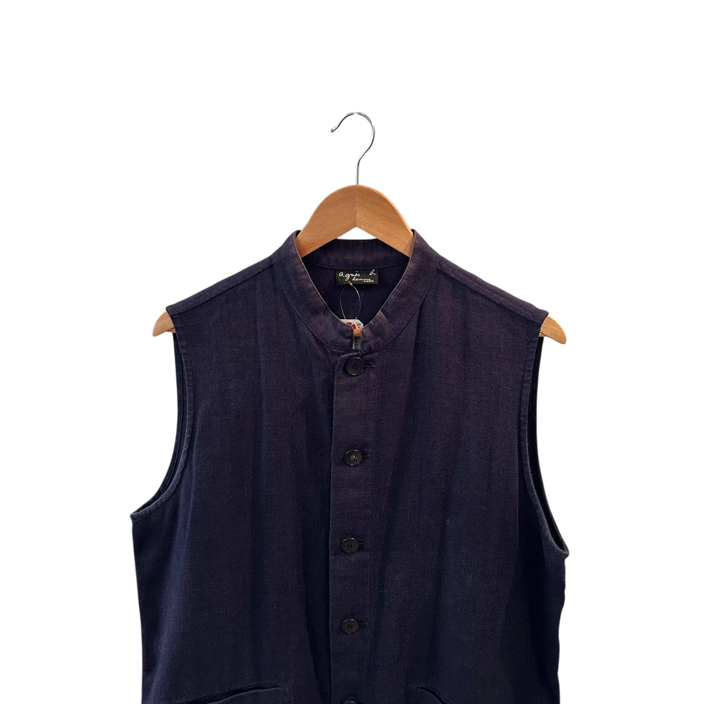 “agnes b. homme” Navy linen design vest